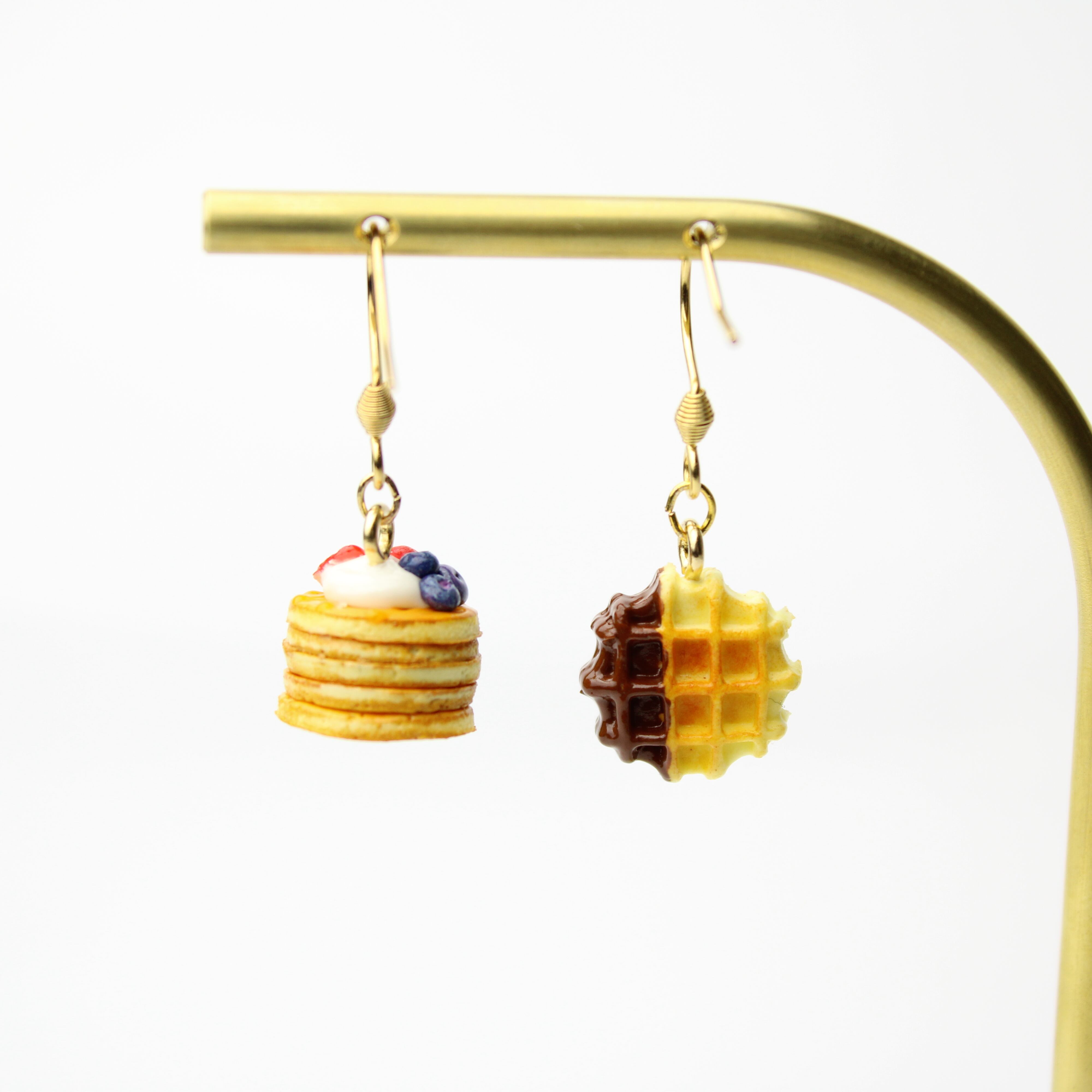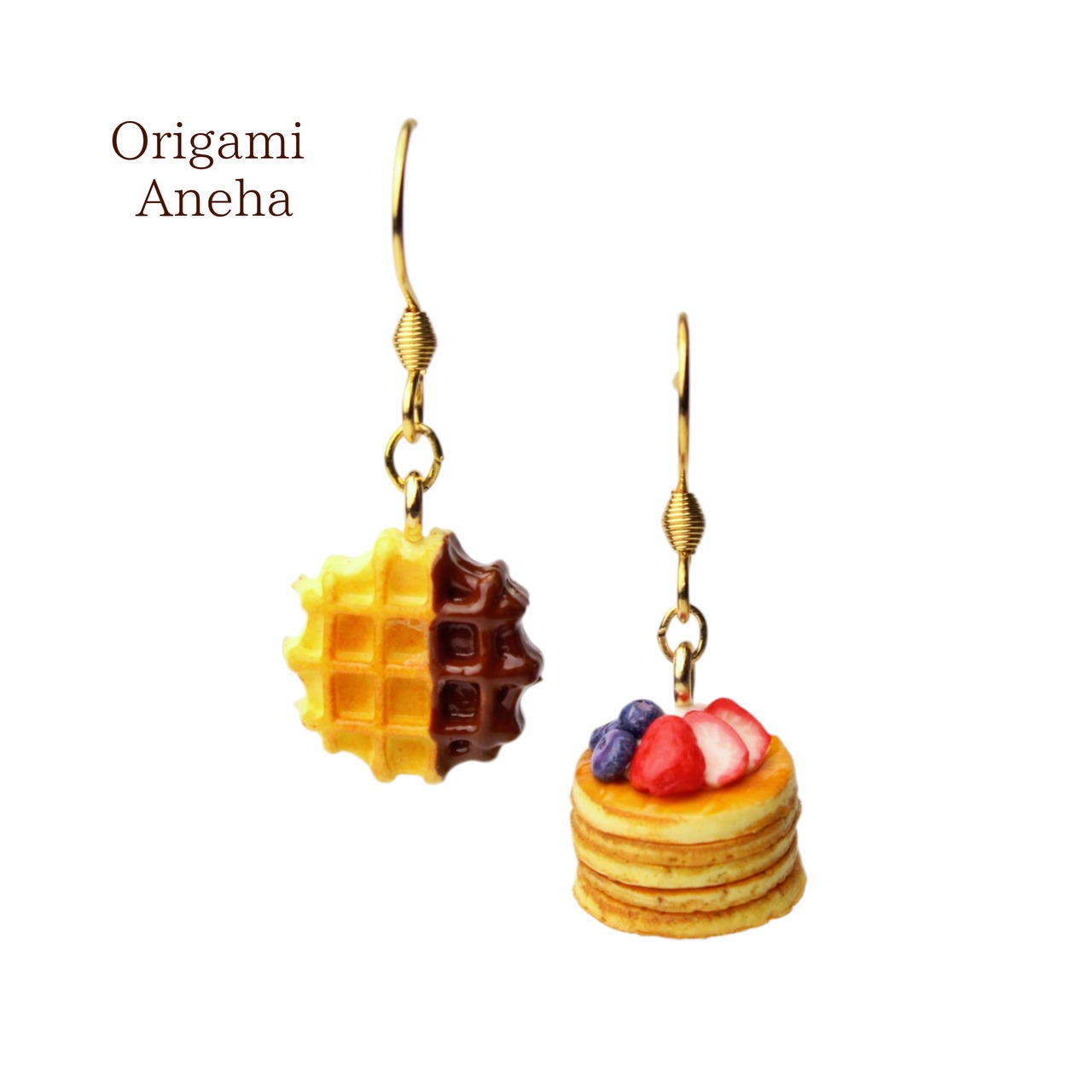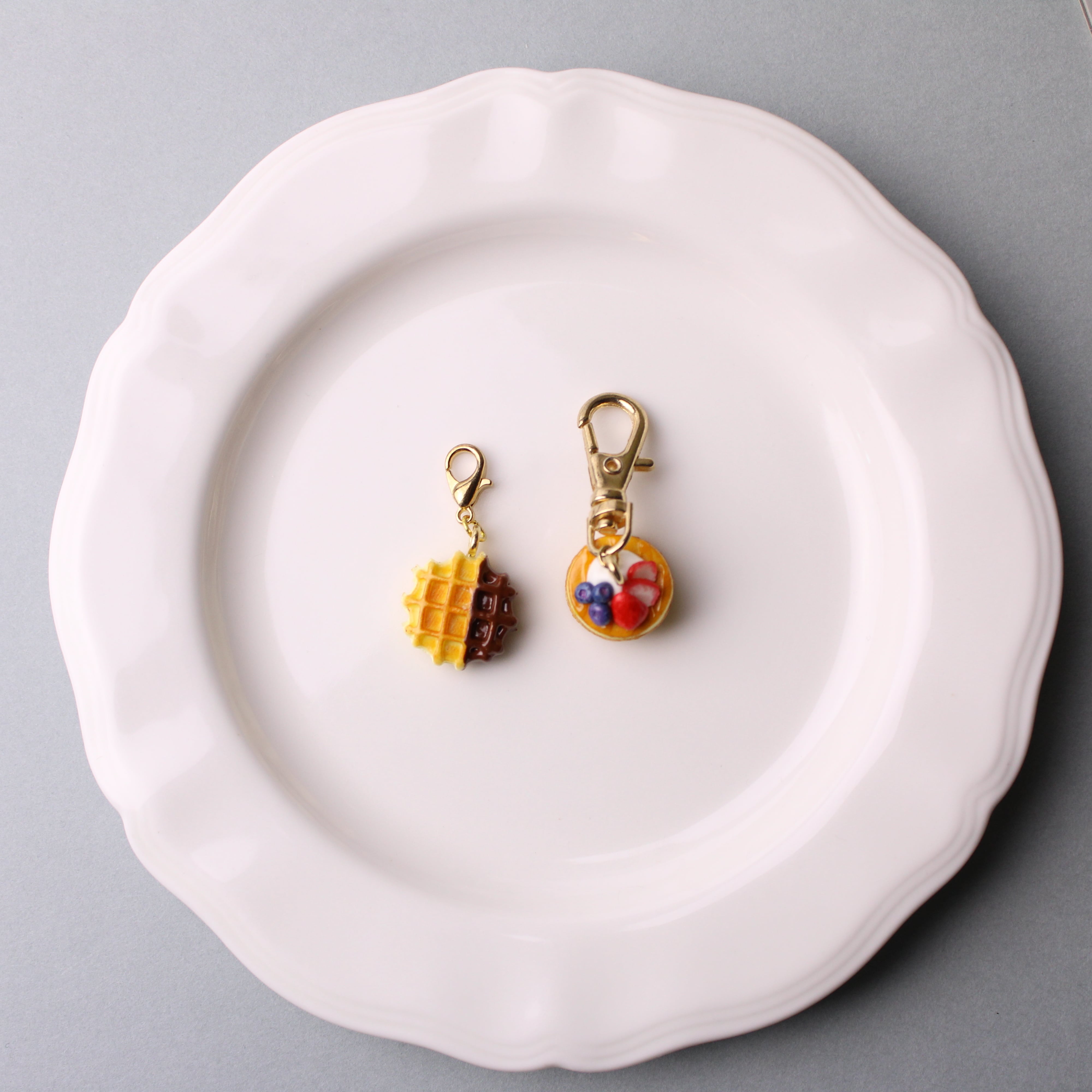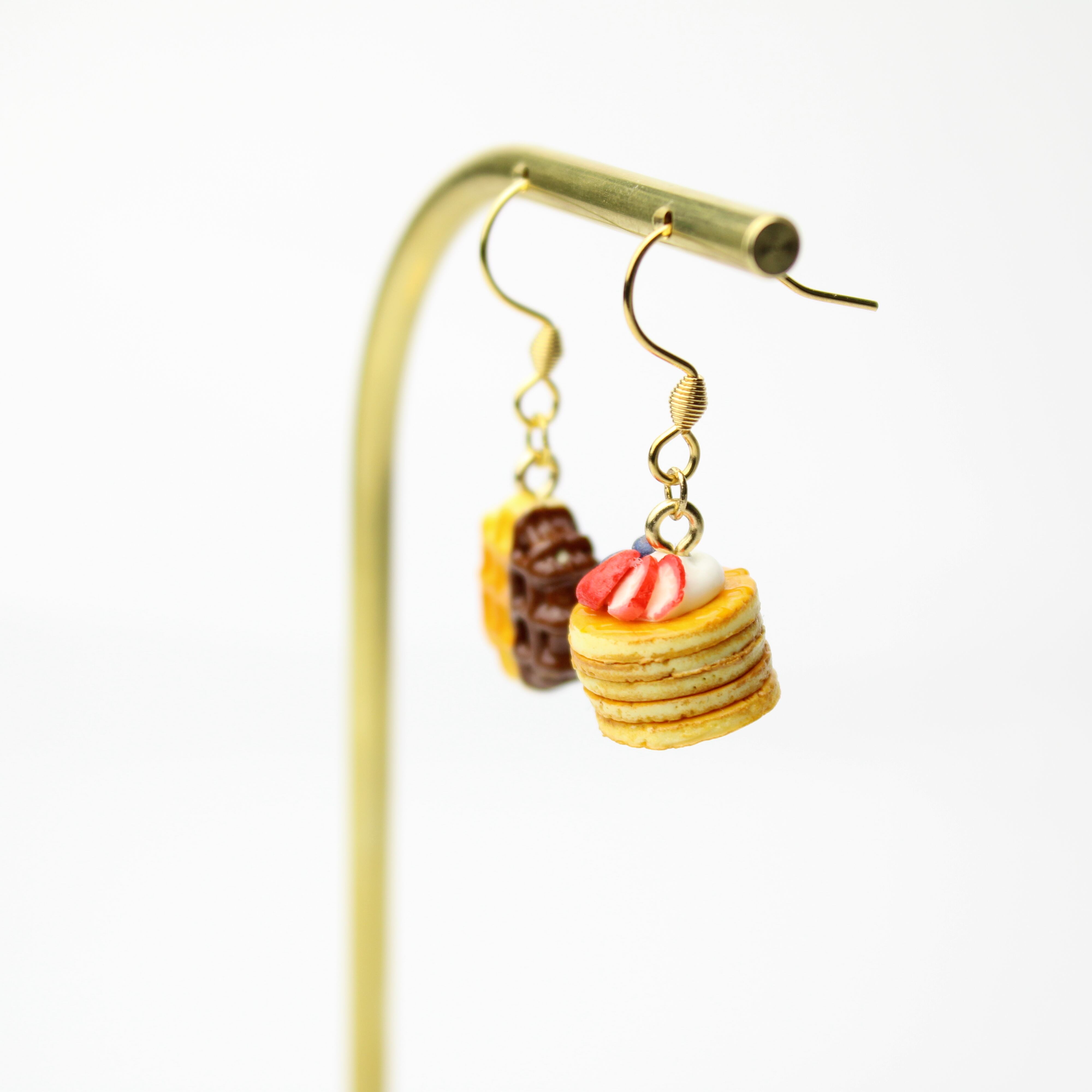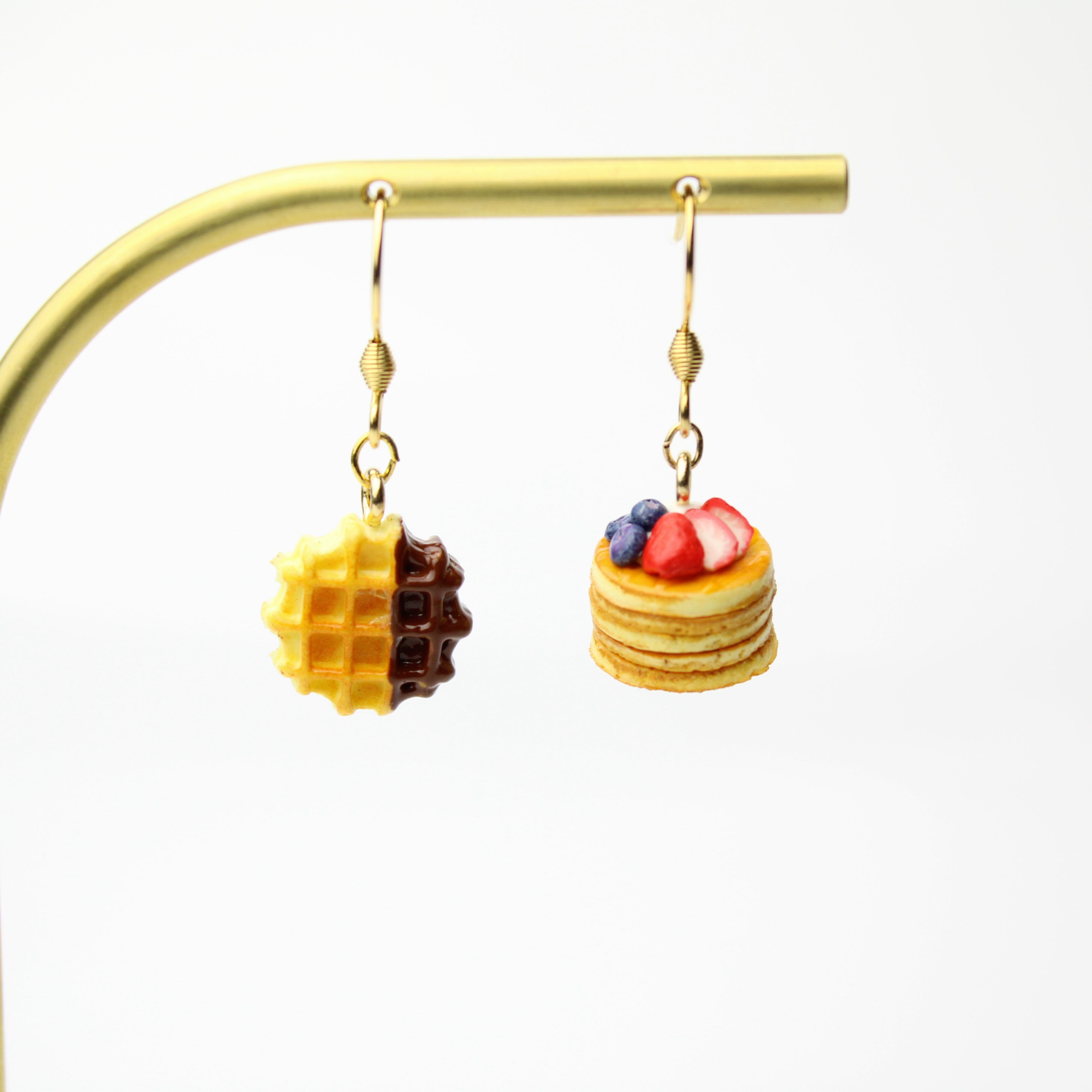 苺とブルーベリーのパンケーキ・チョコレートワッフル(ピアス / イヤリング/チャーム/キーホルダー) ミニチュア フェイクフード ハンドメイド作品
