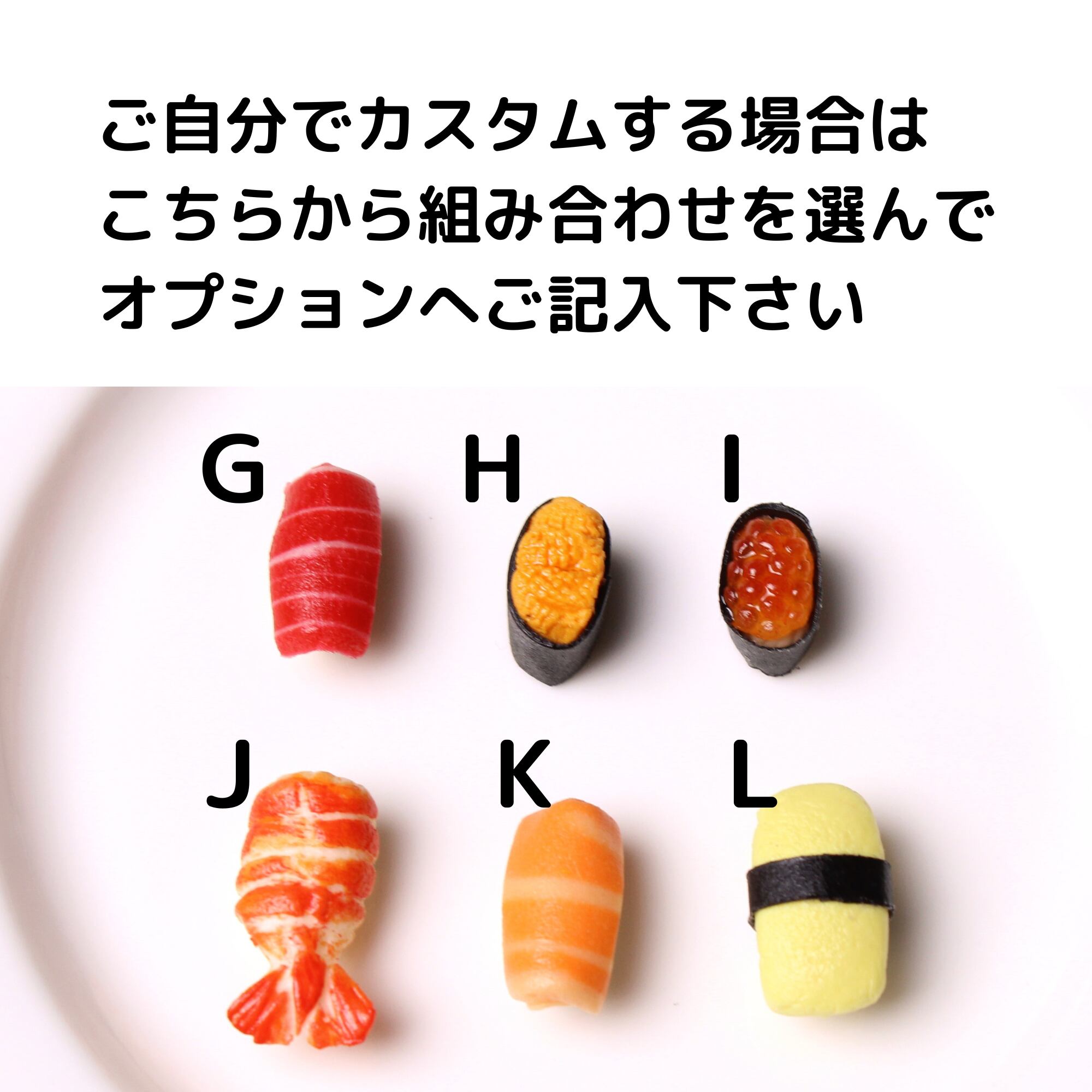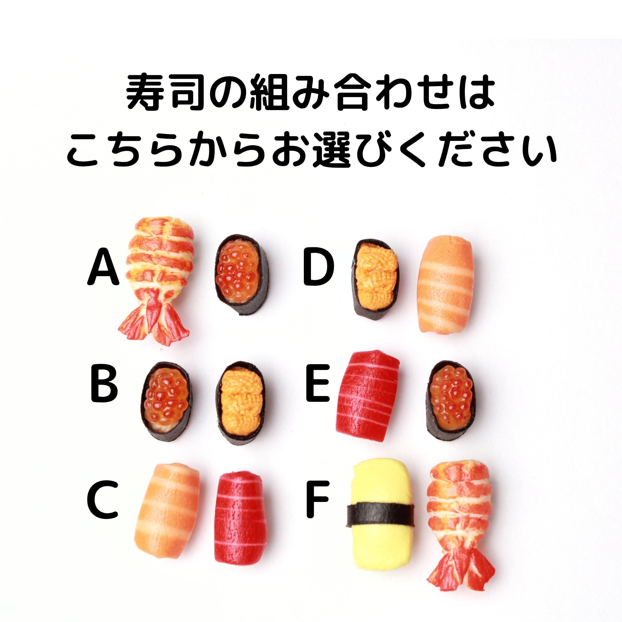 人気の「選べるシリーズ」今回はお好きなネタを組み合わせて、“ミニチュア寿司のオリジナルアクセサリー”をお楽しみください(*´꒳`*)