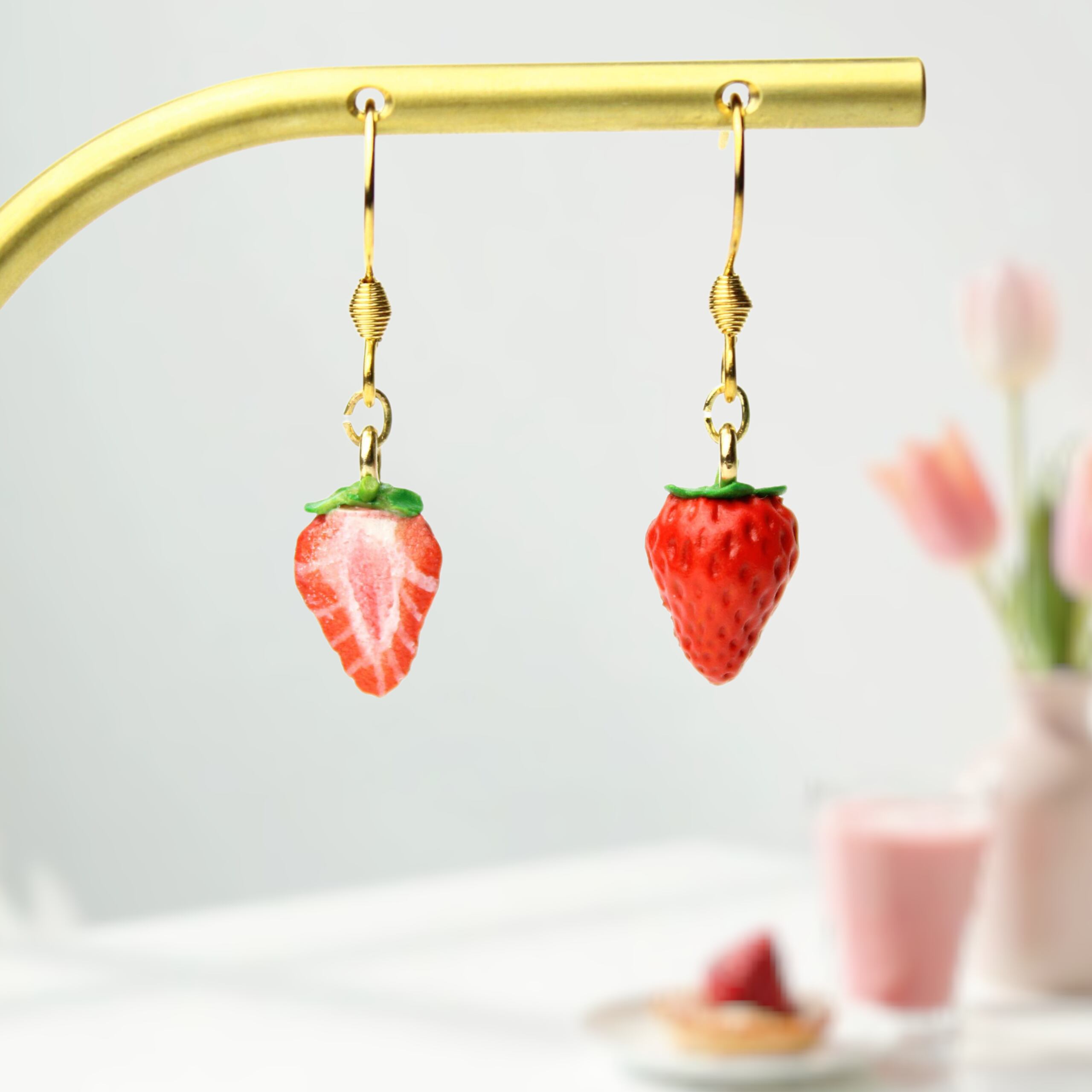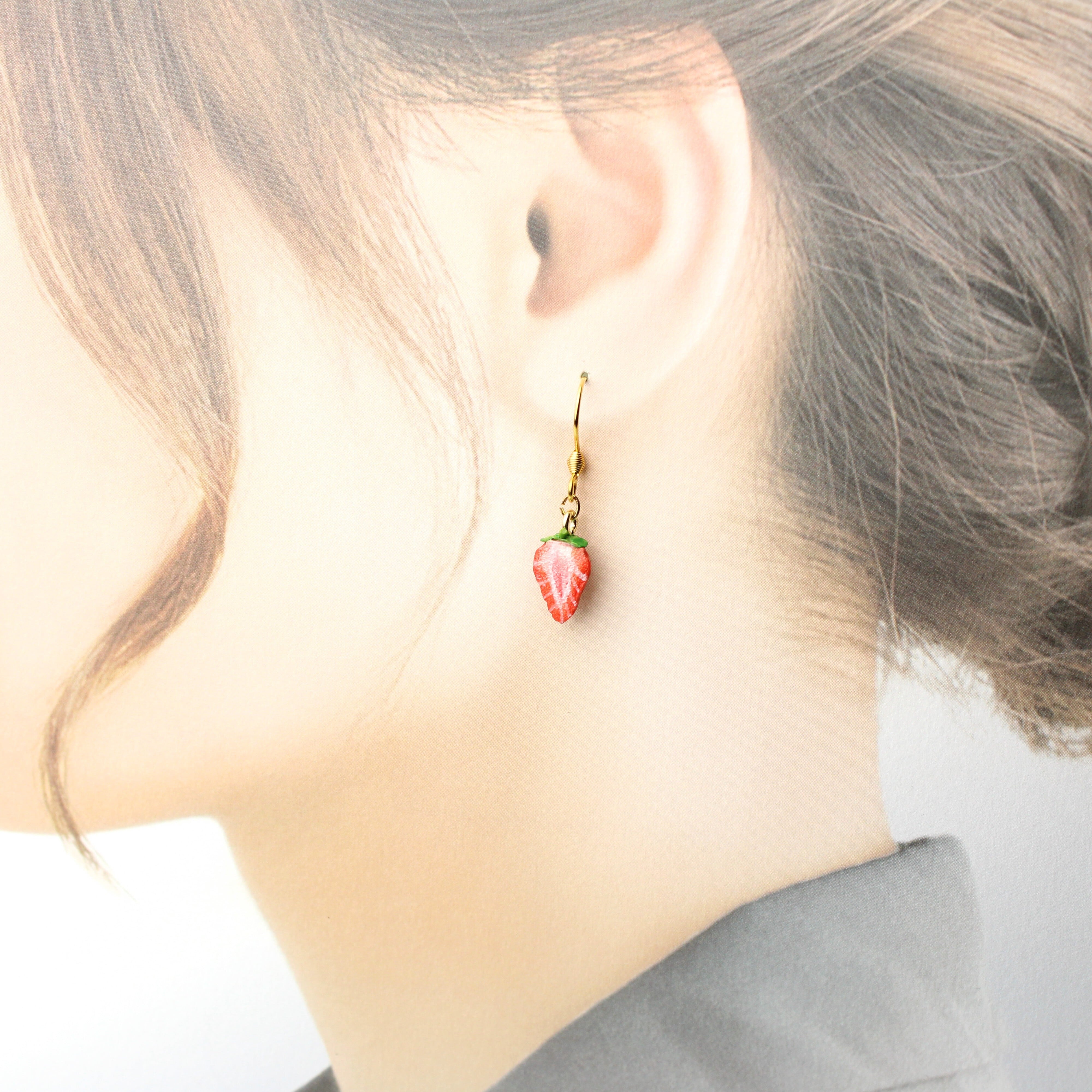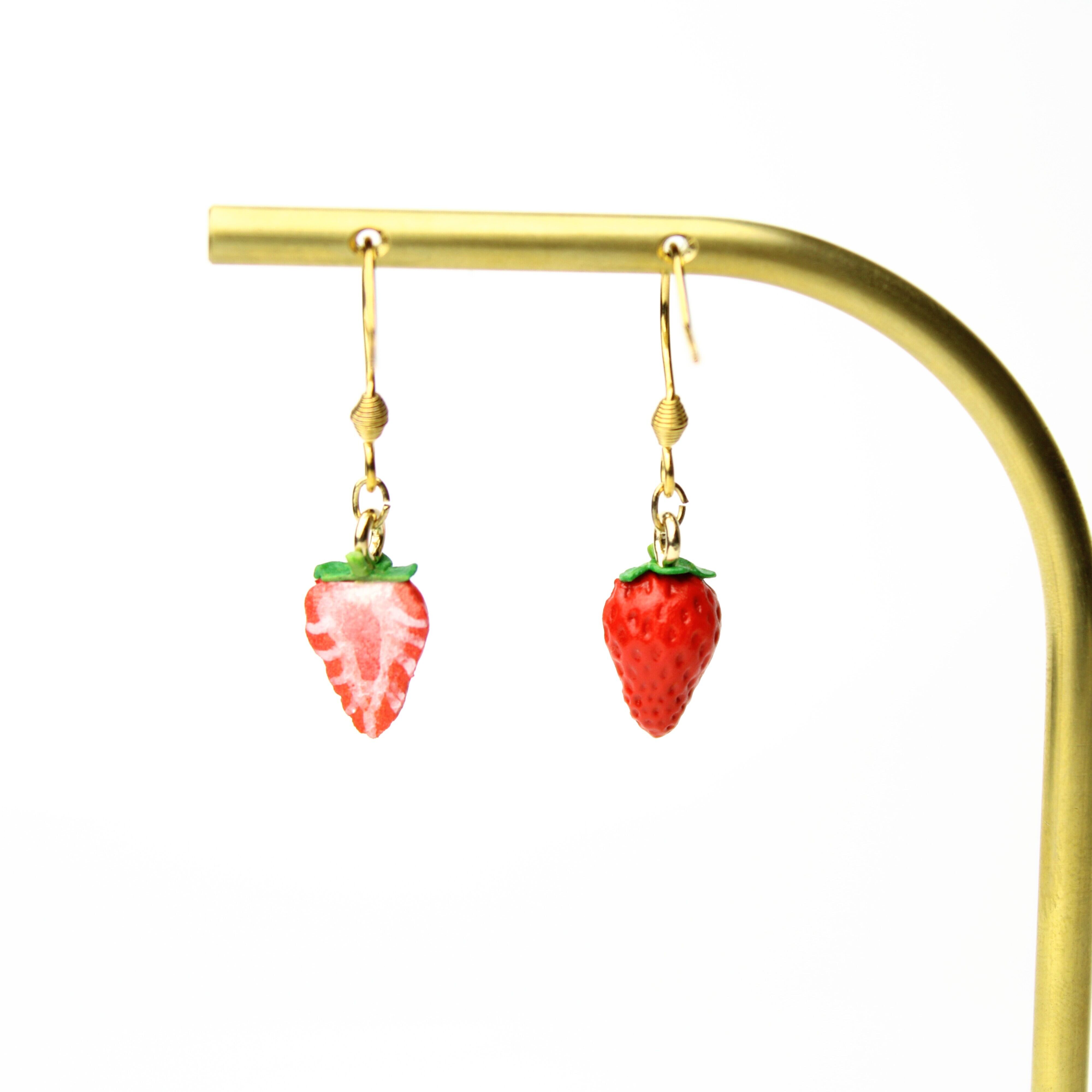 大人かわいい 手作り苺のピアス・ミニチュアアート(ピアス / イヤリング/チャーム/キーホルダー)ミニチュア フルーツ 食べ物モチーフ ハンドメイド作品