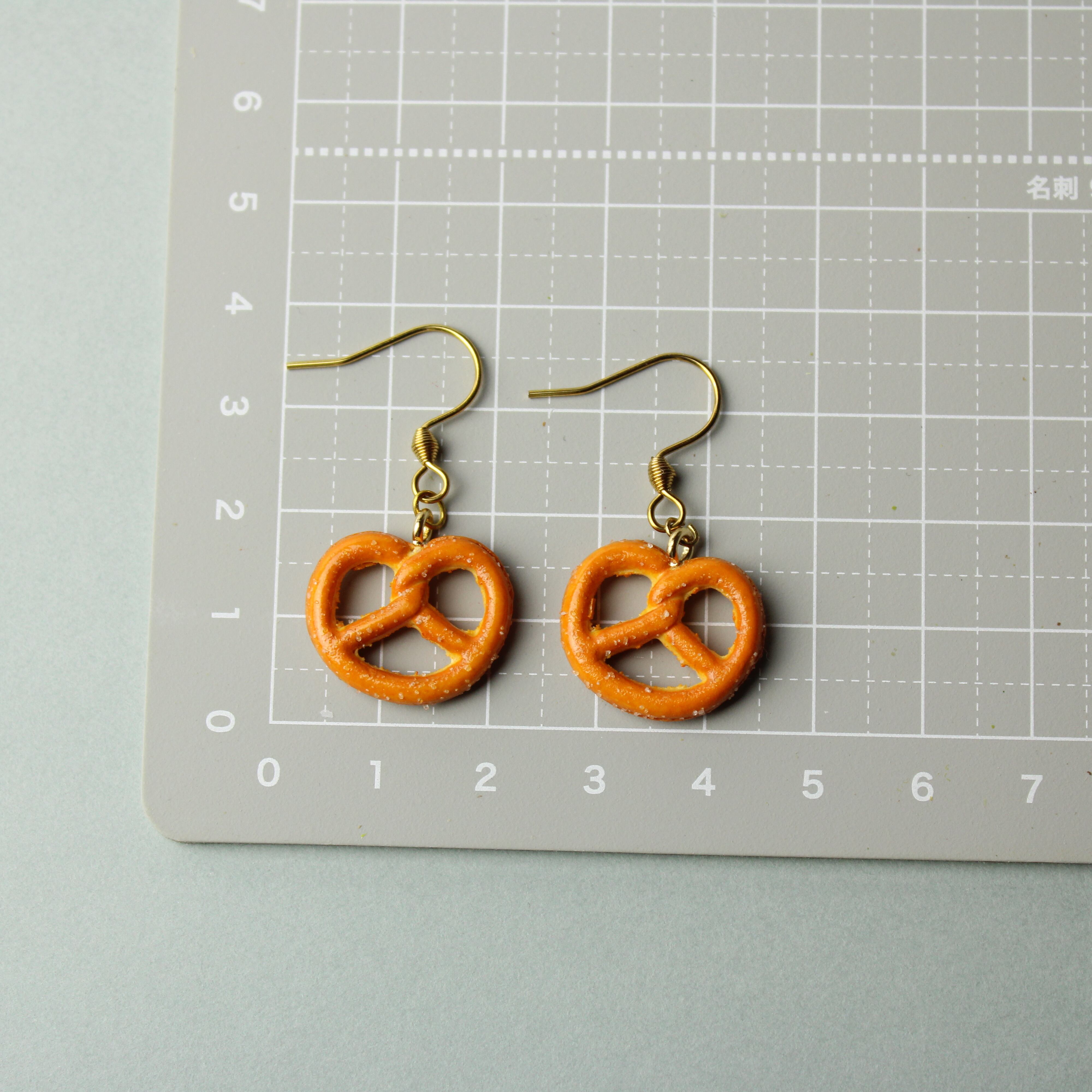 プレッツェルのミニチュアピアス|大人の遊び心アクセ(ピアス / イヤリング/チャーム/キーホルダー) ミニチュア スイーツ ハンドメイド作品