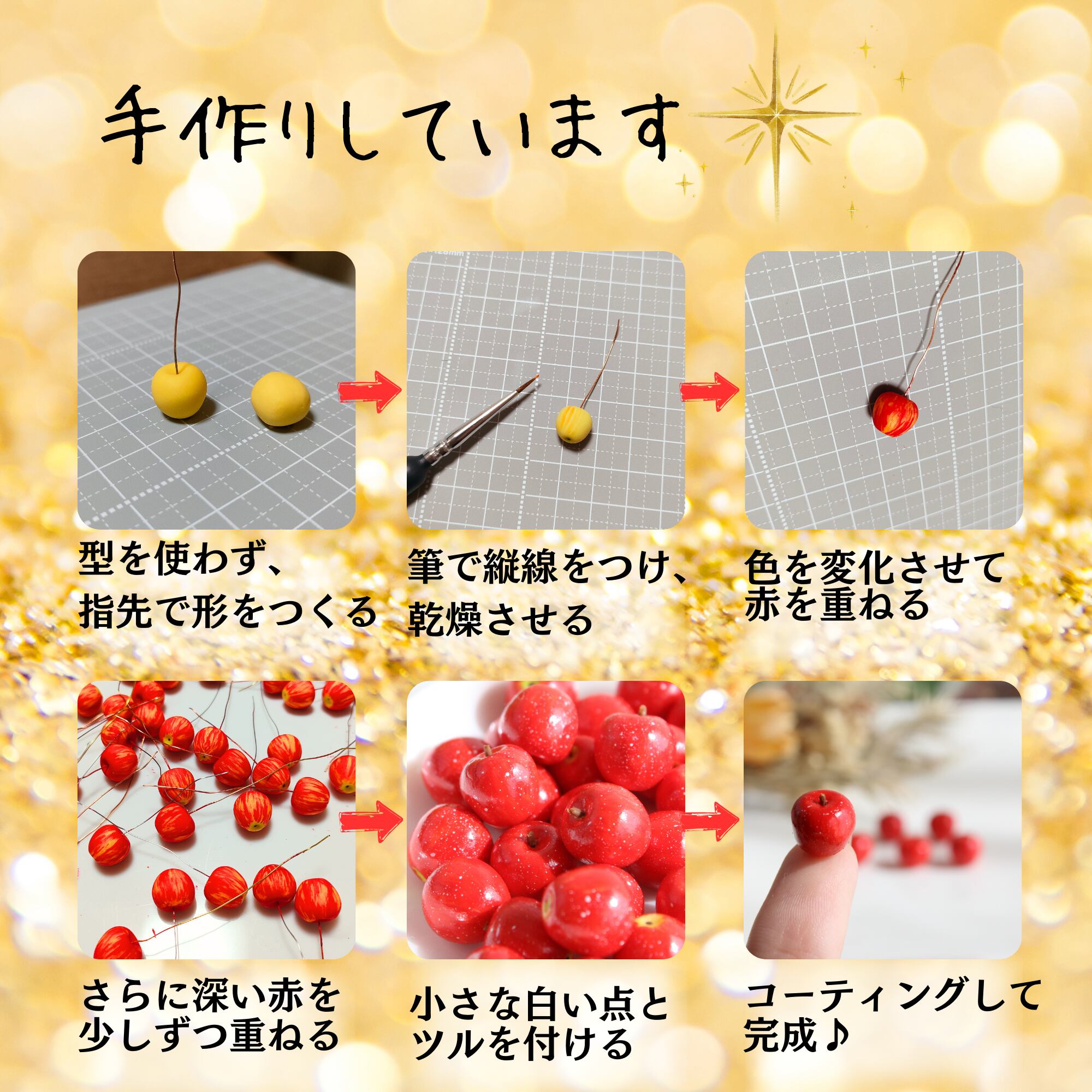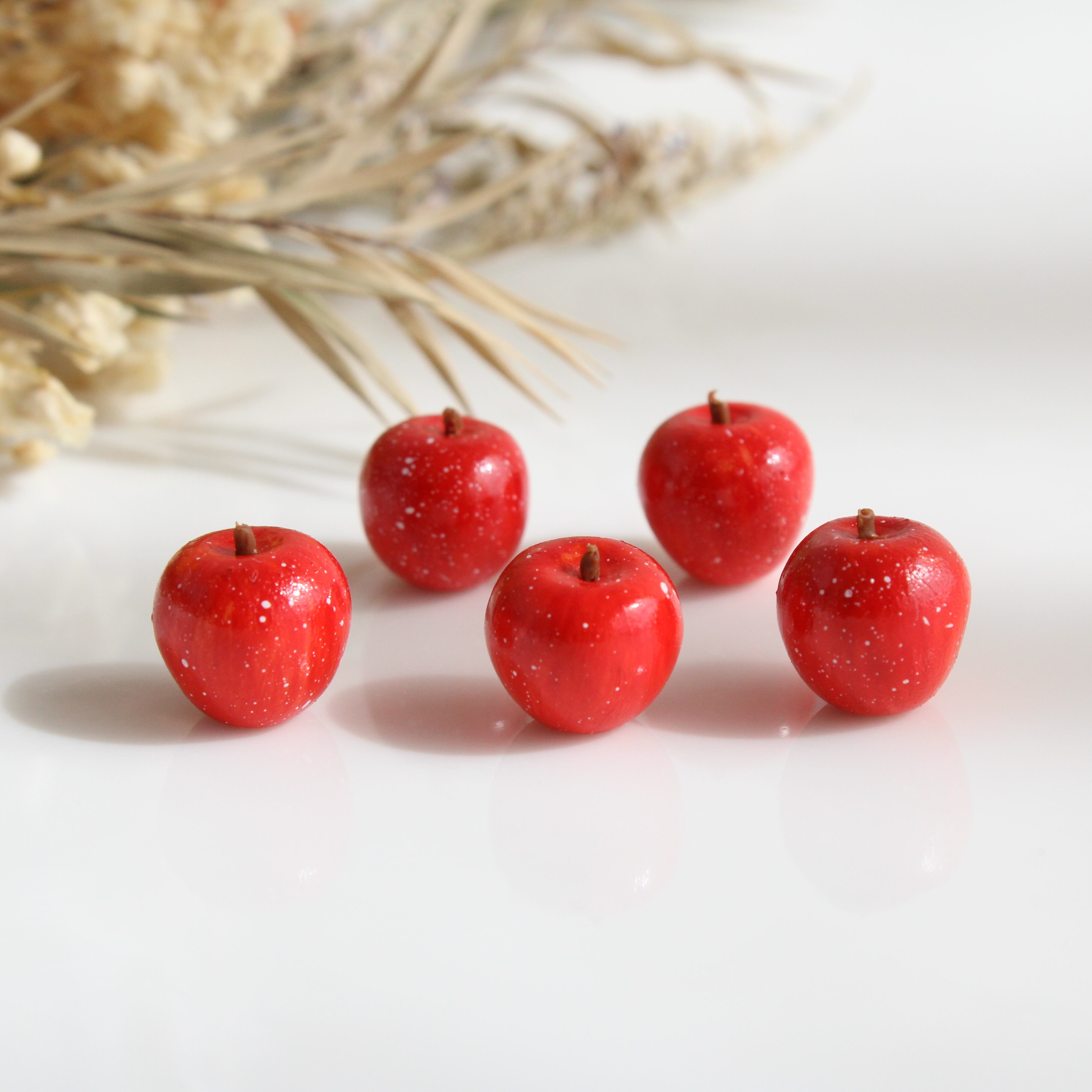 人気のふじりんごをイメージして、樹脂粘土から手作りしました。リアルなデザインと鮮やかな色合いが魅力です。