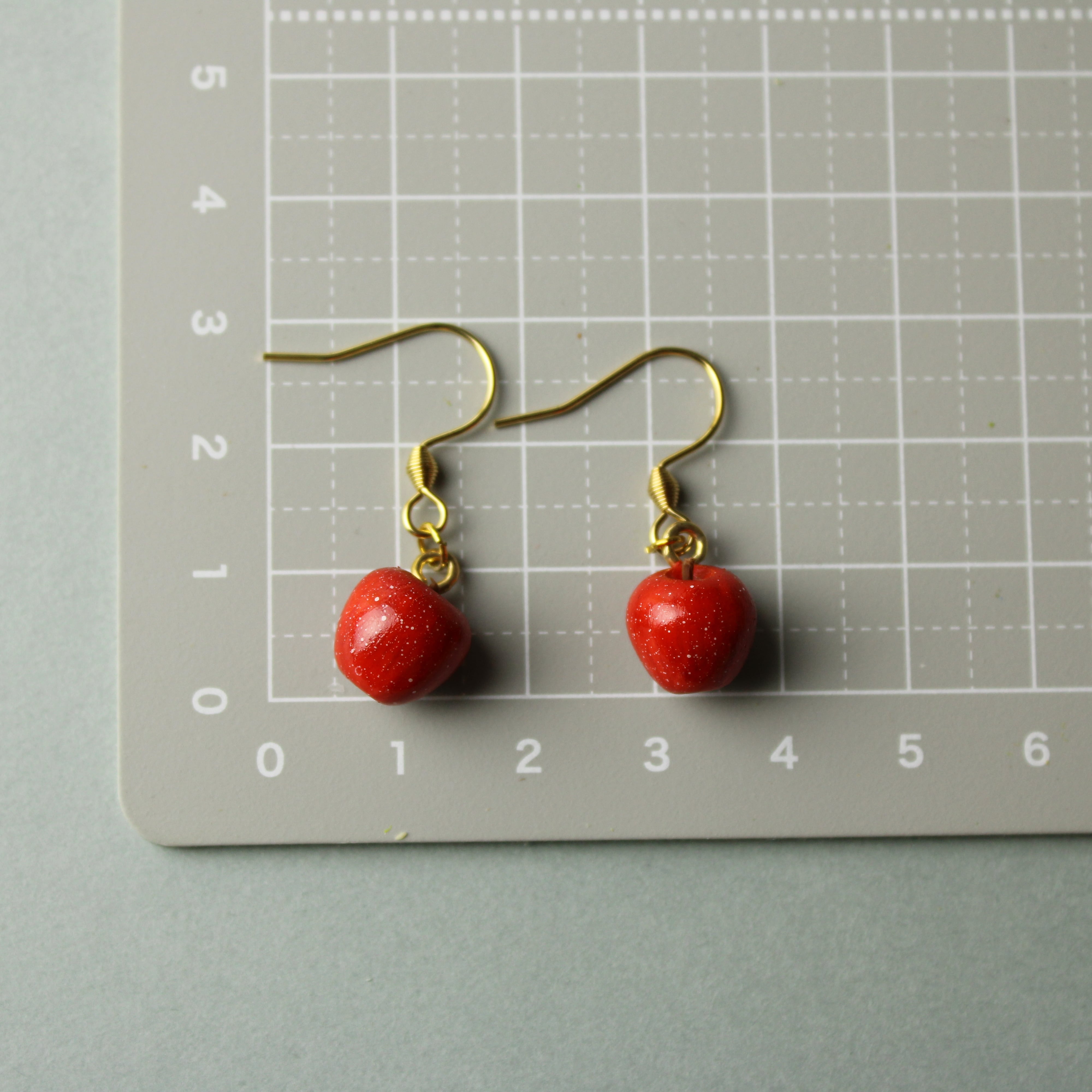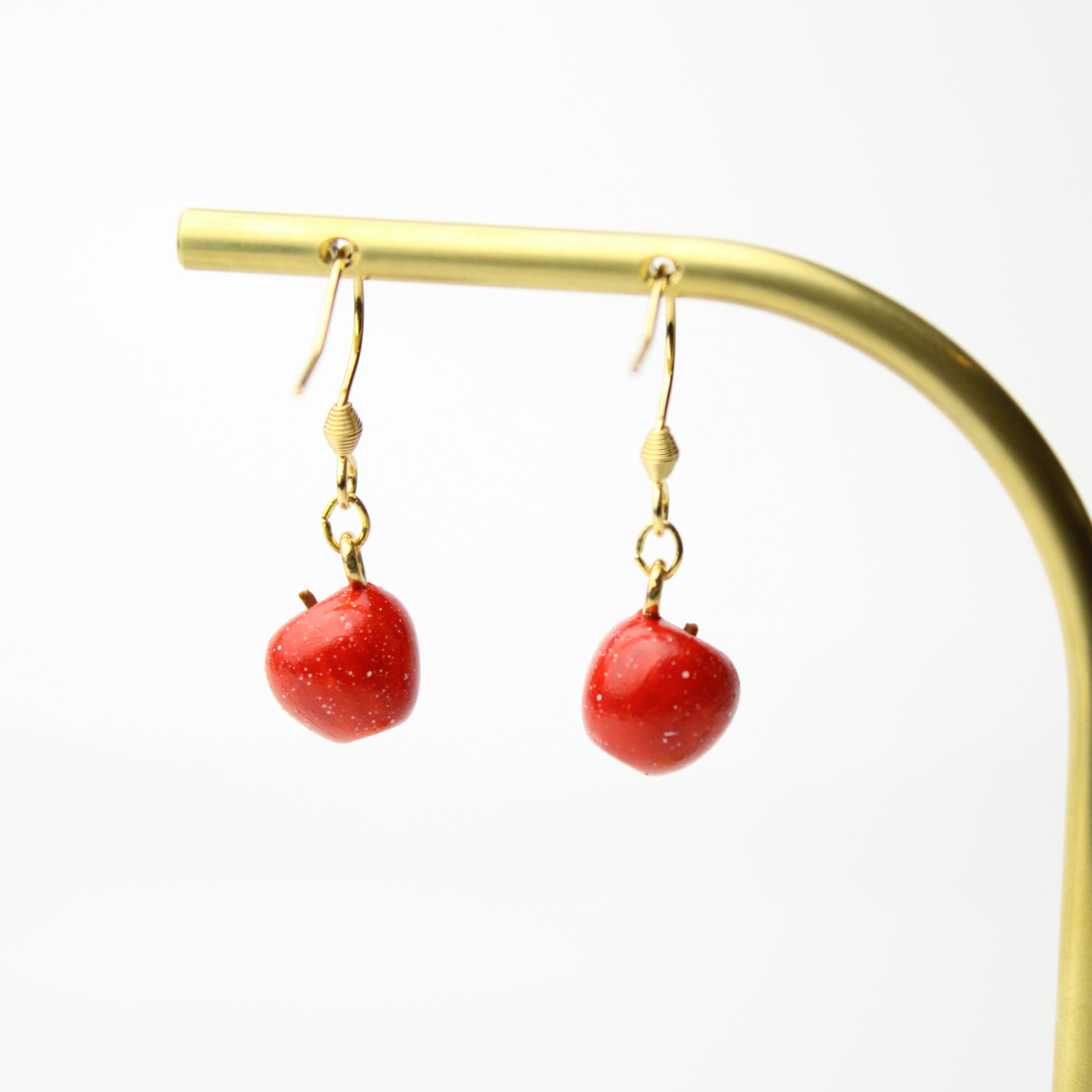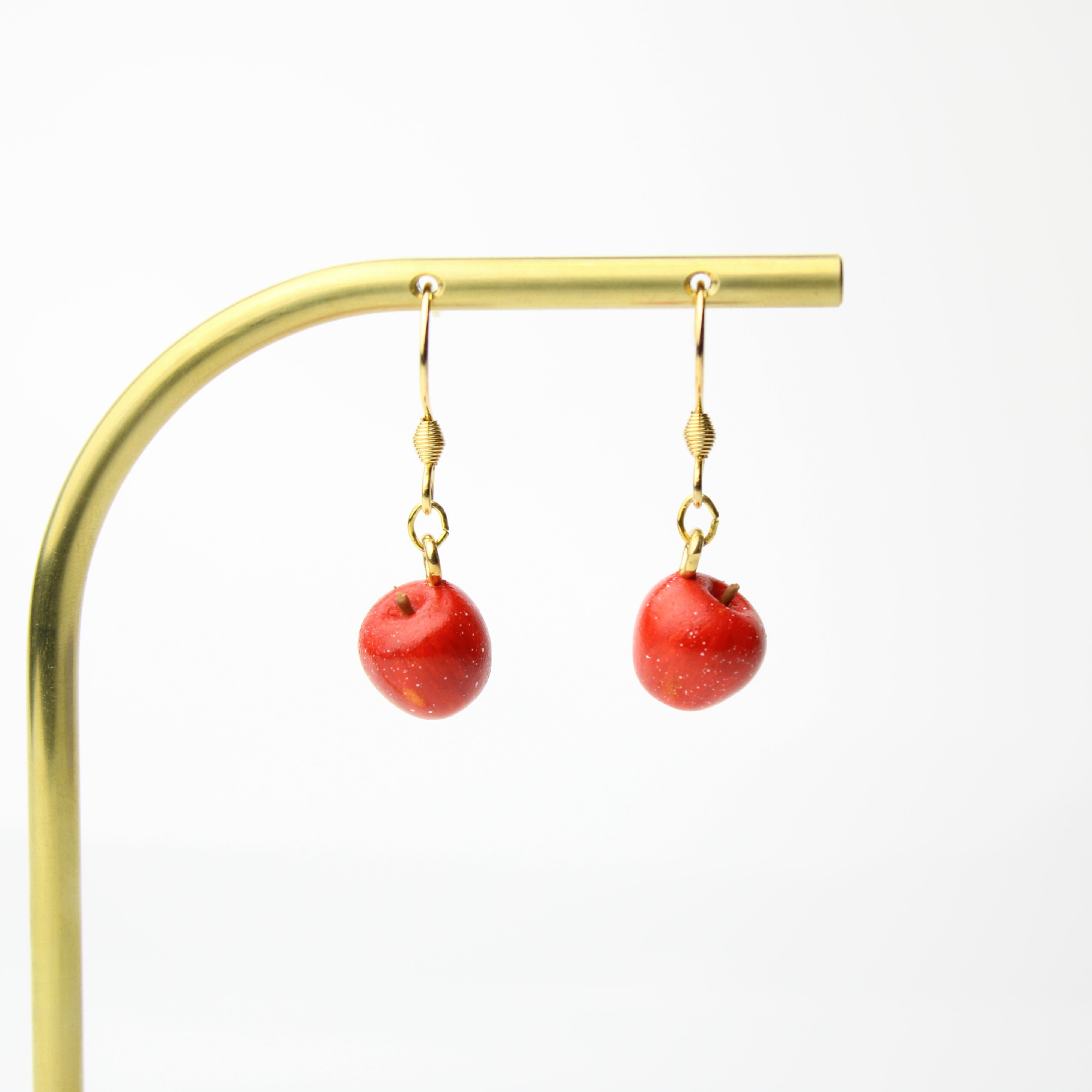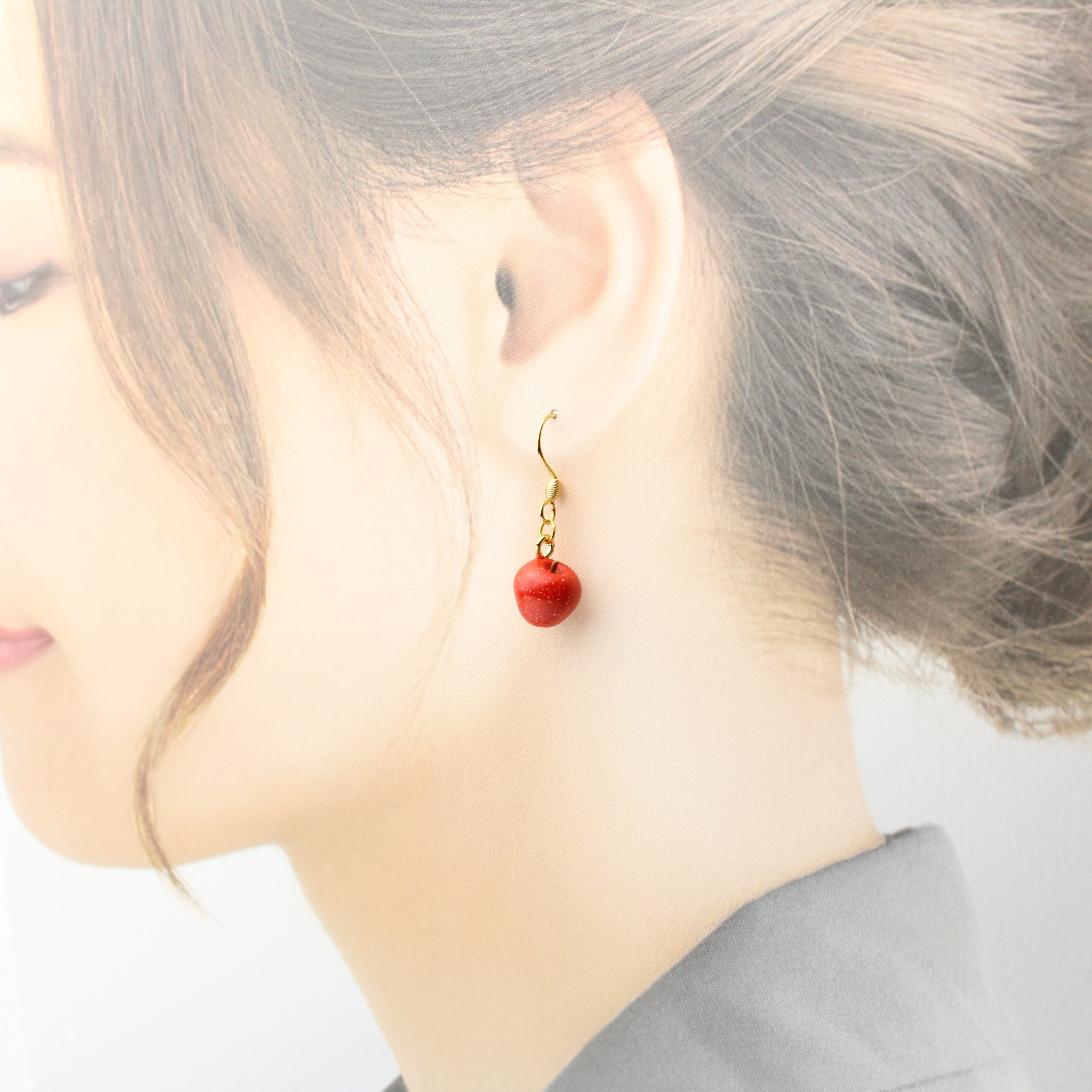 こだわりの ミニチュア 林檎 ✾ 樹脂粘土 フルーツ ふじ りんご ( ピアス イヤリング )ハンドメイド フェイクフード