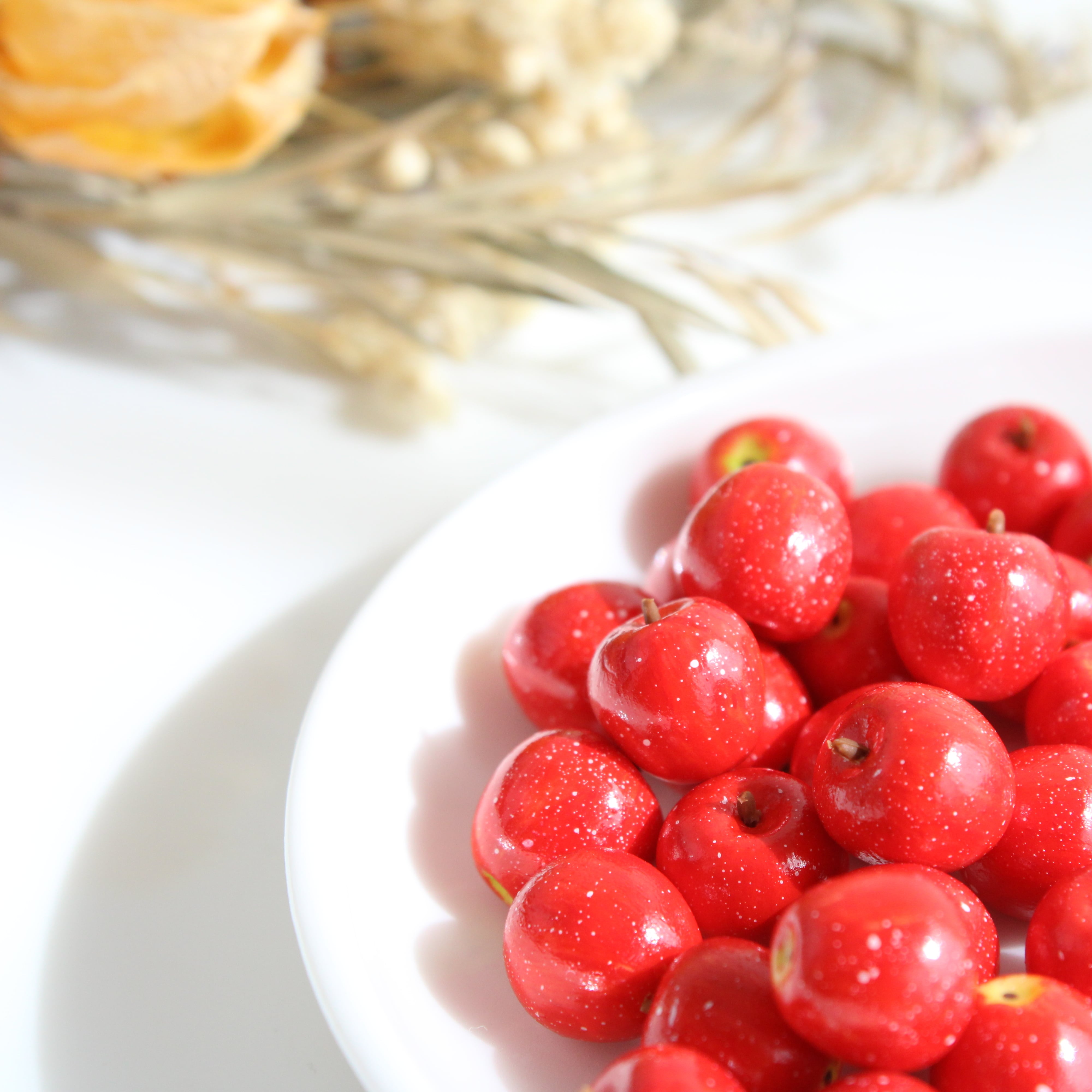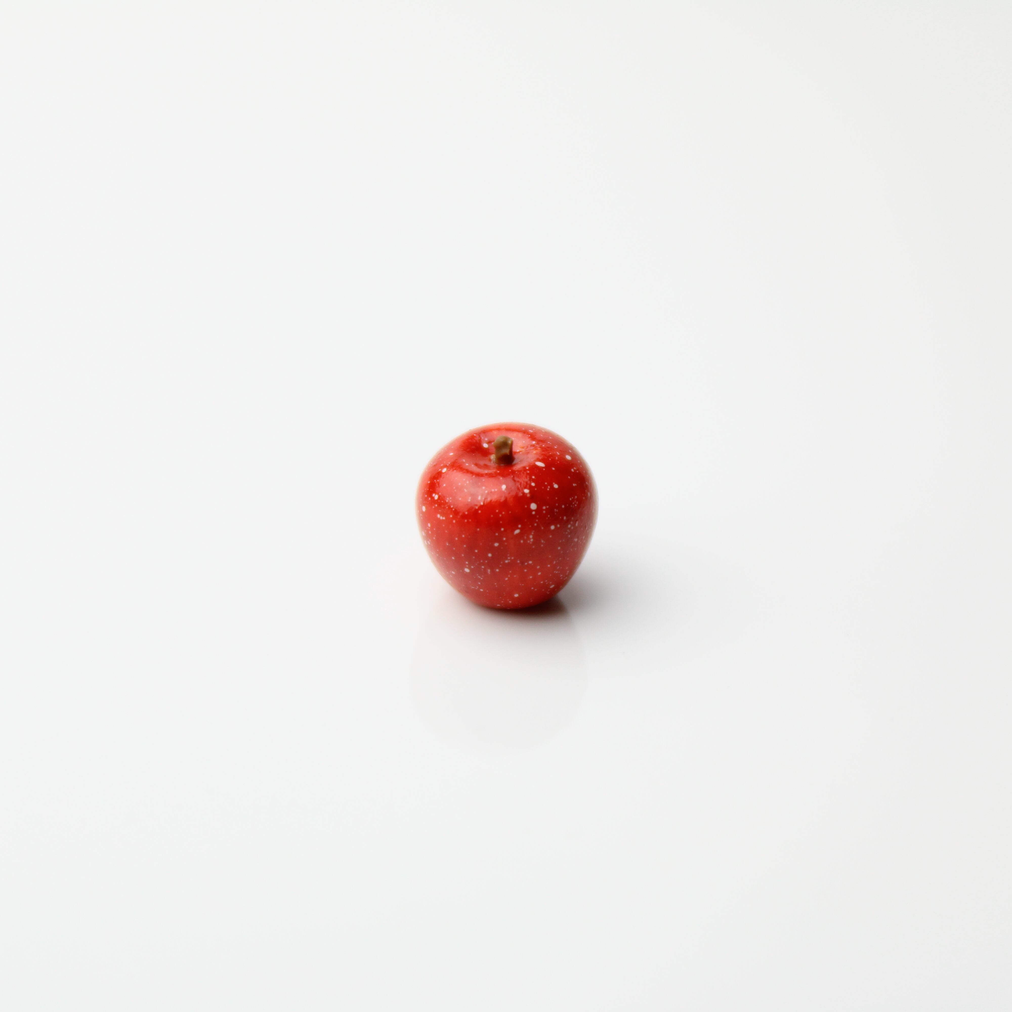 ・林檎ならではの模様、縦線と斑点まで表現します。着色はベタ塗りをしていません。何層にも色を重ねて、近くで見た時にリアルな作りをお楽しみいただけるよう仕上げています。