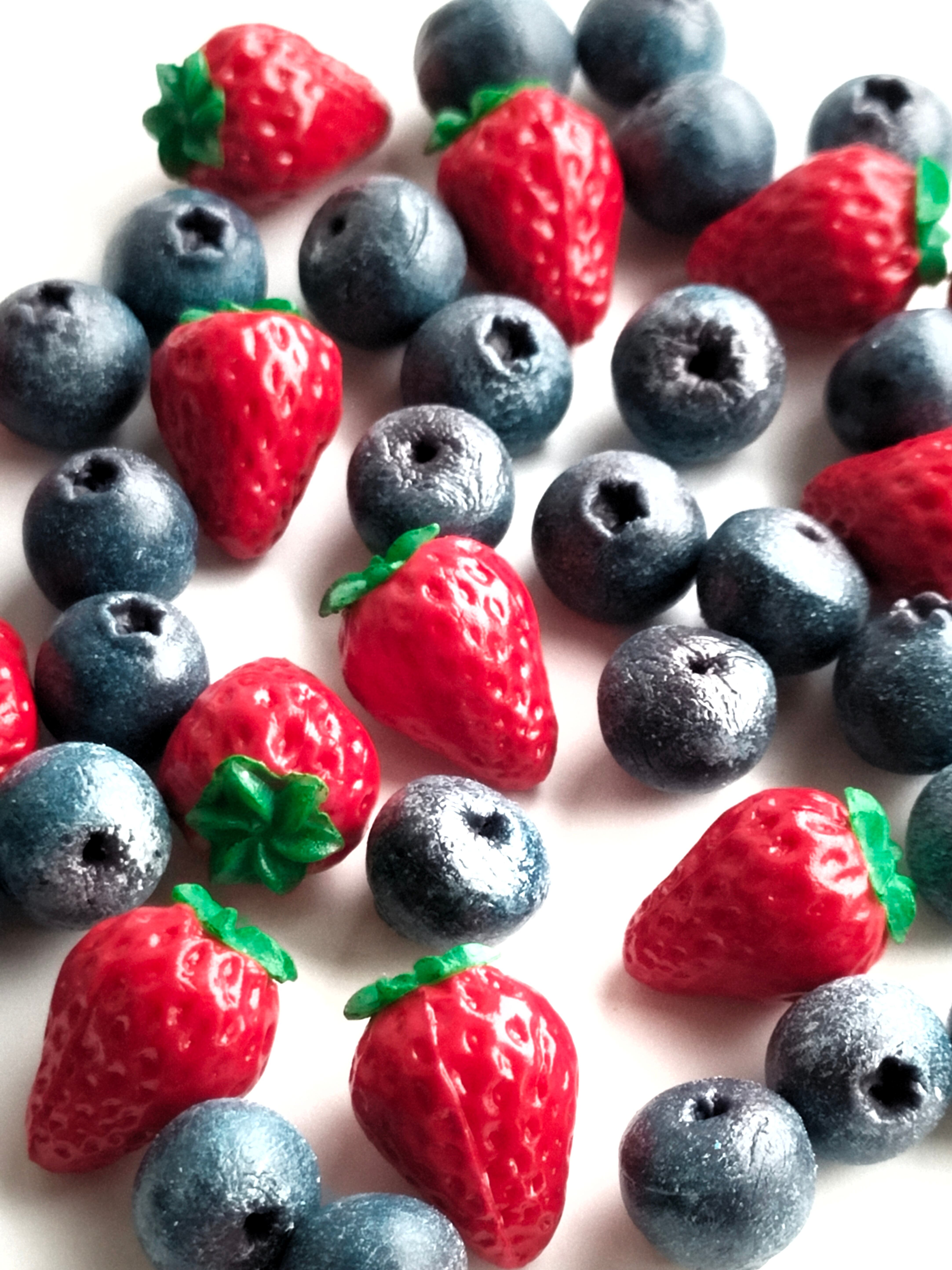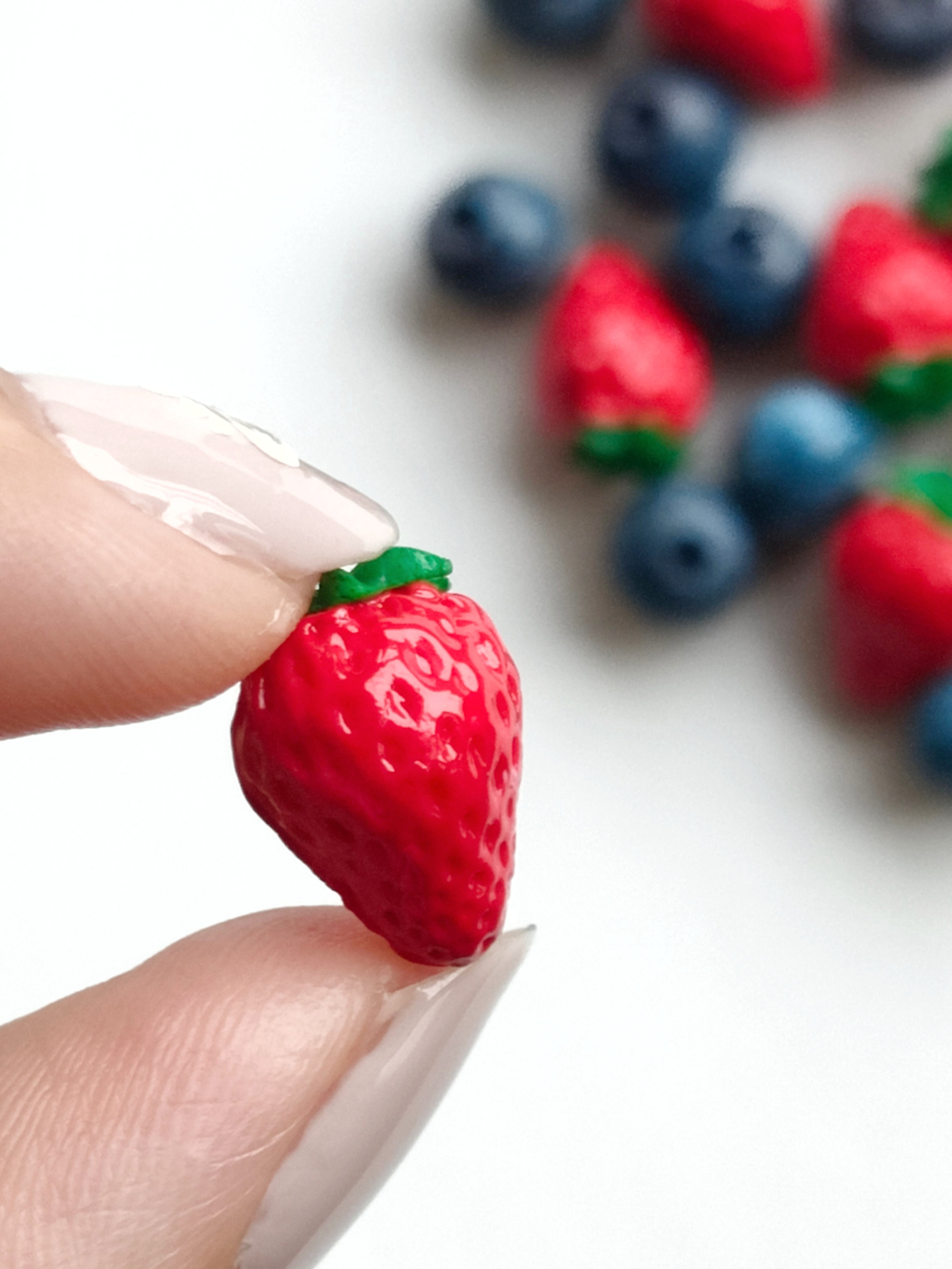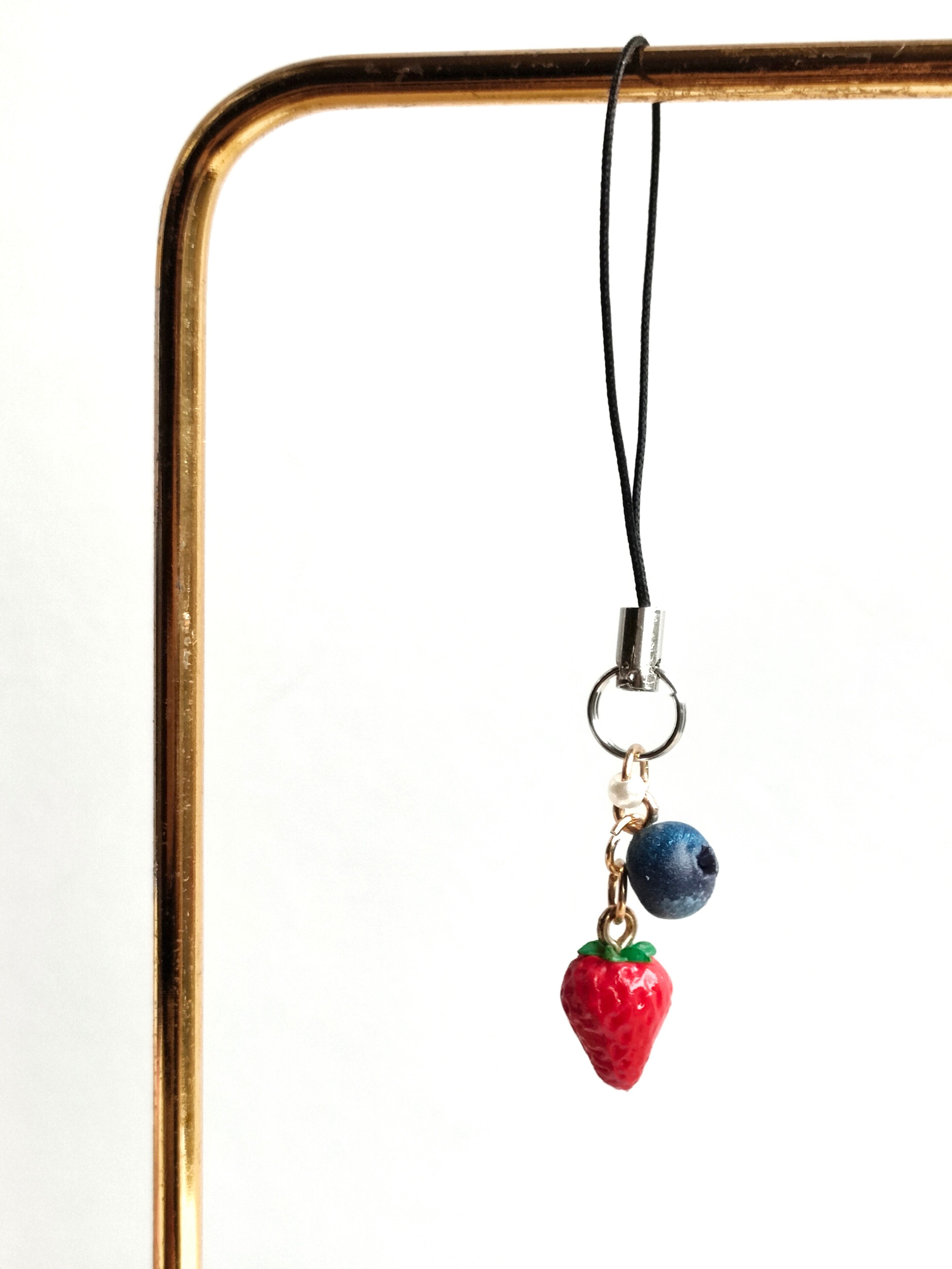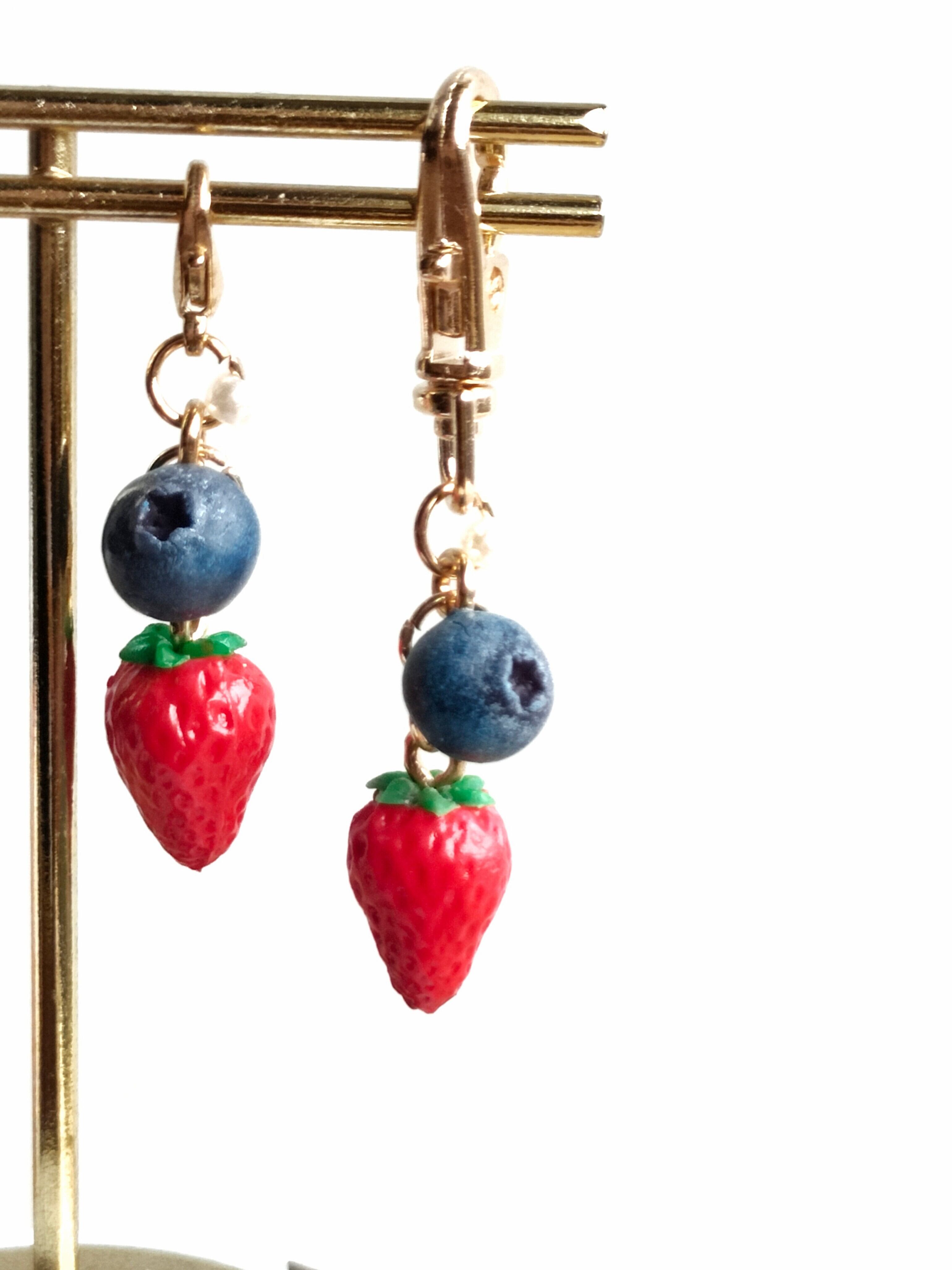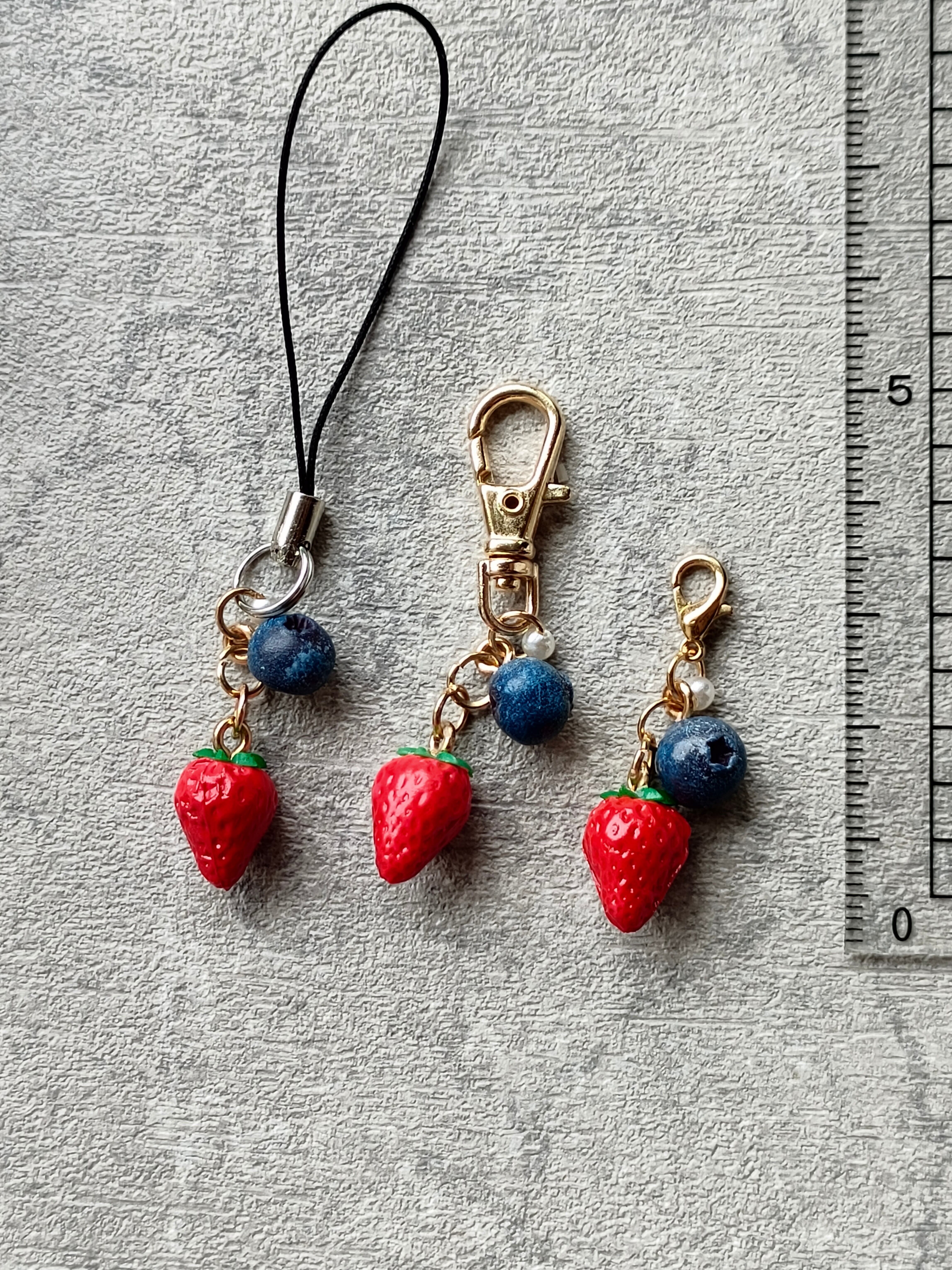 【選べる・金具】こだわりの苺とブルーベリー( チャーム ストラップ キーホルダー )ミニチュア スイーツ フェイクフード ハンドメイド作品