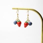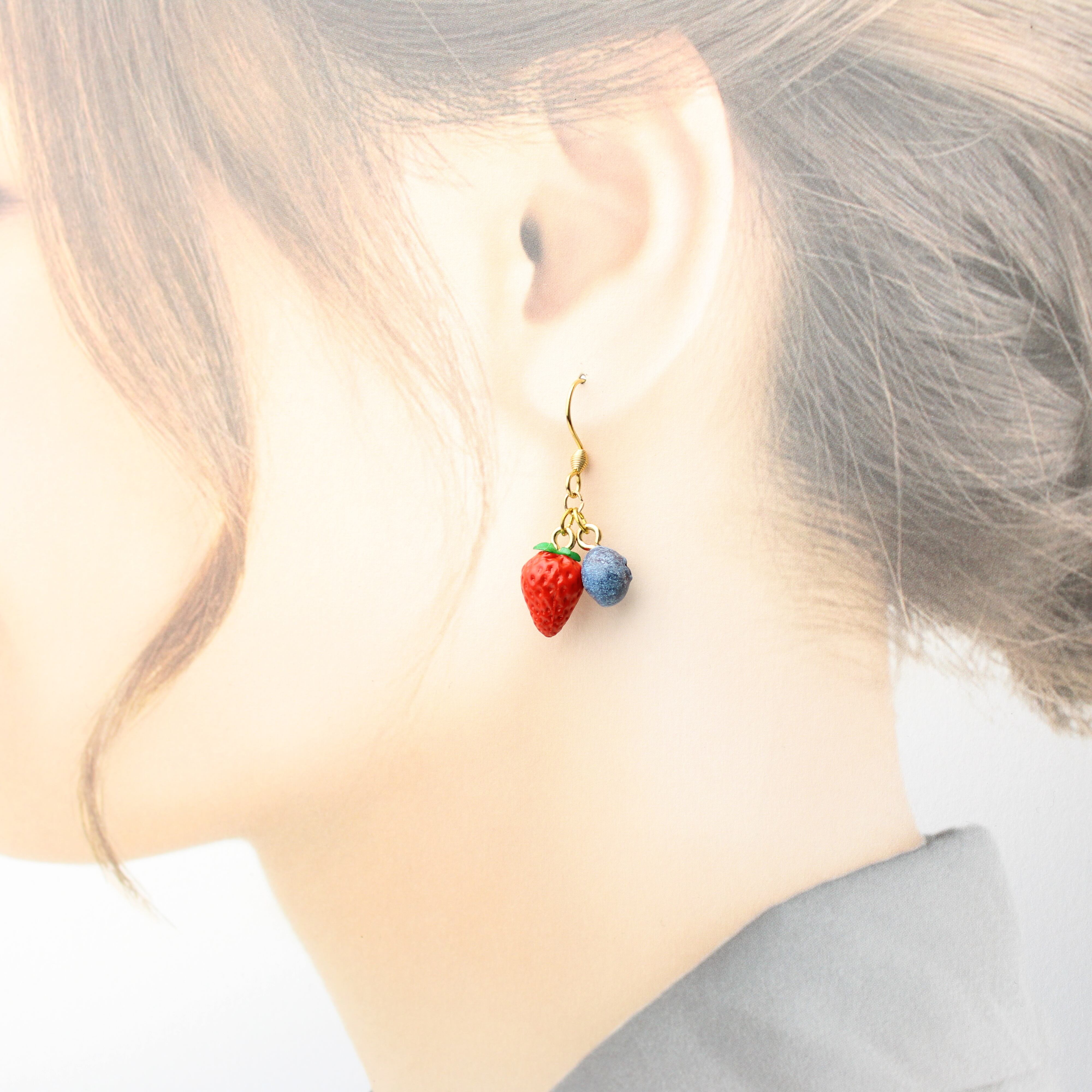 【選べる・金具】こだわりの苺とブルーベリー(ピアス / イヤリング)揺れる ミニチュア 苺 ブルーベリー フェイクフード ハンドメイド作品