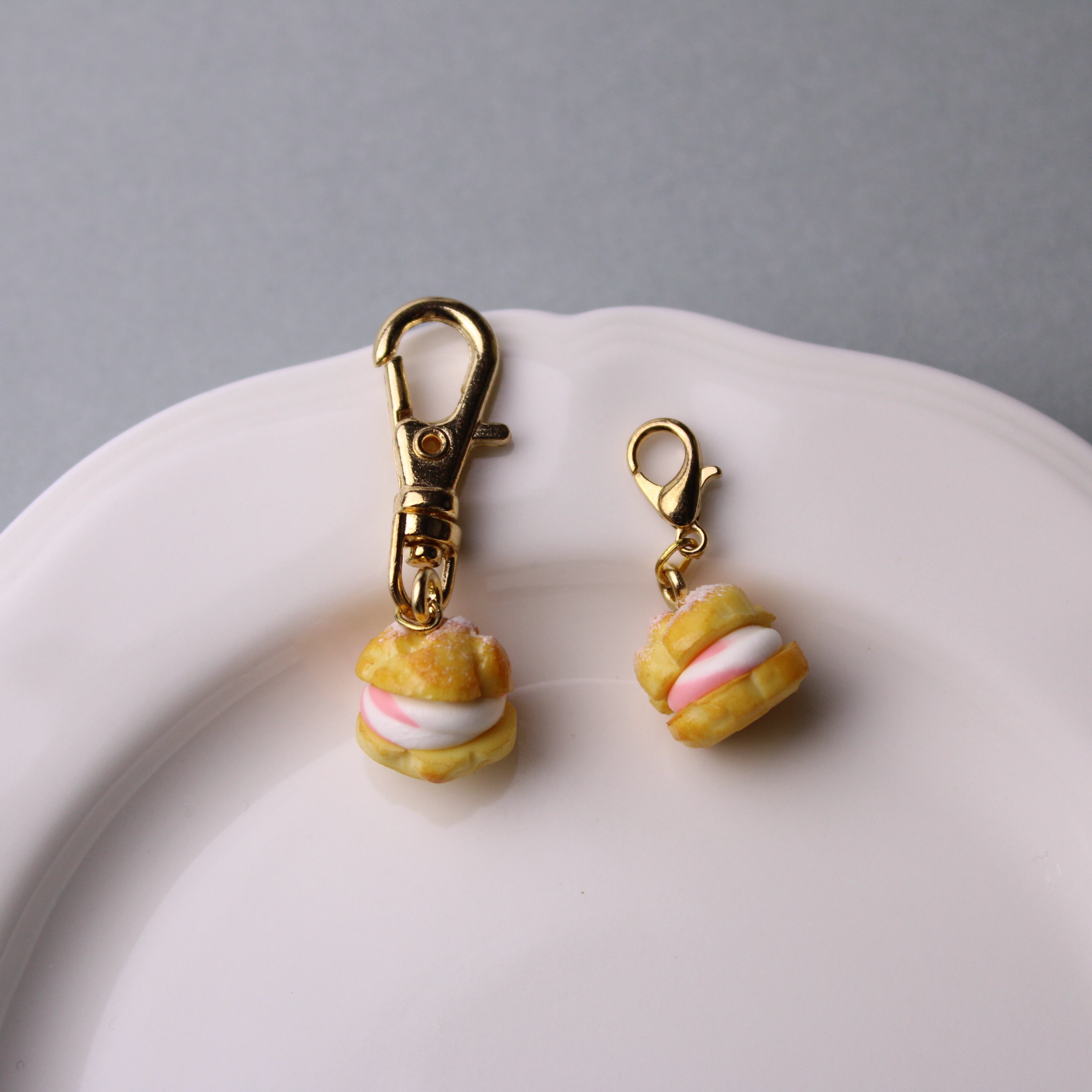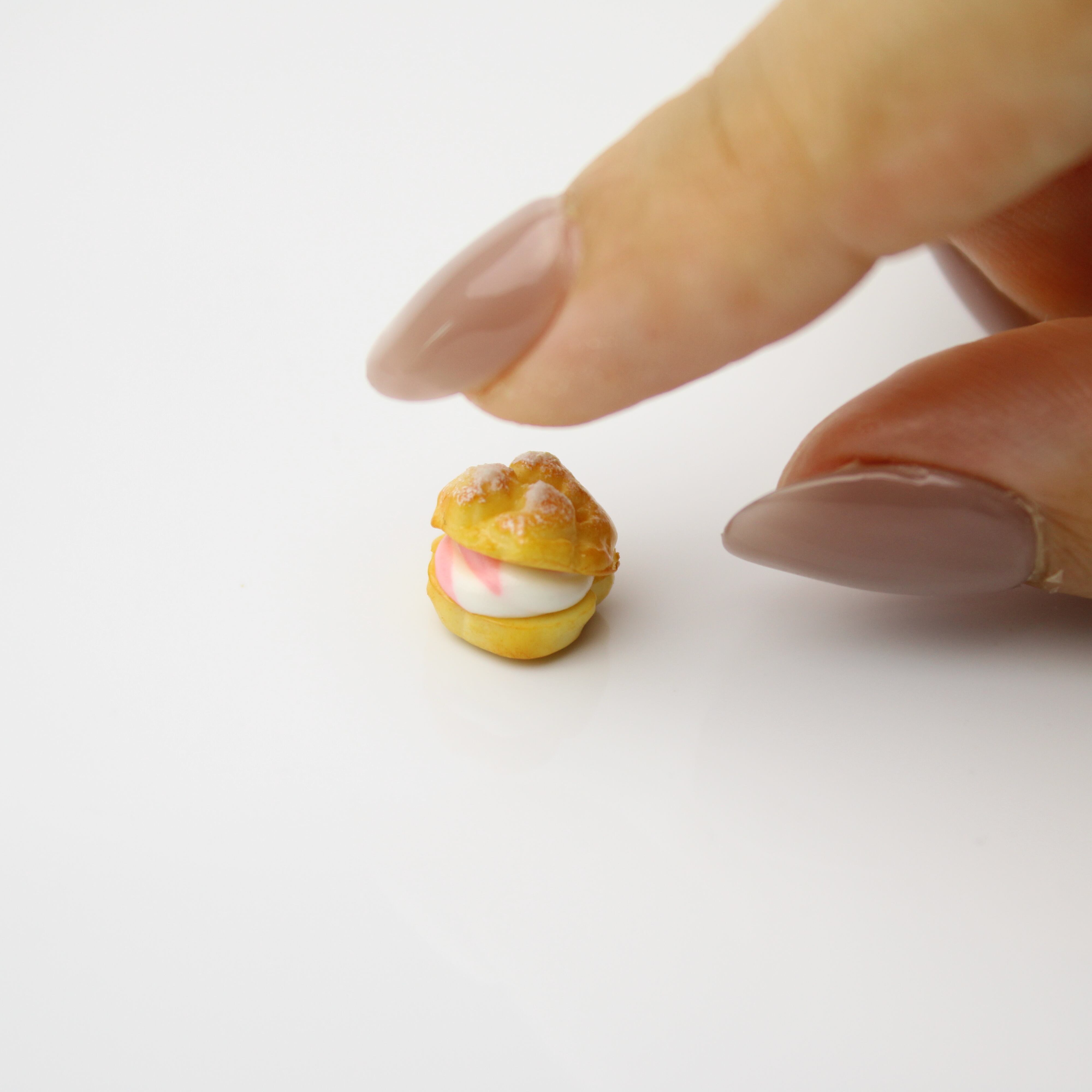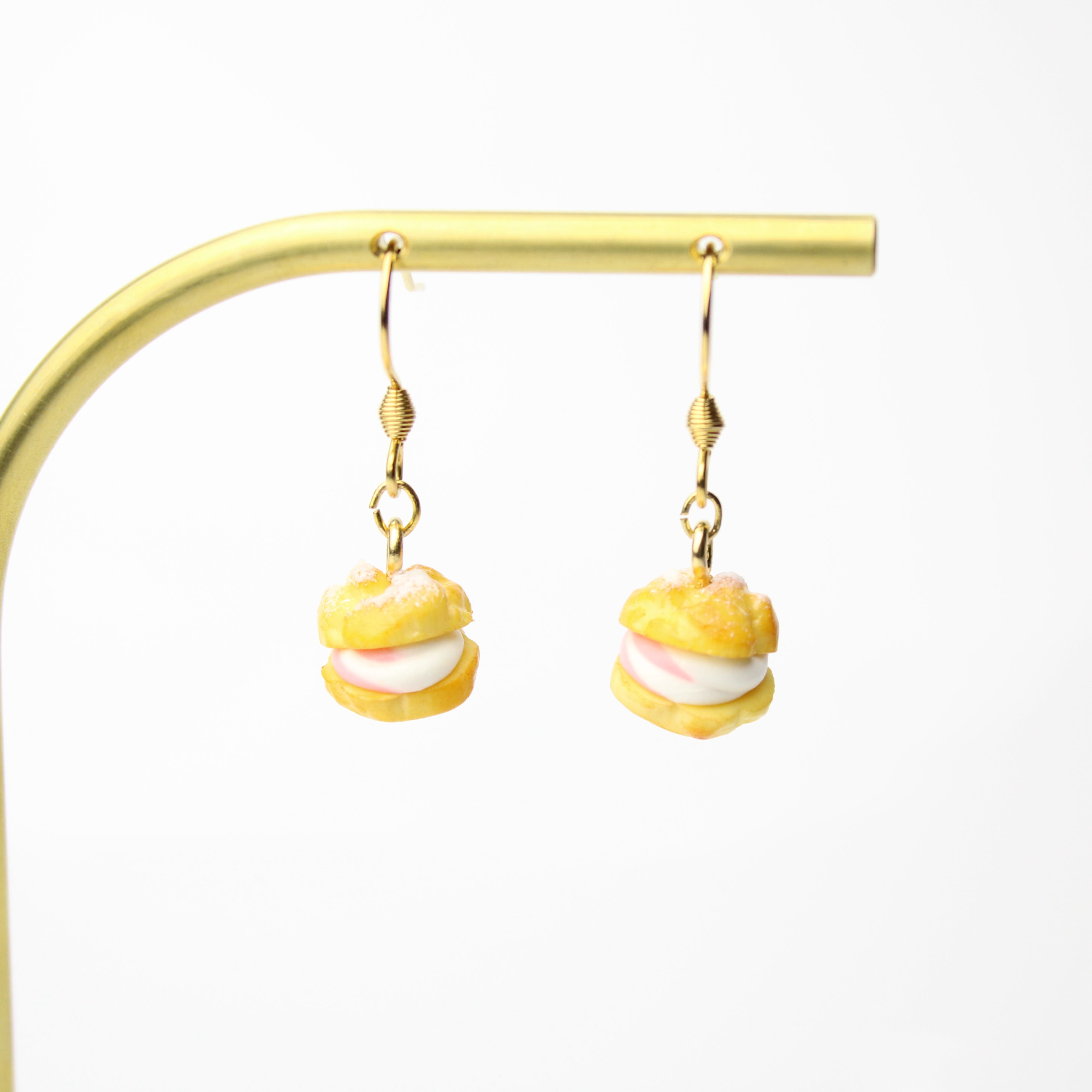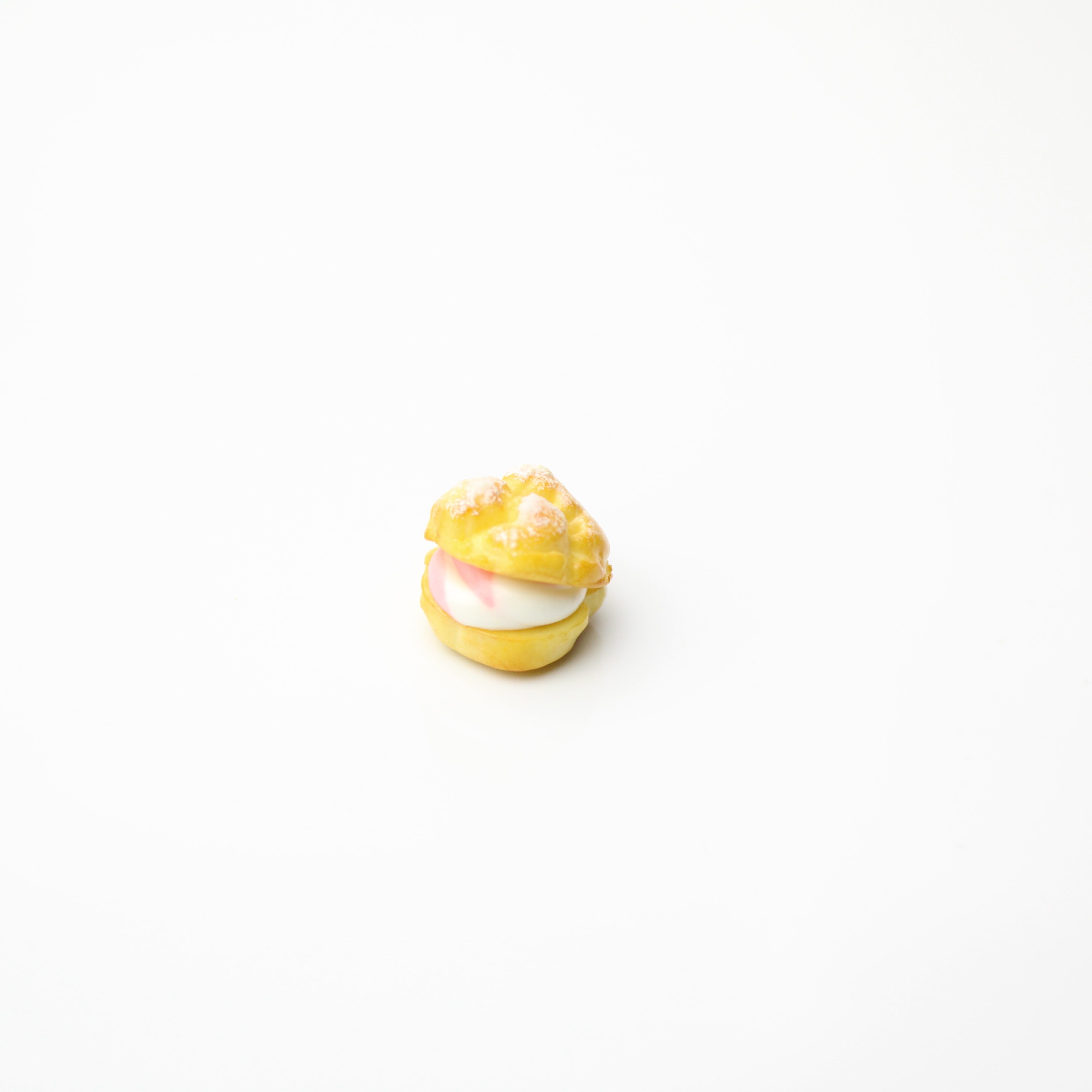 こだわりの 苺ホイップ シュークリーム( ピアス イヤリング/チャーム/キーホルダー )ミニチュア スイーツ ハンドメイド作品