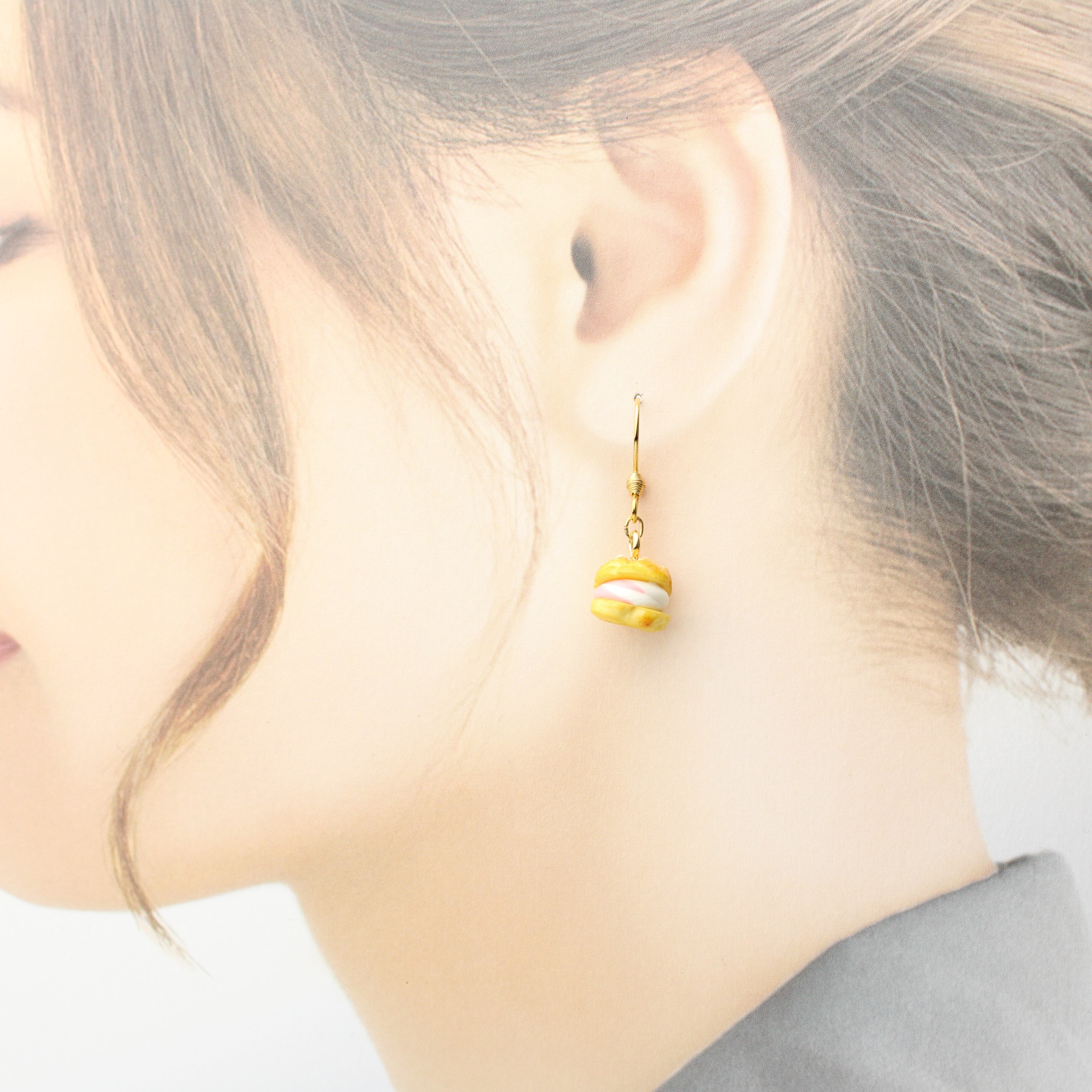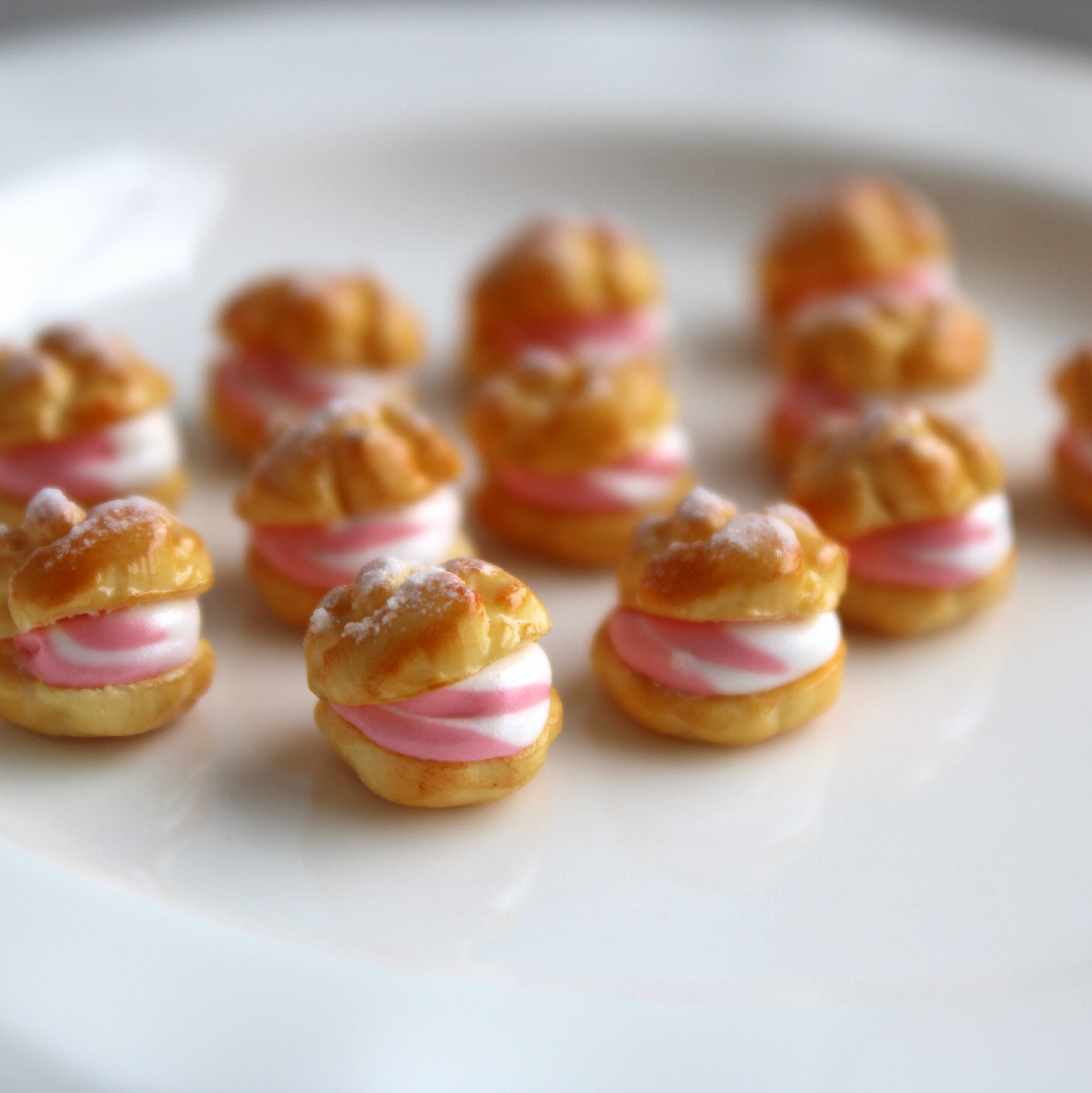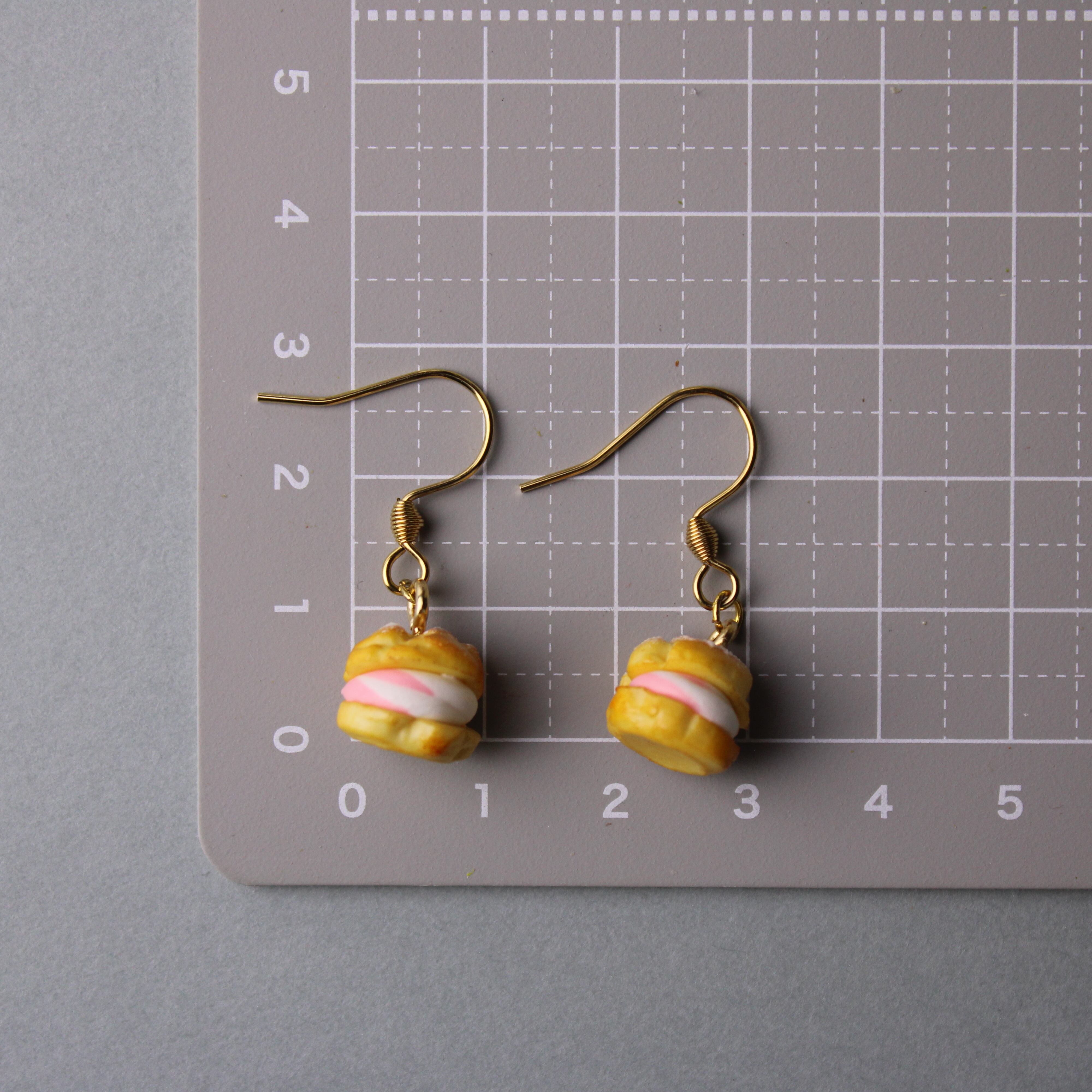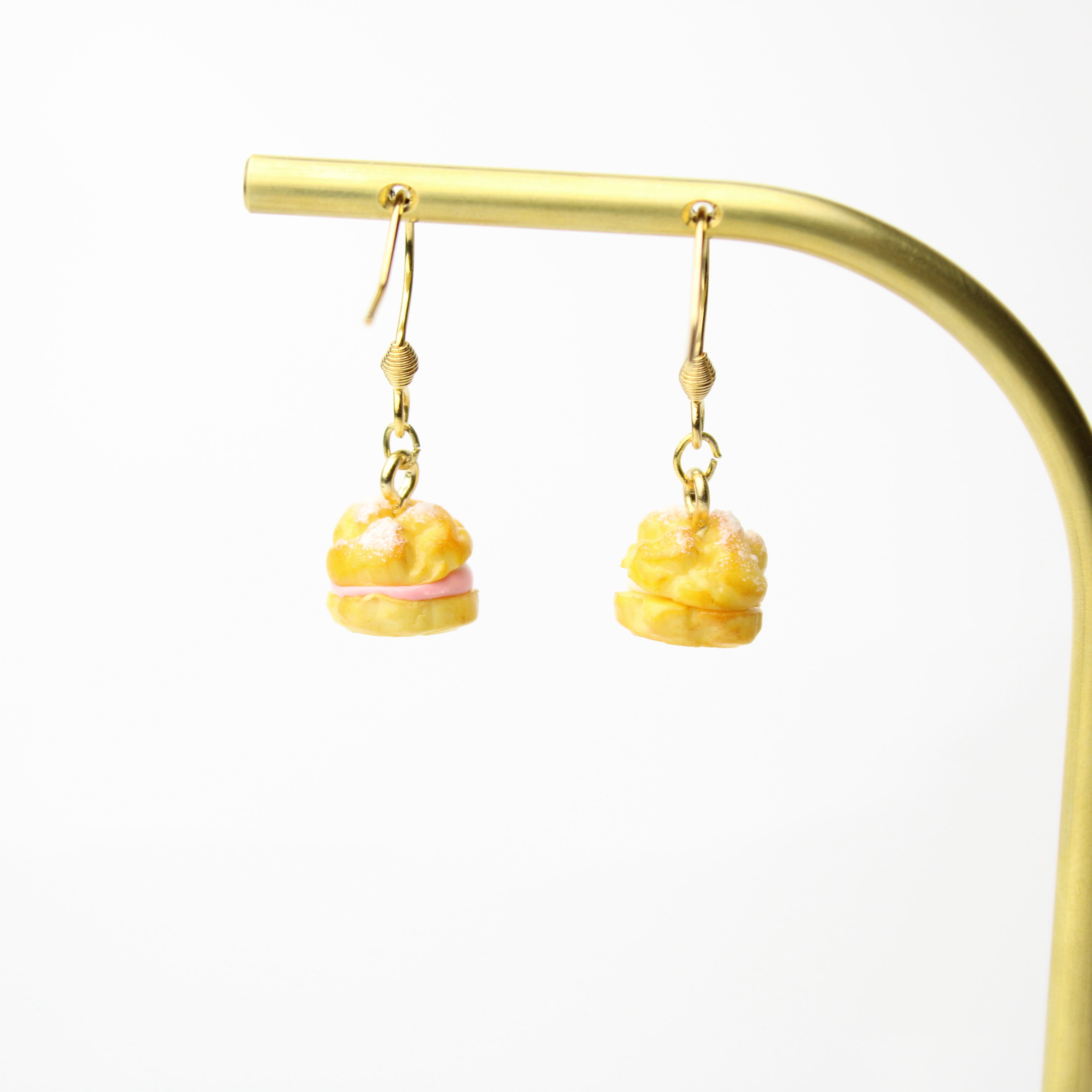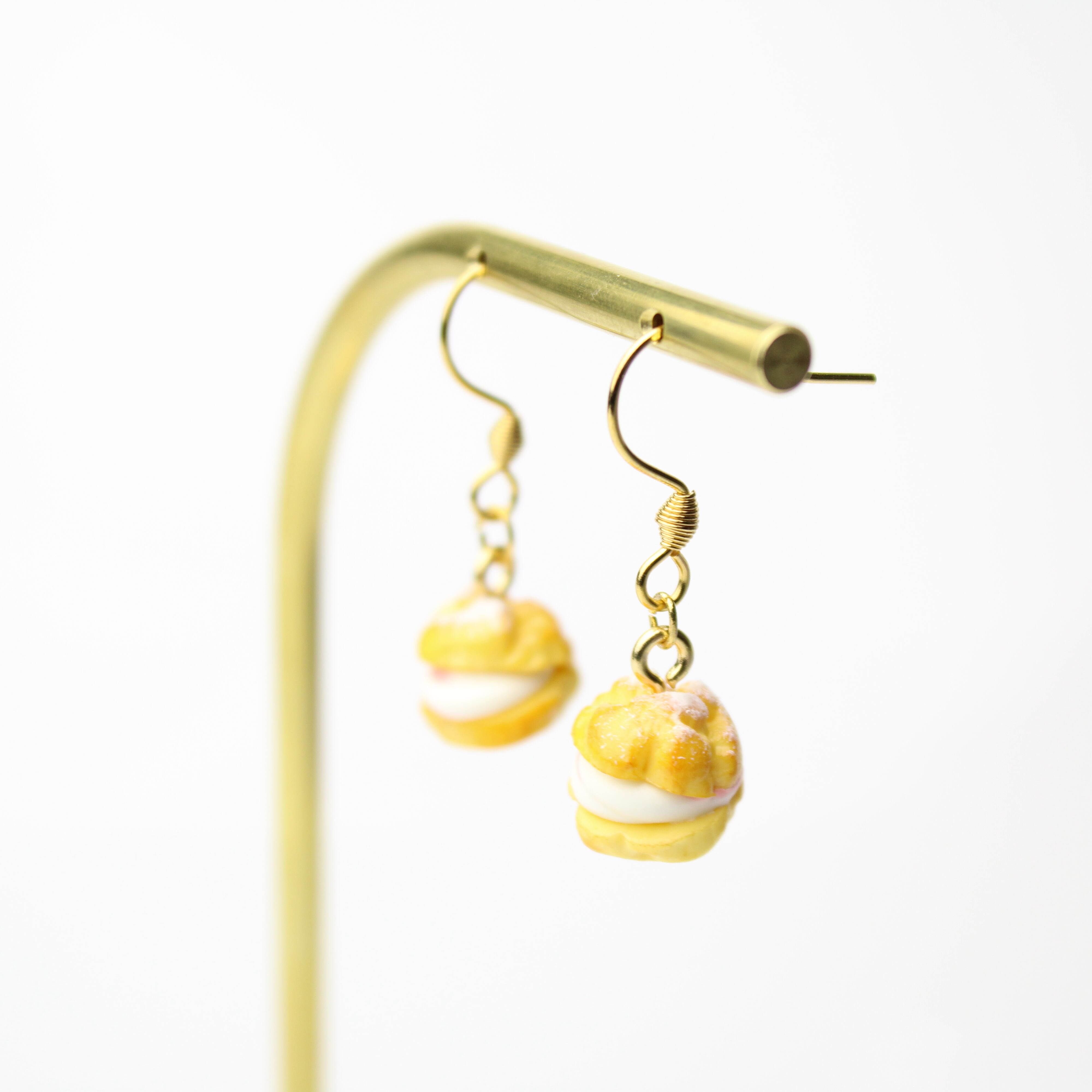 こだわりの 苺ホイップ シュークリーム( ピアス イヤリング/チャーム/キーホルダー )ミニチュア スイーツ ハンドメイド作品