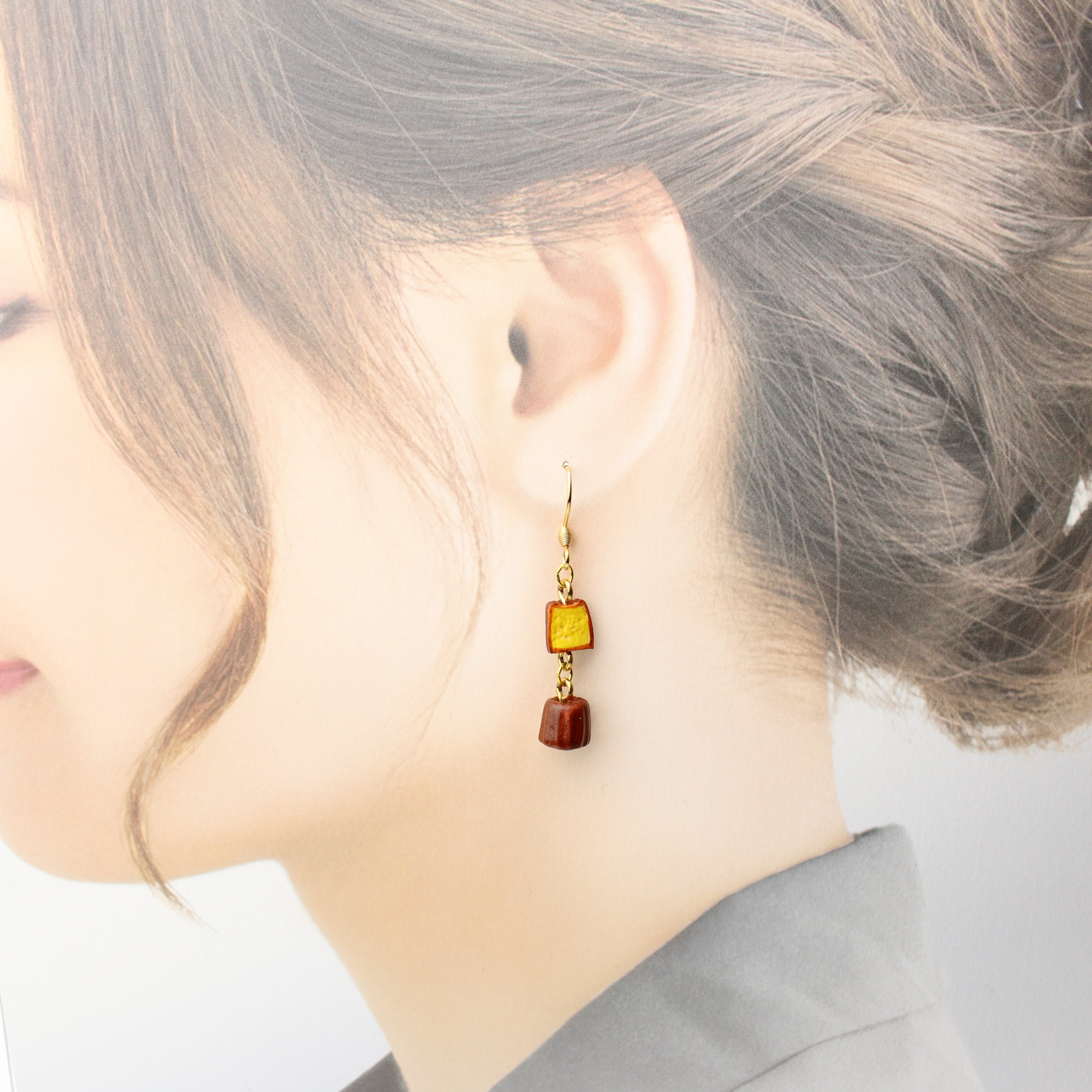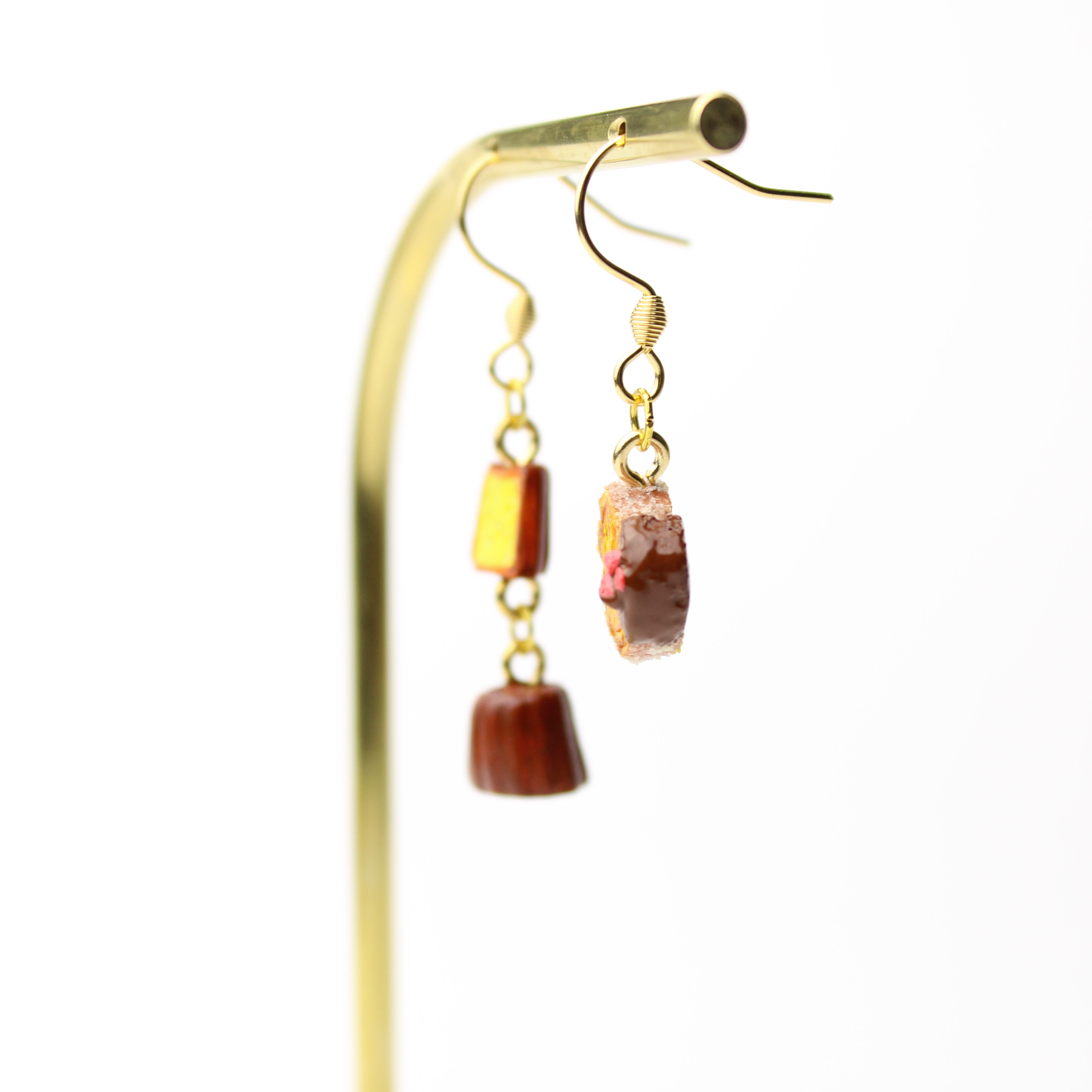 こだわりの ミニチュア カヌレ パルミエ (ピアス / イヤリング) 揺れる ミニチュア 贅沢スイーツセットシリーズ2025