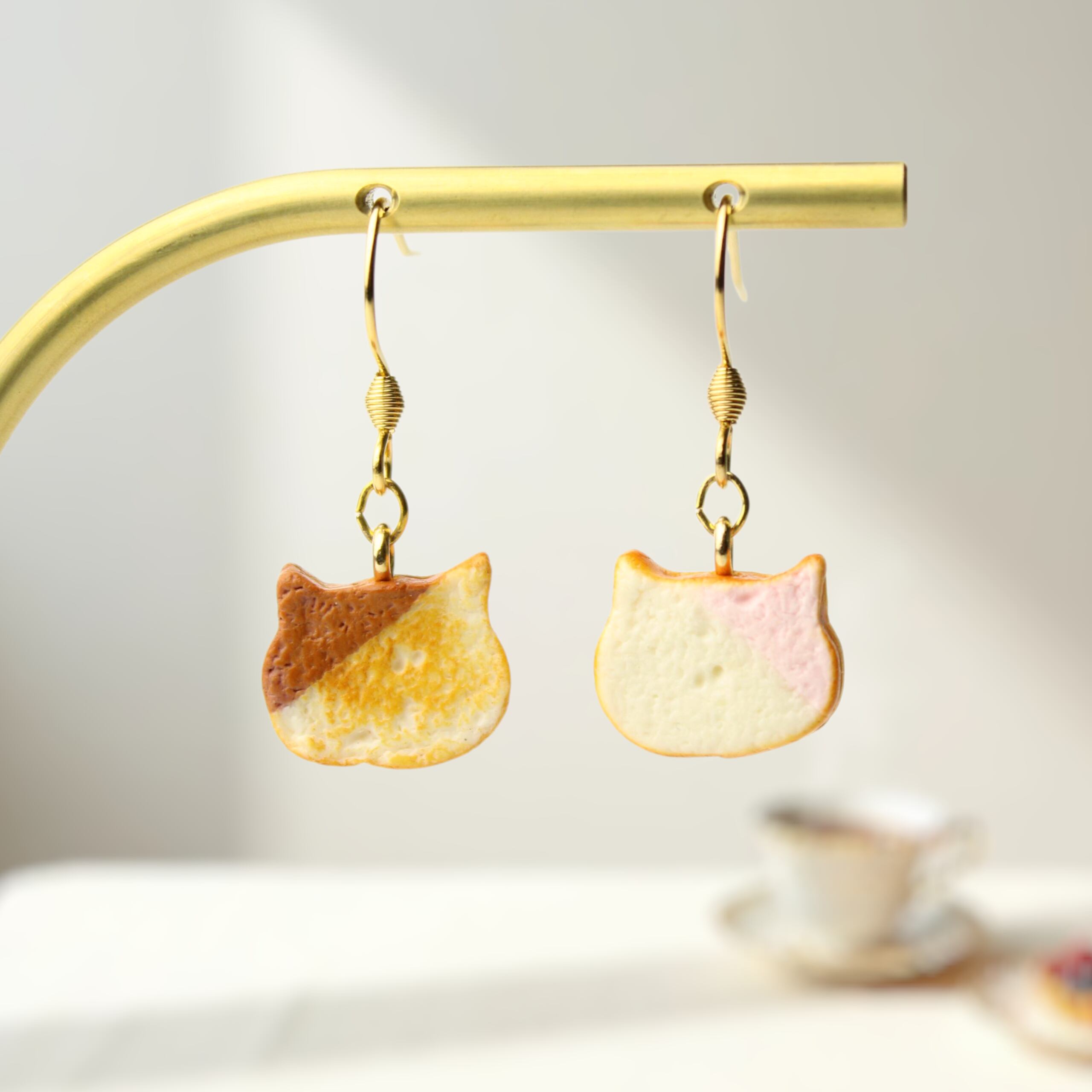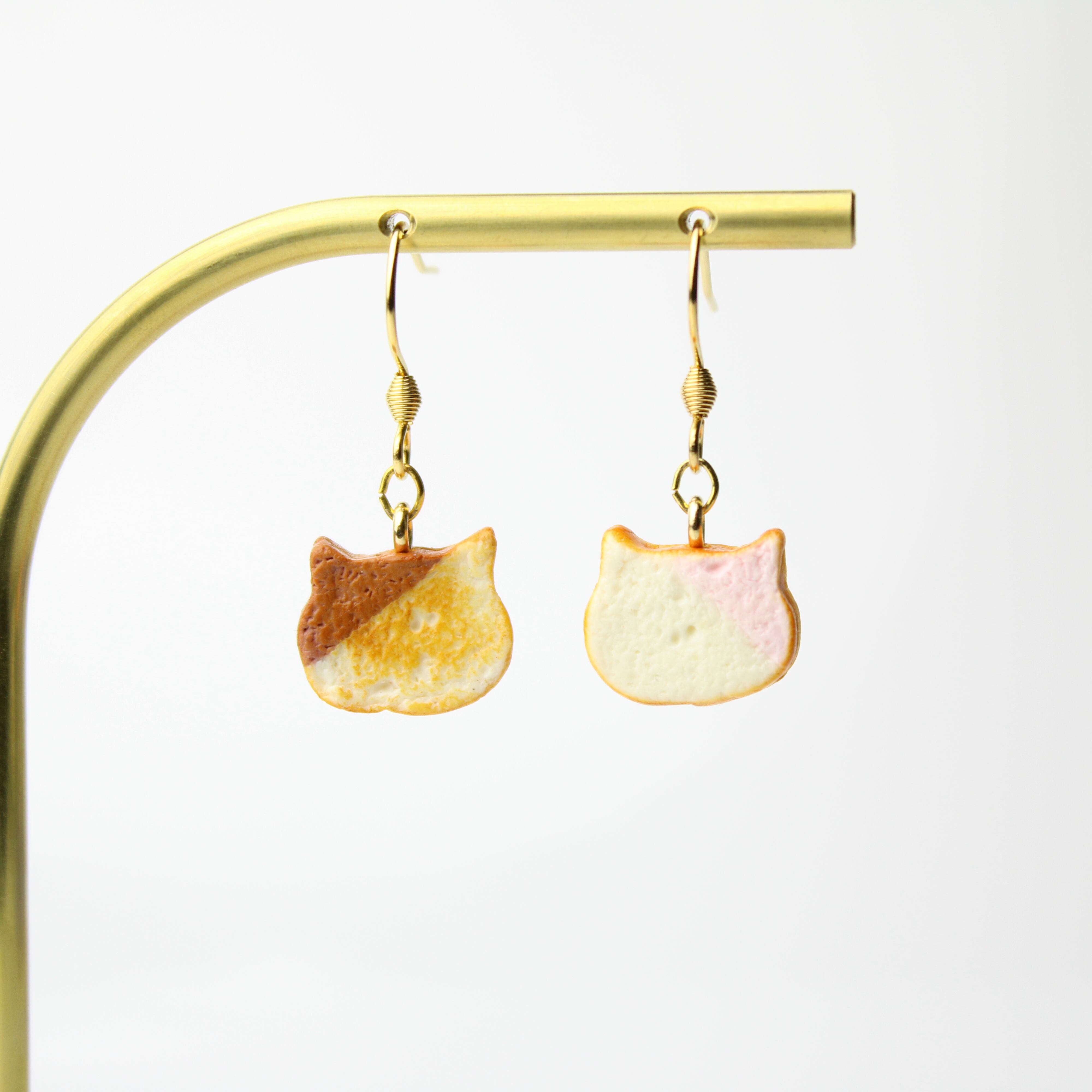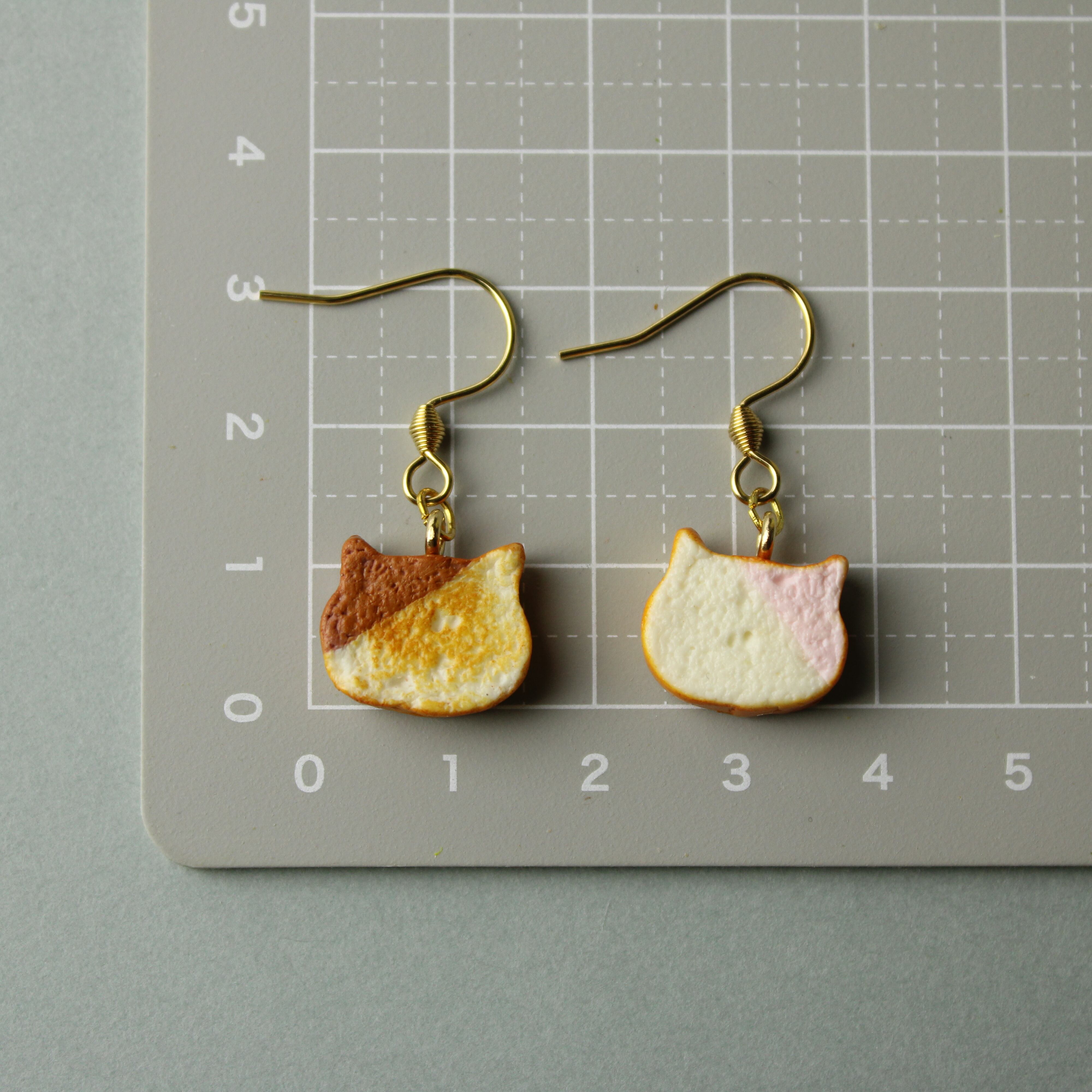 こだわりの ミニチュア ねこ 食パン(ピアス / イヤリング) 揺れる ミニチュア 猫 パン ハンドメイド作品