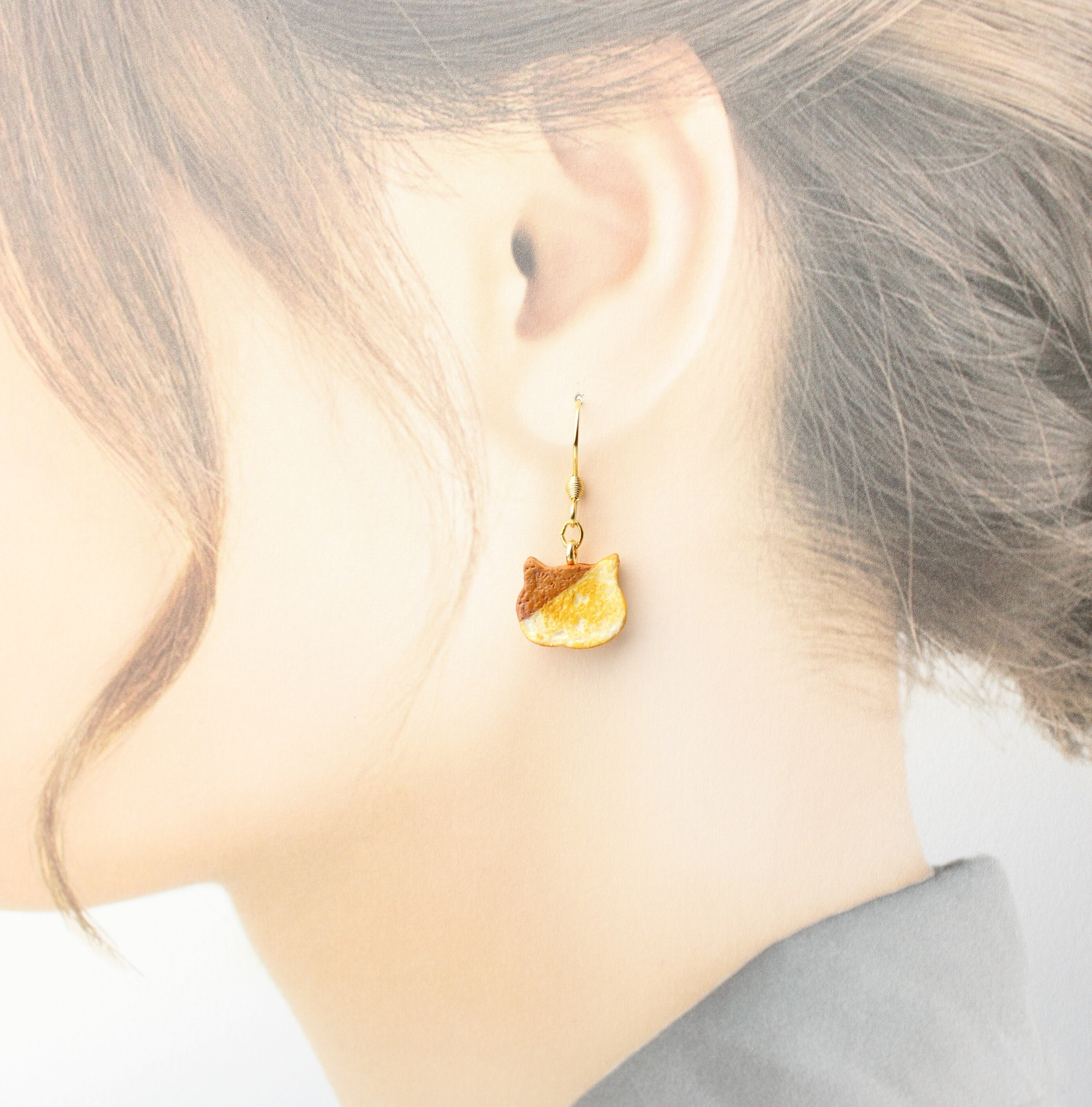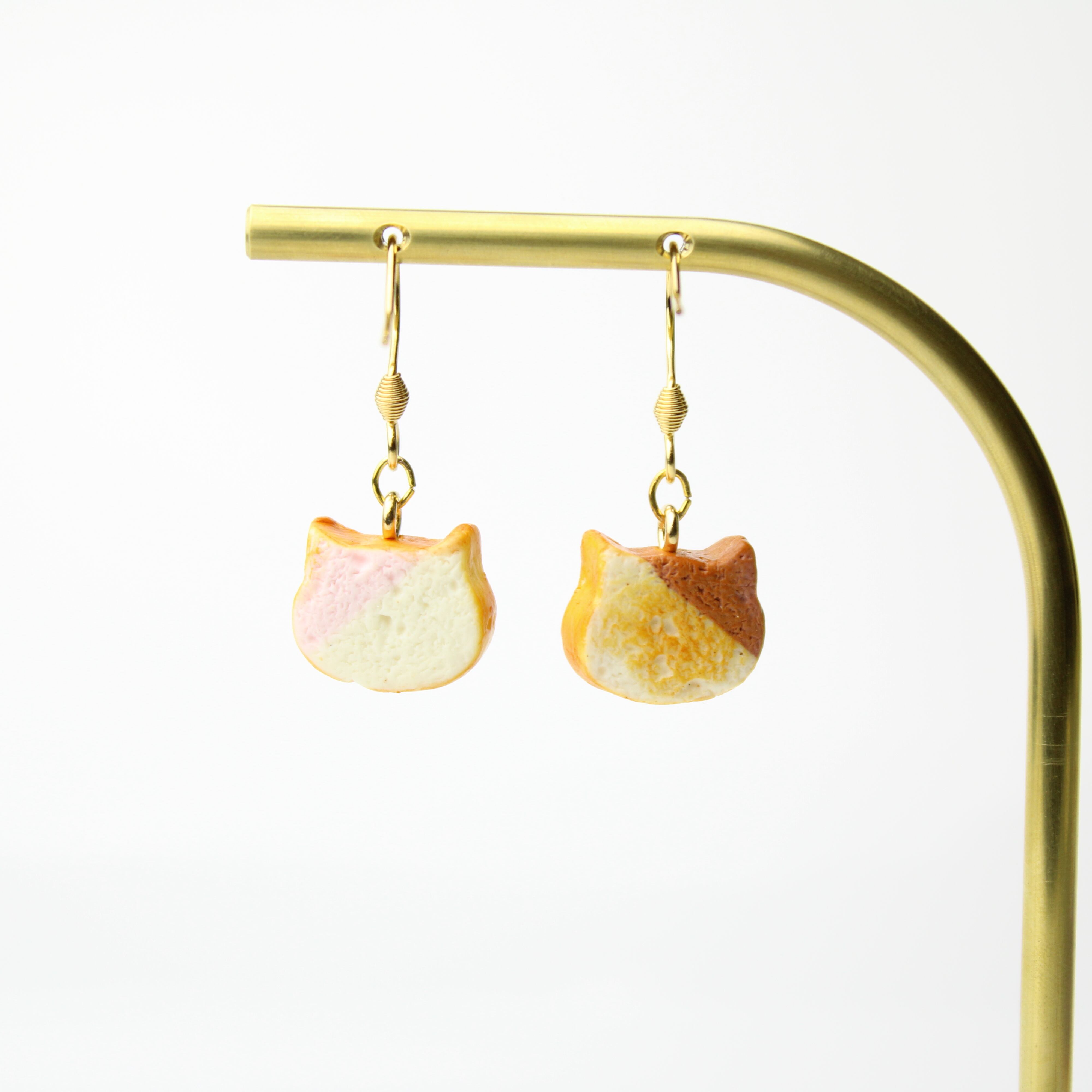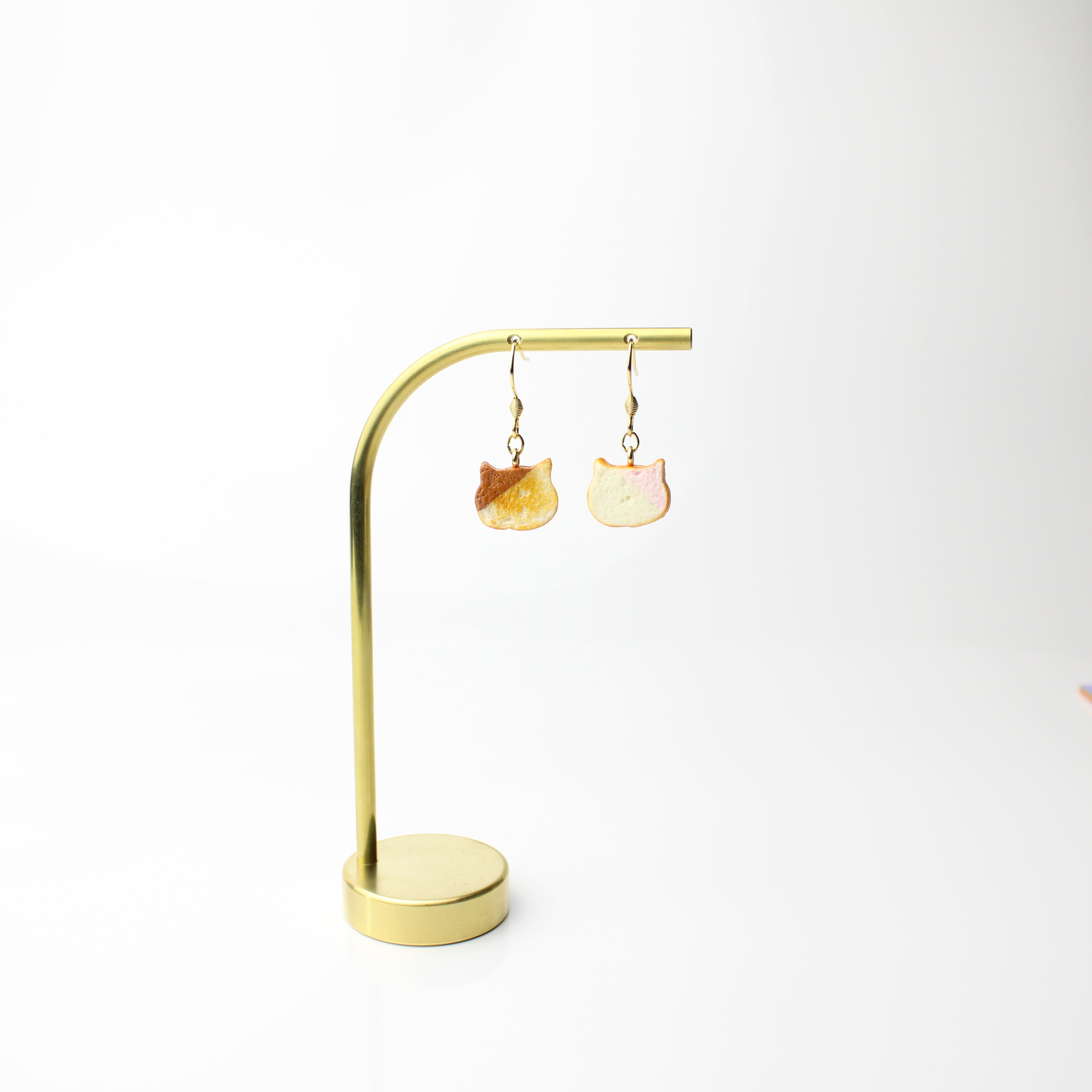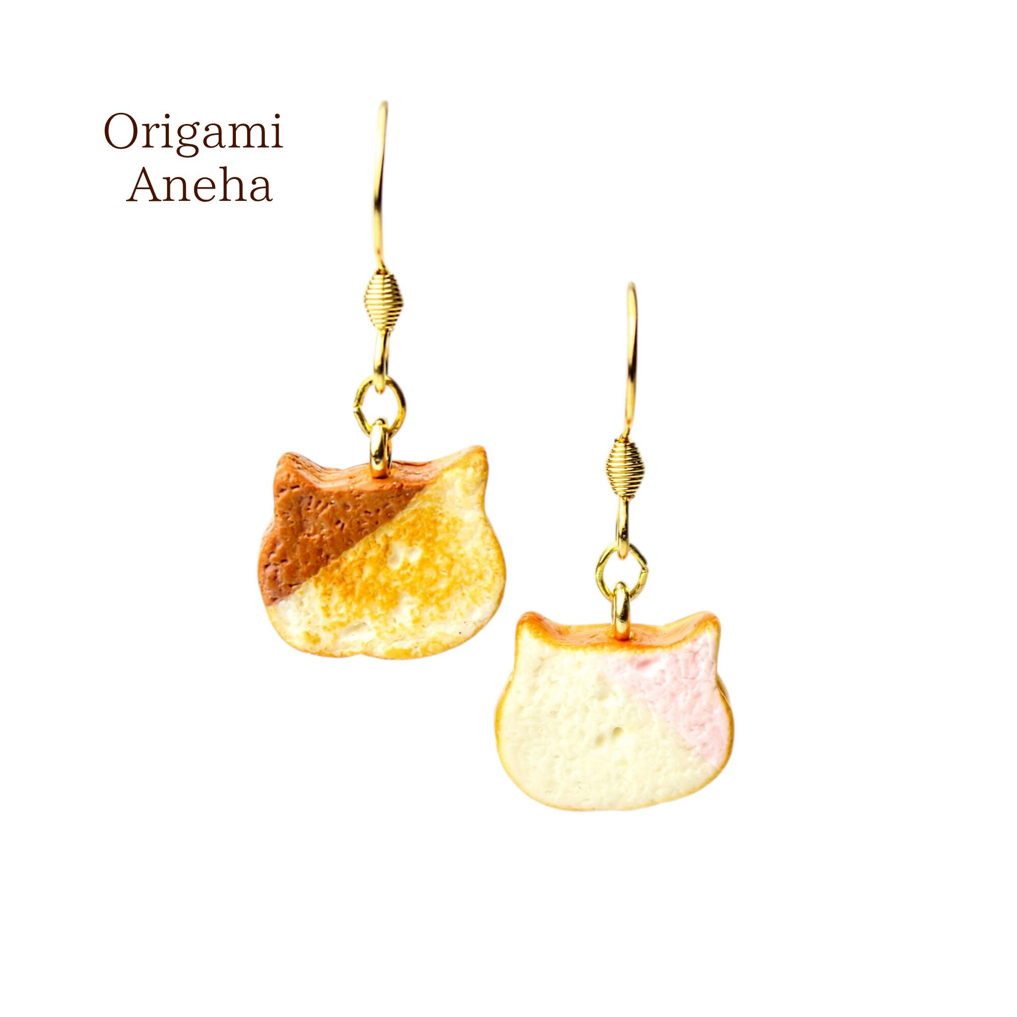 こだわりの ミニチュア ねこ 食パン(ピアス / イヤリング) 揺れる ミニチュア 猫 パン ハンドメイド作品