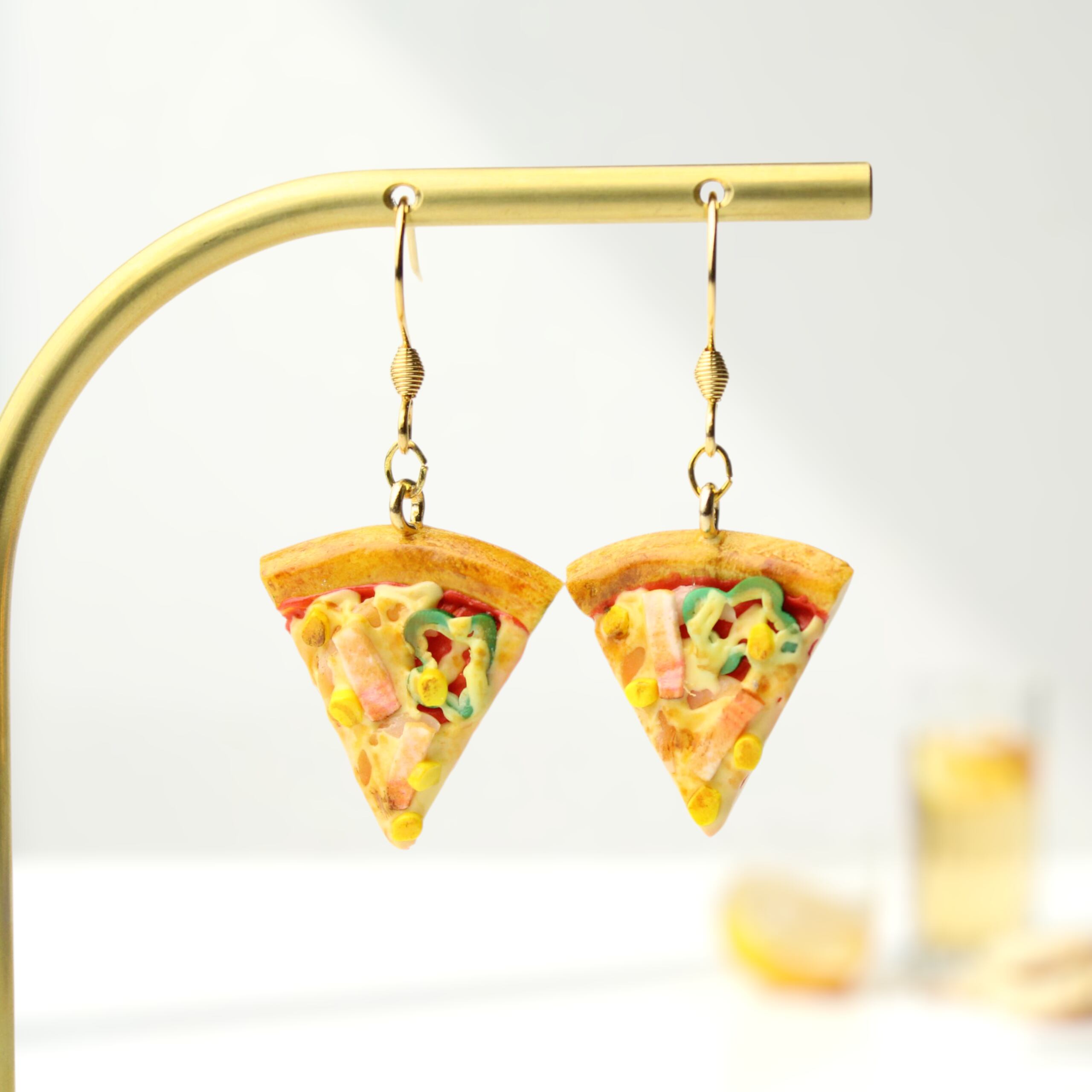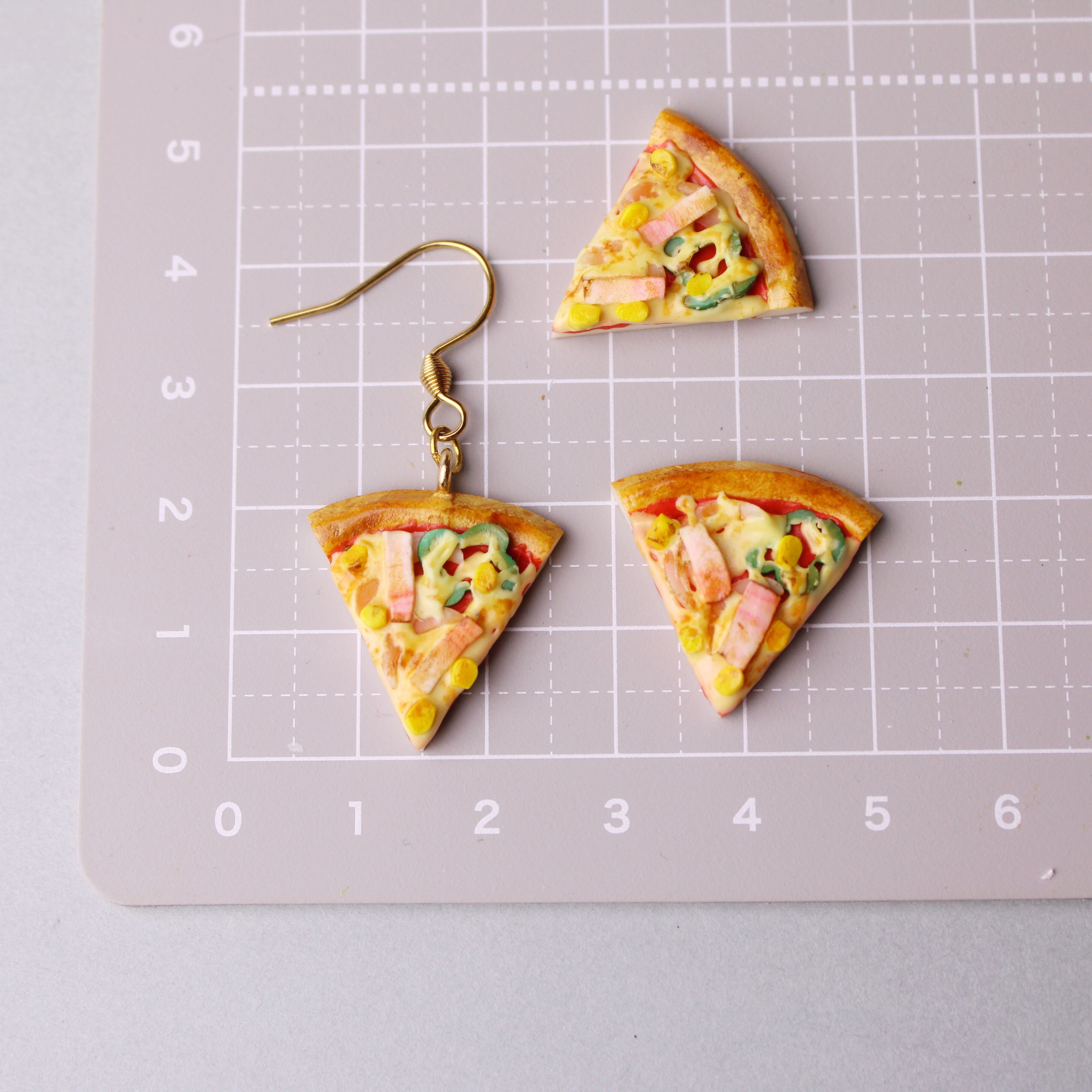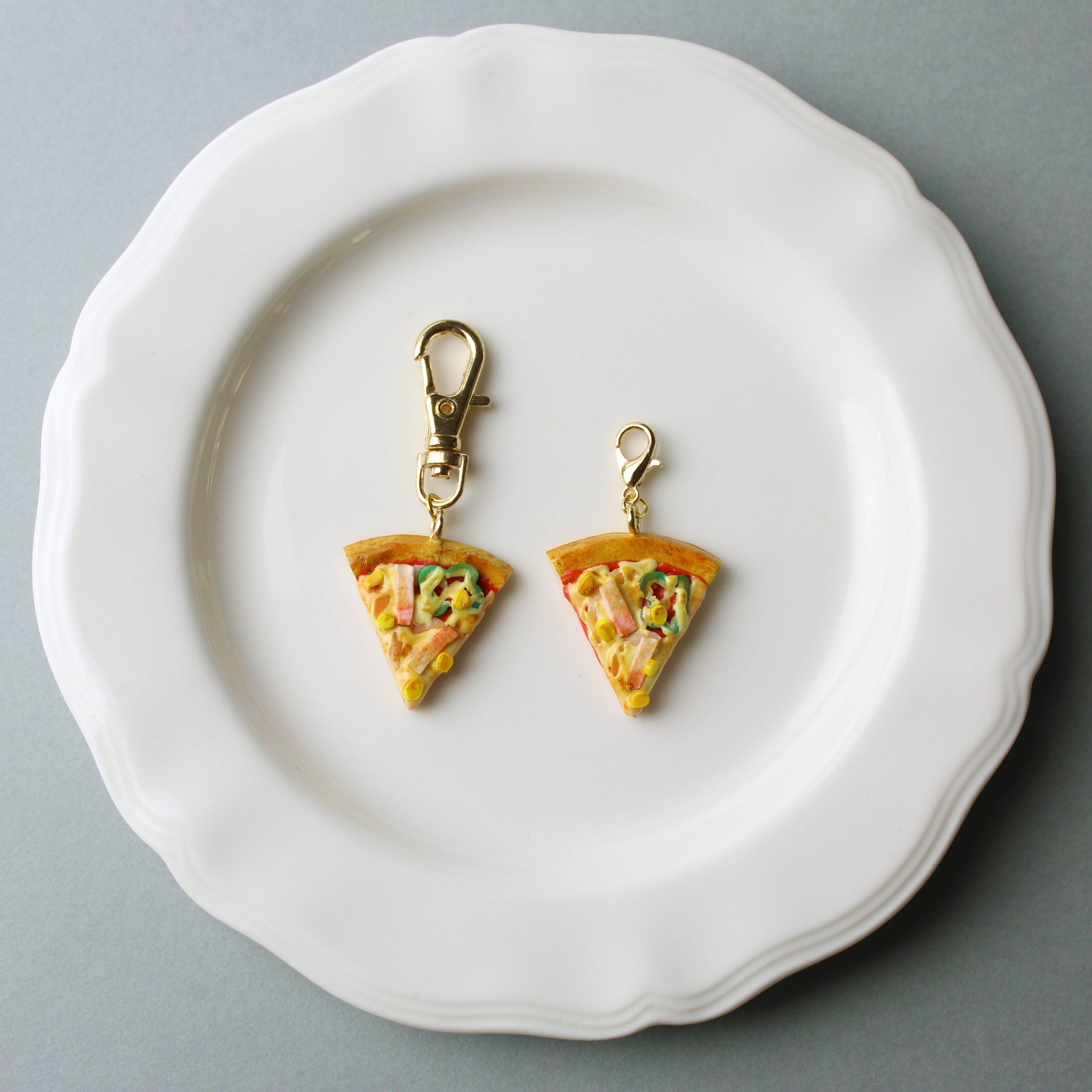 こだわりの ピザ ( ピアス/イヤリング/チャーム/キーホルダー )ミニチュア フェイクフード ハンドメイド作品