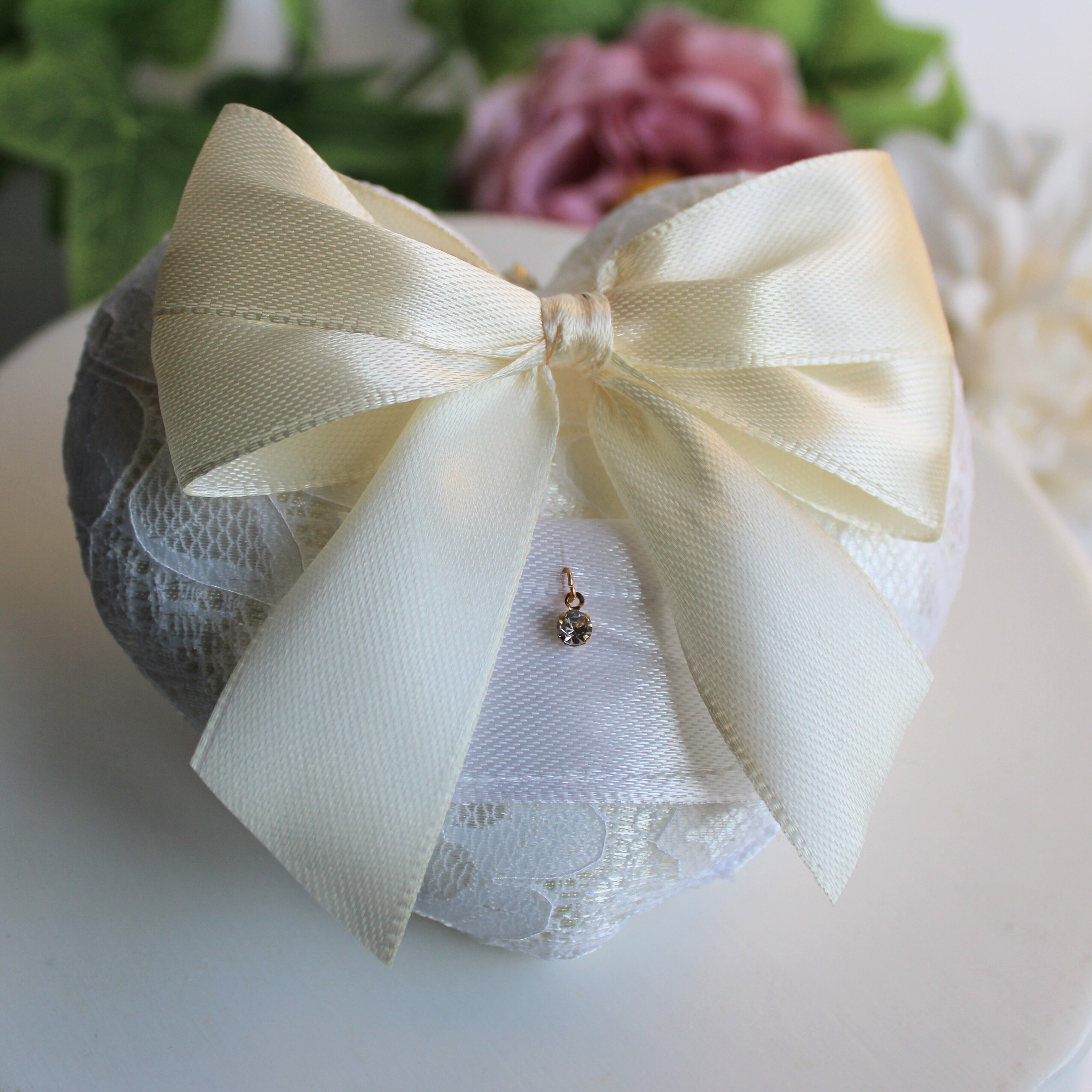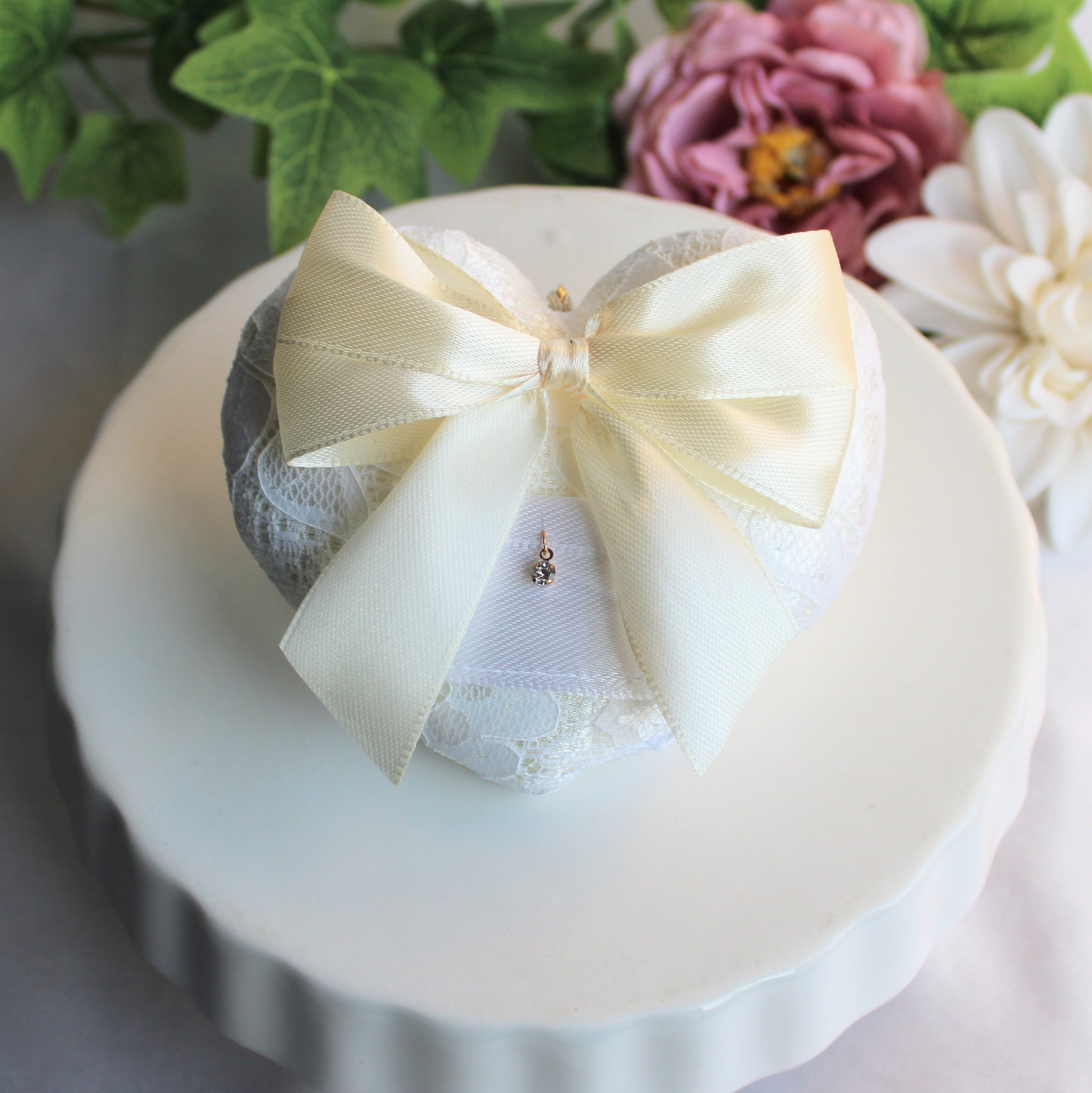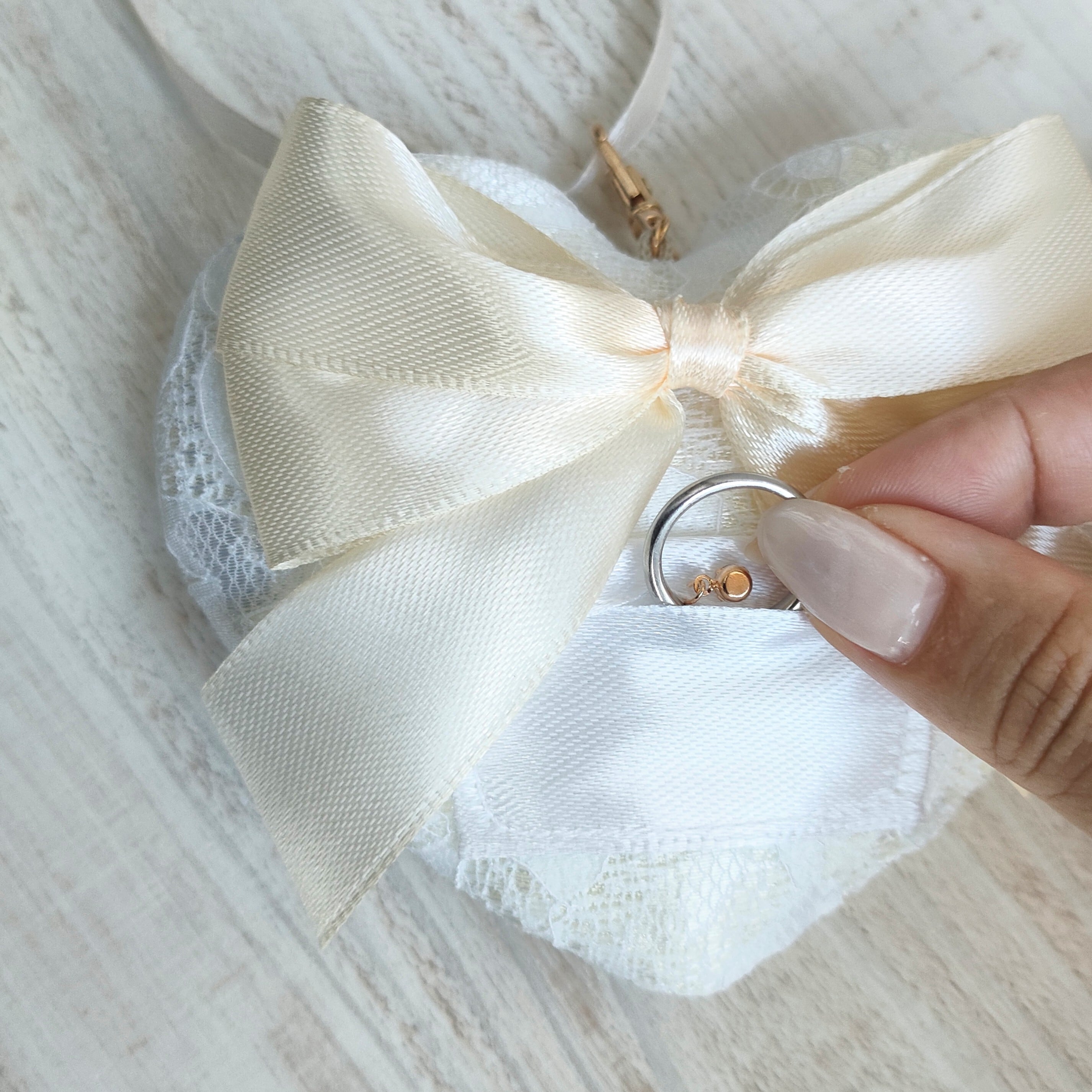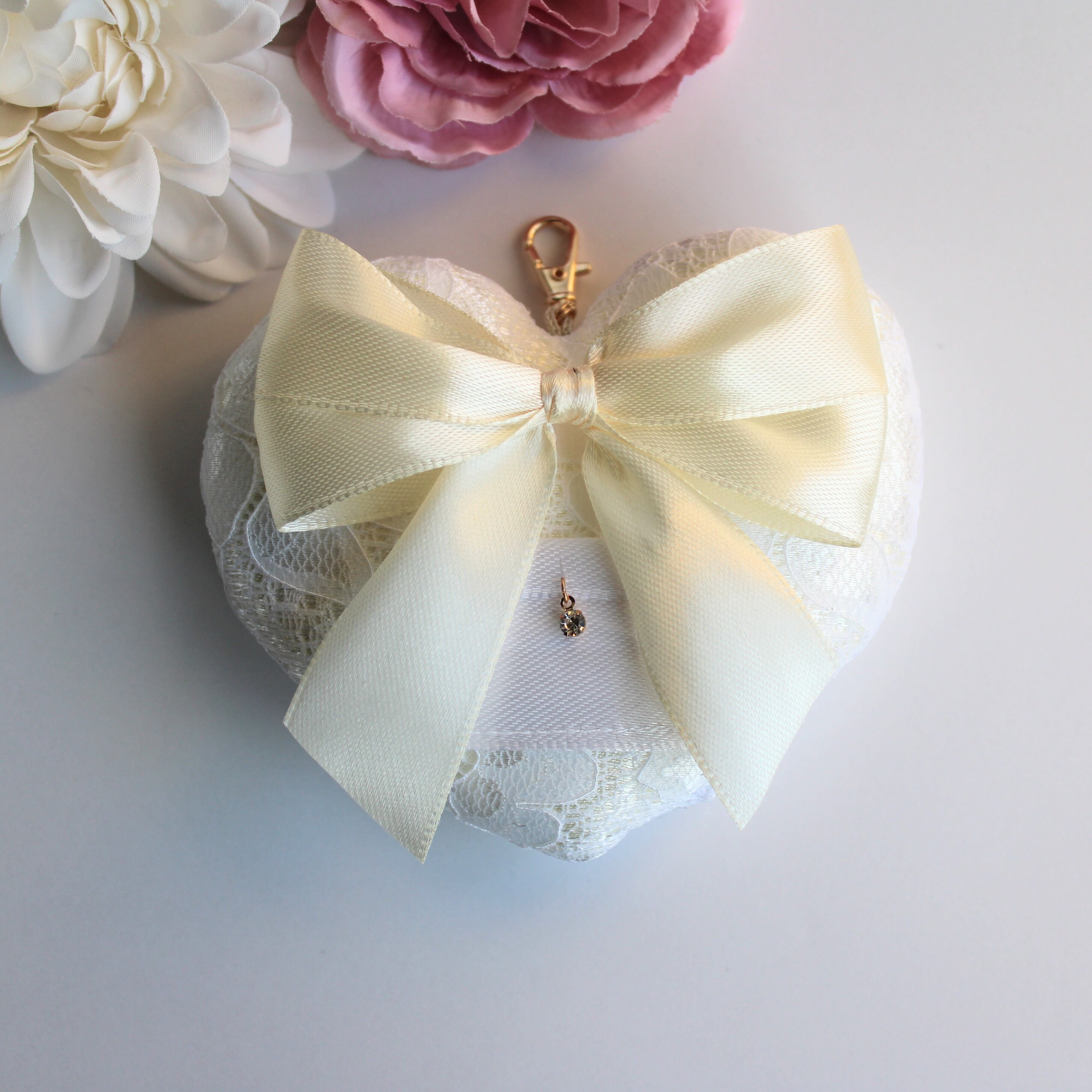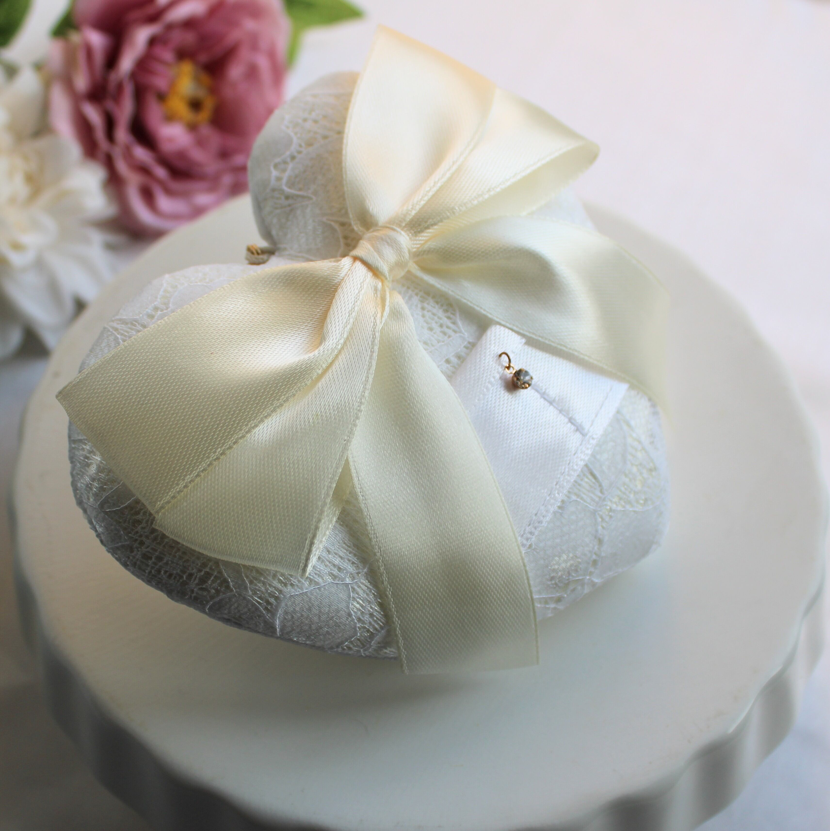 リボン リングピロー ホワイト シンプル 上品 花柄 レース クリーム色 結婚式 指輪 ウェディング 新品 リングドッグ 犬 ハート 結婚 挙式 犬 いぬ 小型犬