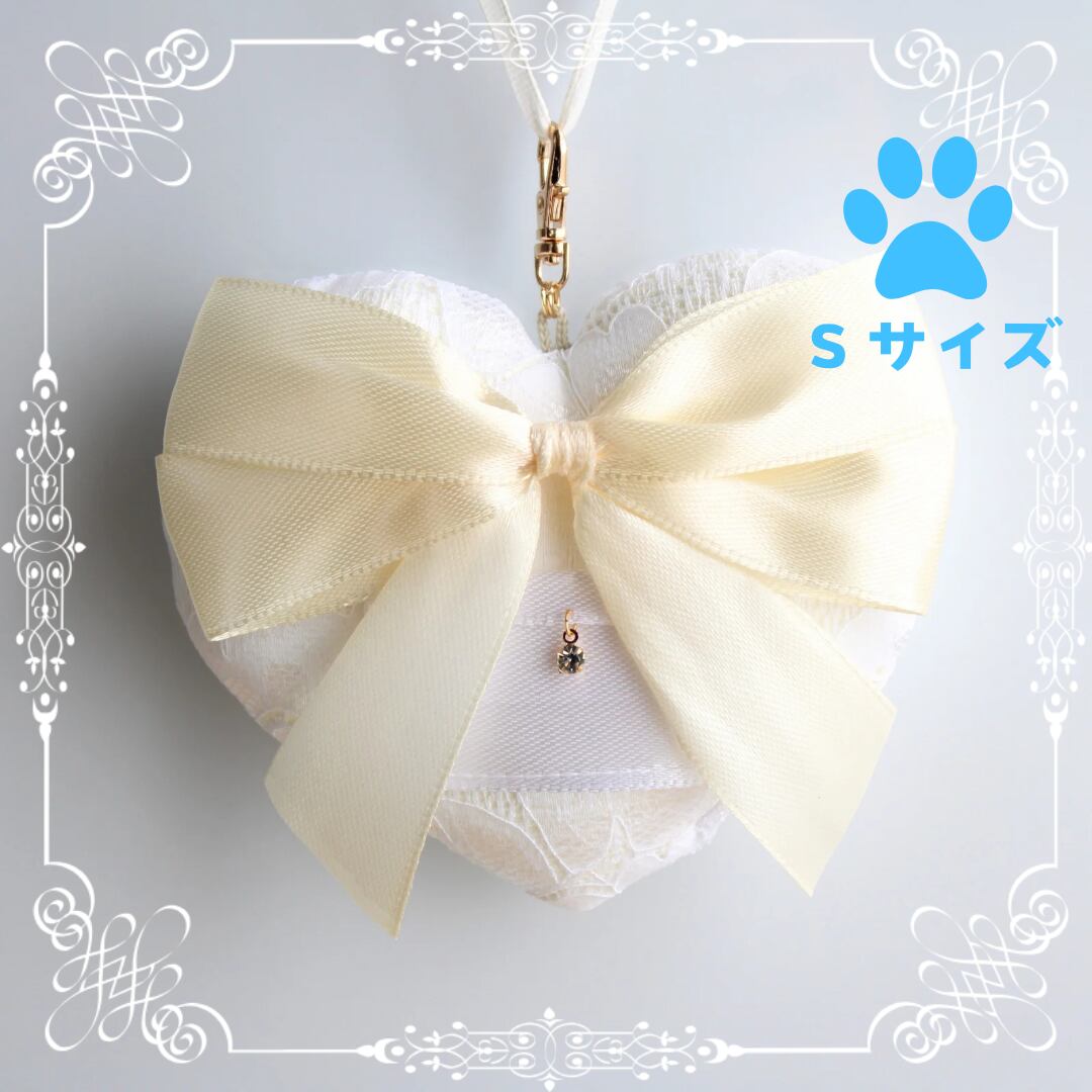 【小型犬】リングドッグ ✨Sサイズ ✨ネックレスタイプ リングピロー 犬 ホワイト レース生地花柄 ウェディング ブライダル 結婚式