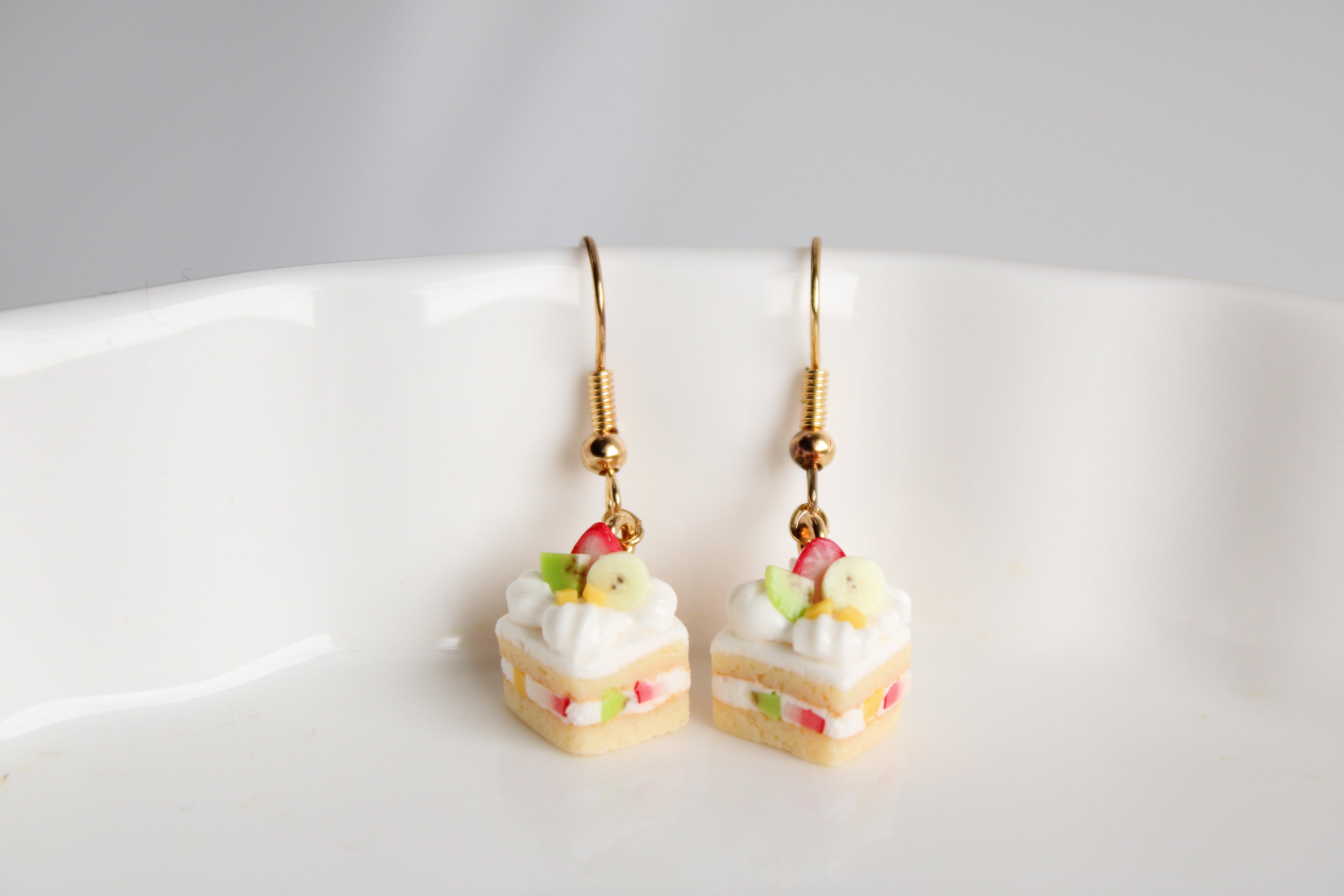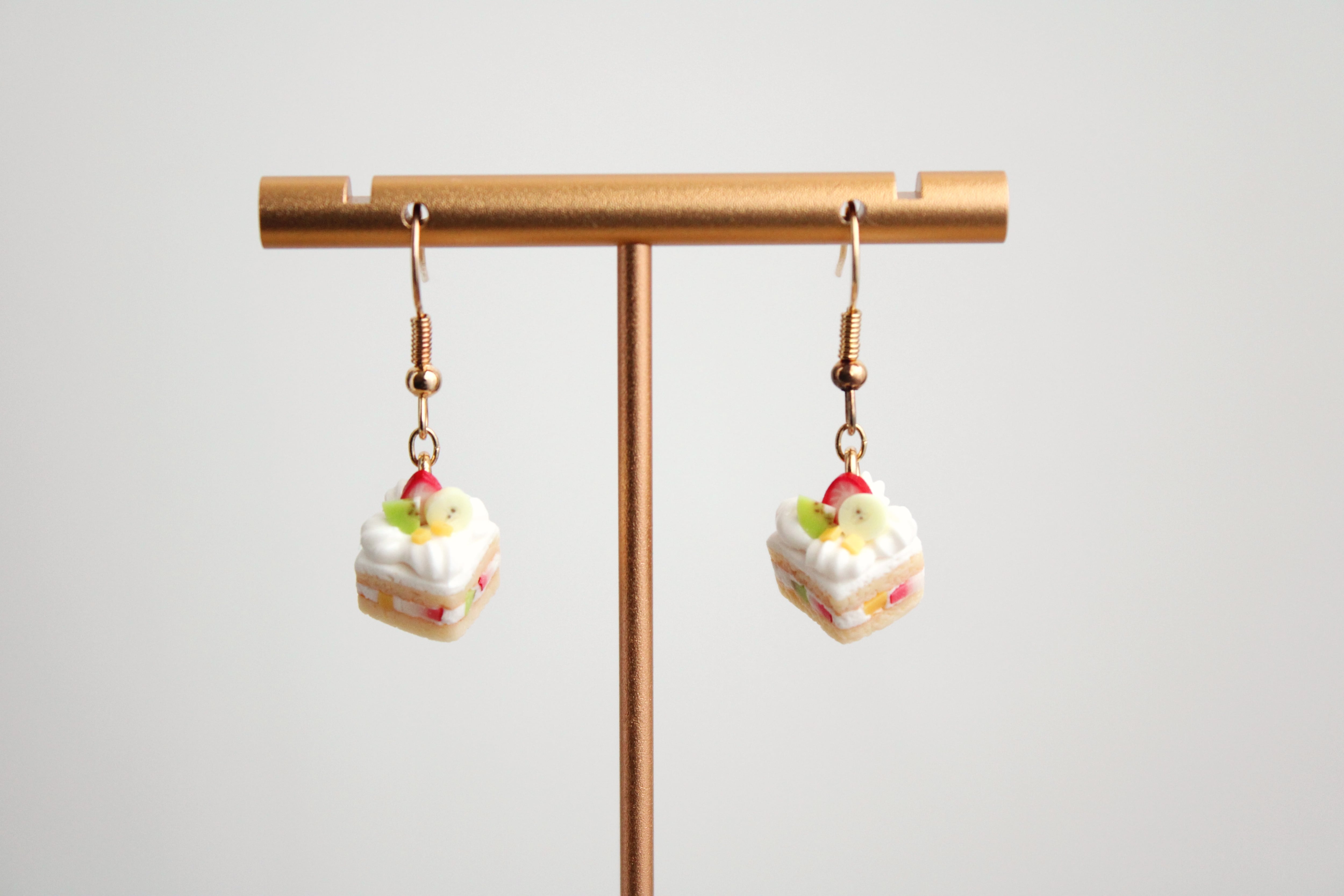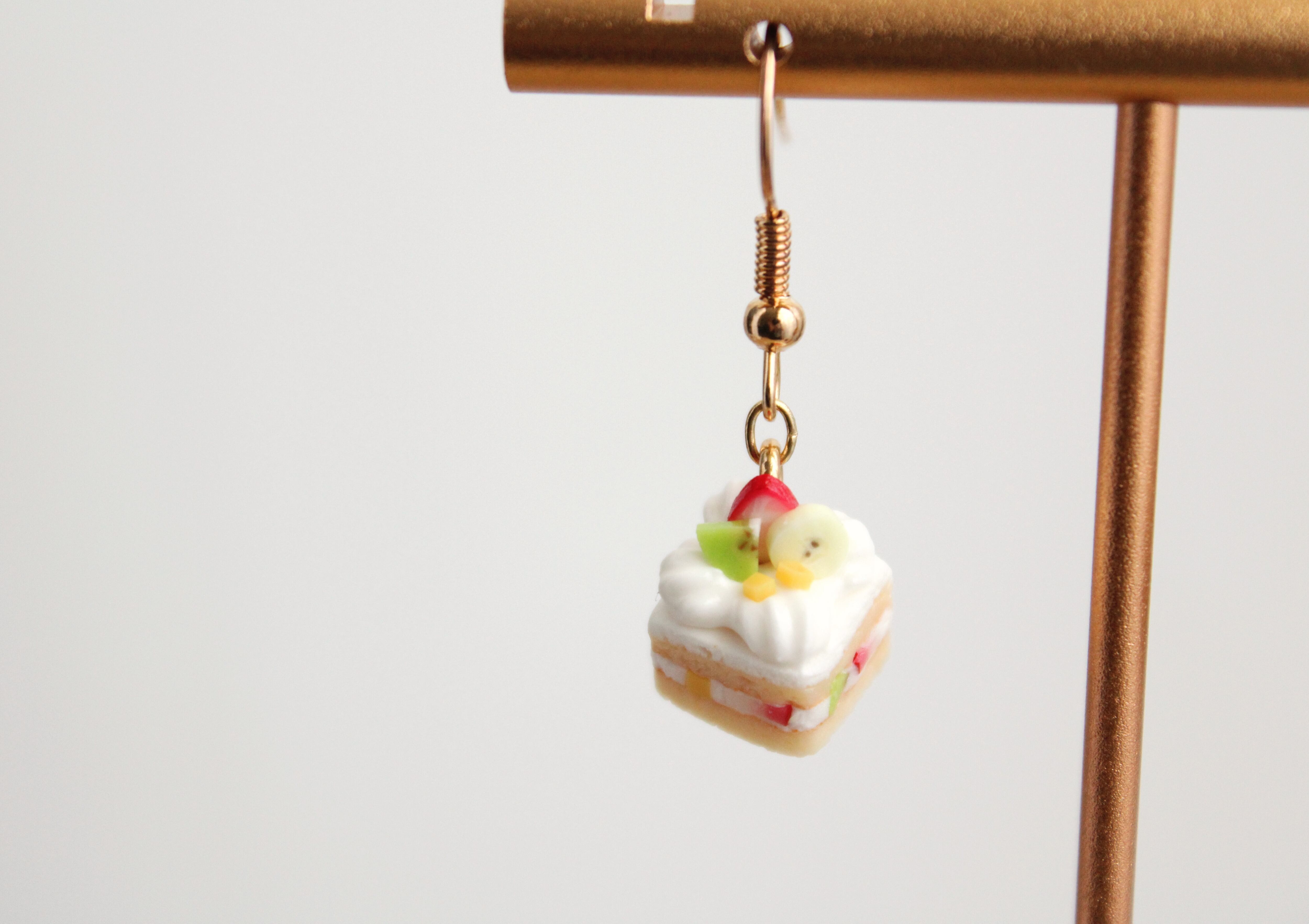 フルーツケーキ (ピアス / イヤリング/チャーム/ストラップ/キーホルダー) 苺、バナナ、キウイ、マンゴー 食べ物モチーフ 揺れる ミニチュア アクセサリー
