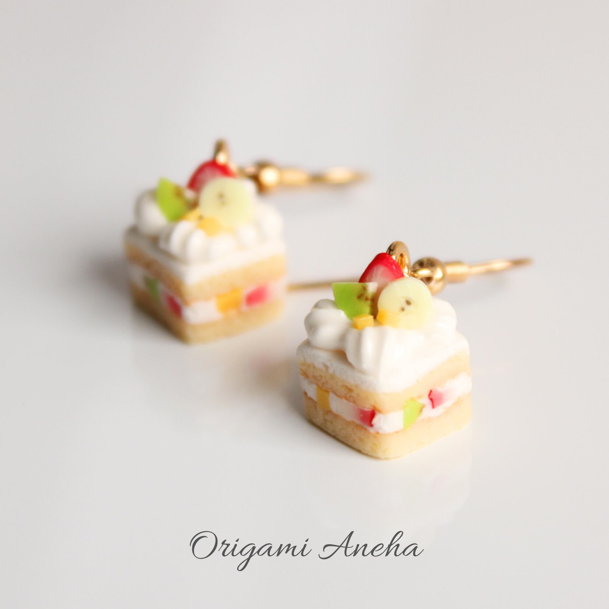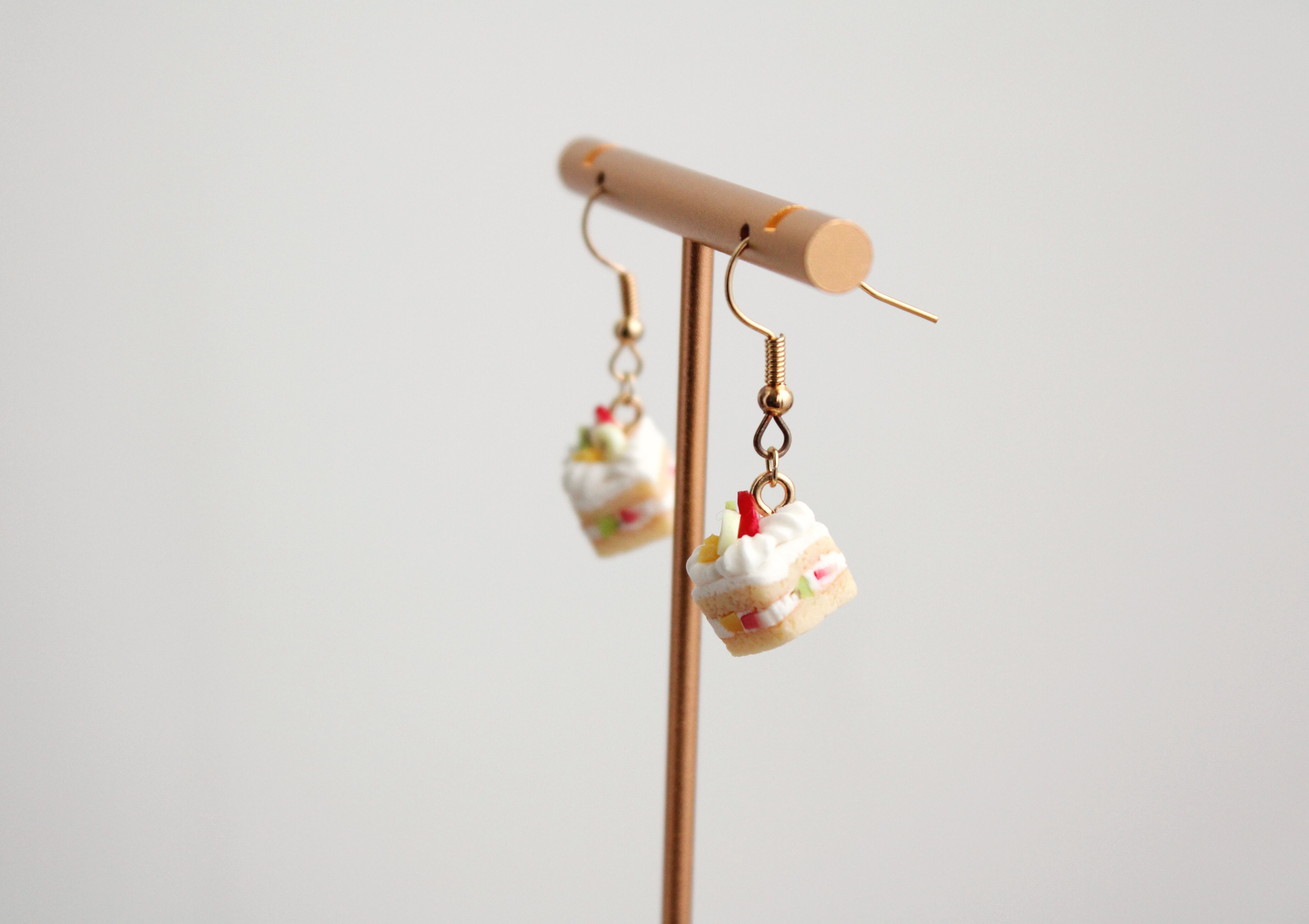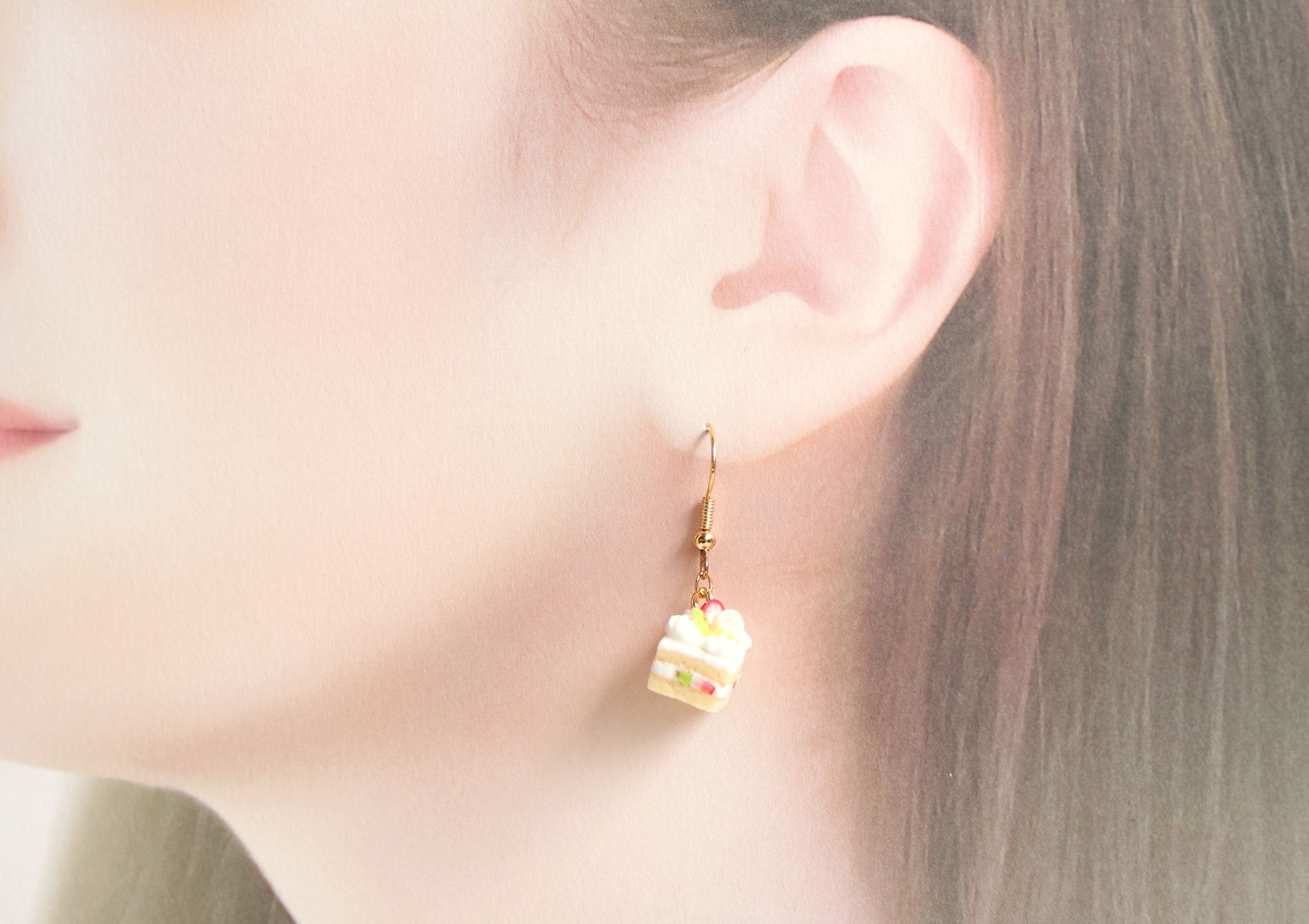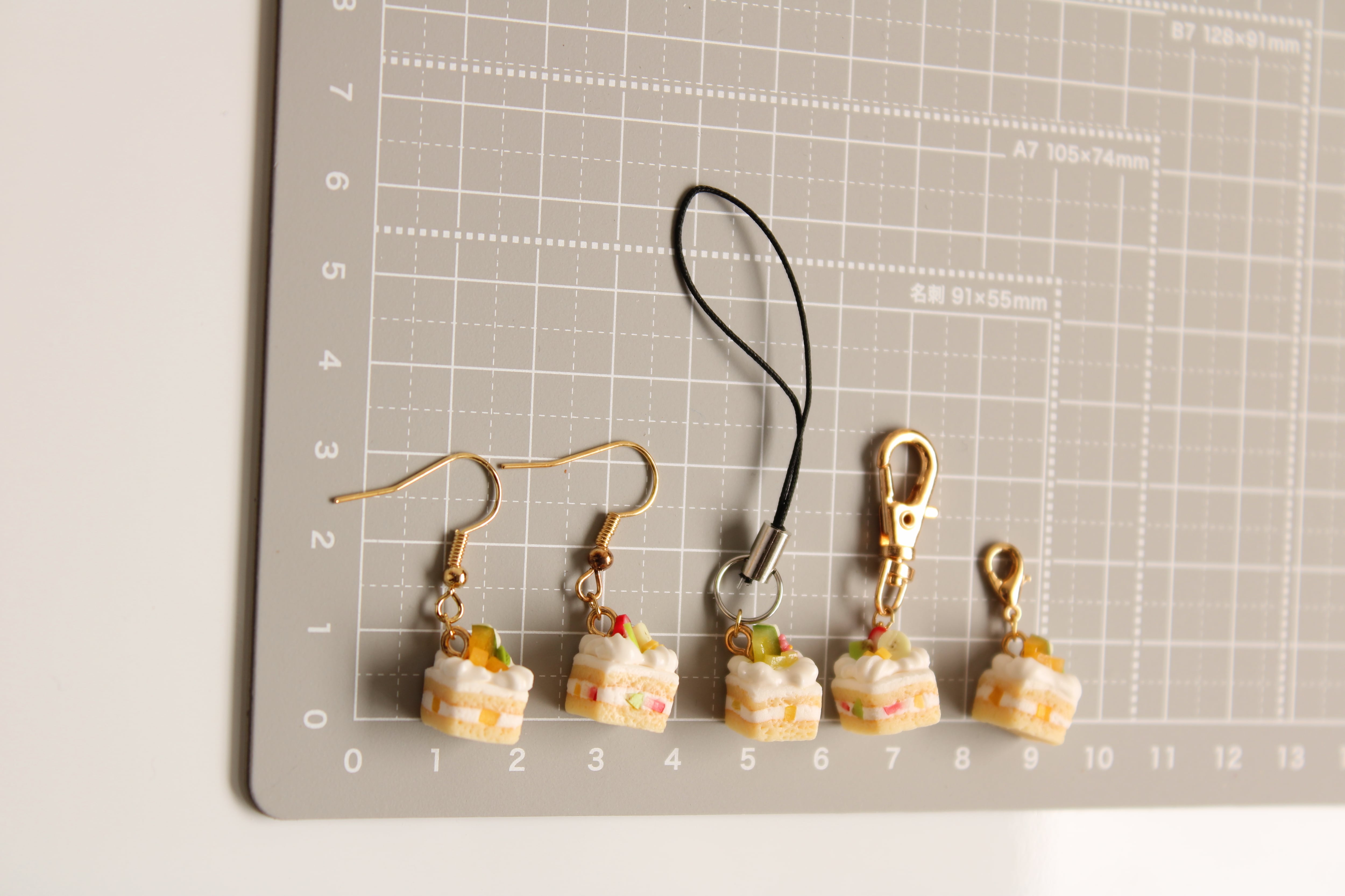 フルーツケーキ (ピアス / イヤリング/チャーム/ストラップ/キーホルダー) 苺、バナナ、キウイ、マンゴー 食べ物モチーフ 揺れる ミニチュア アクセサリー