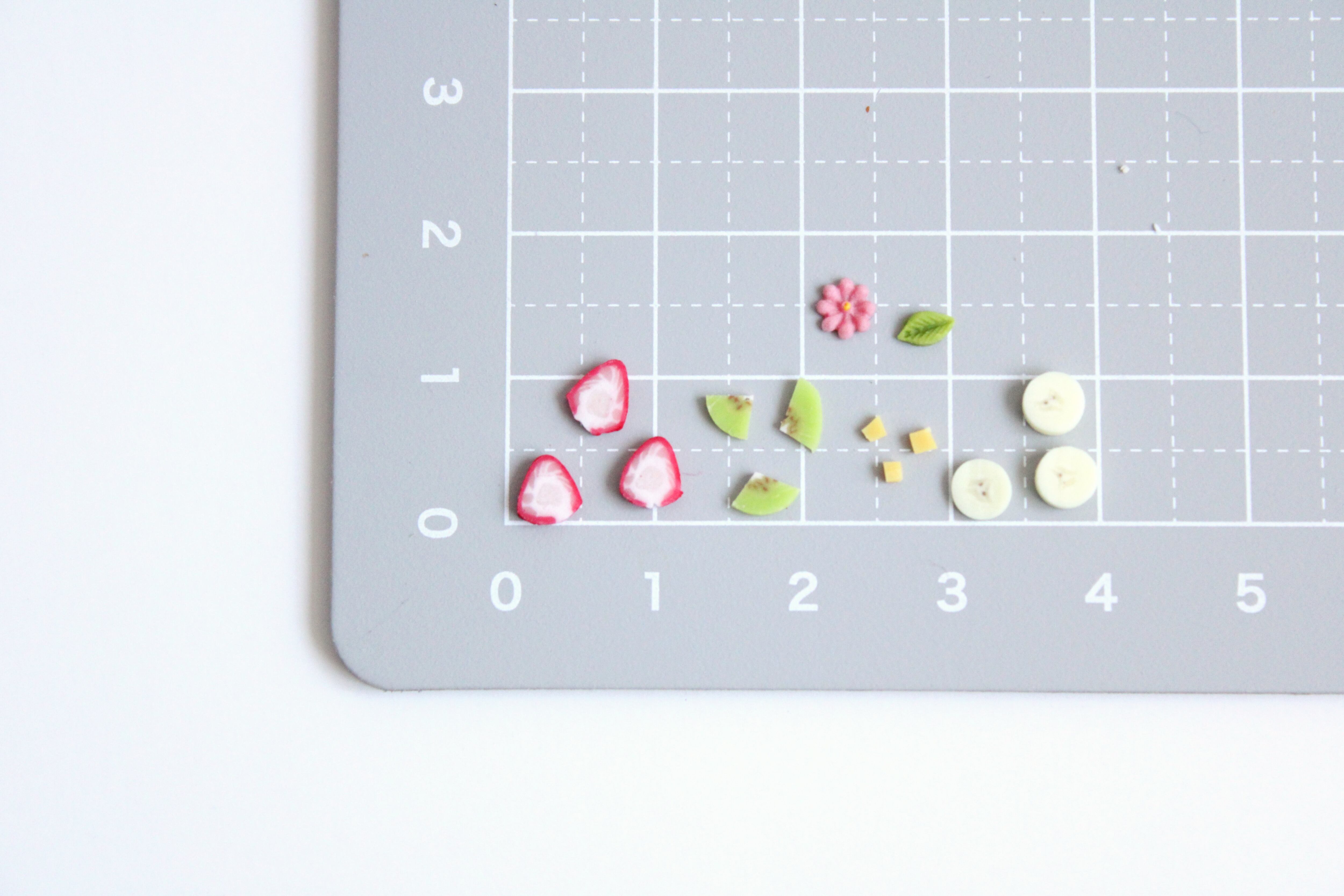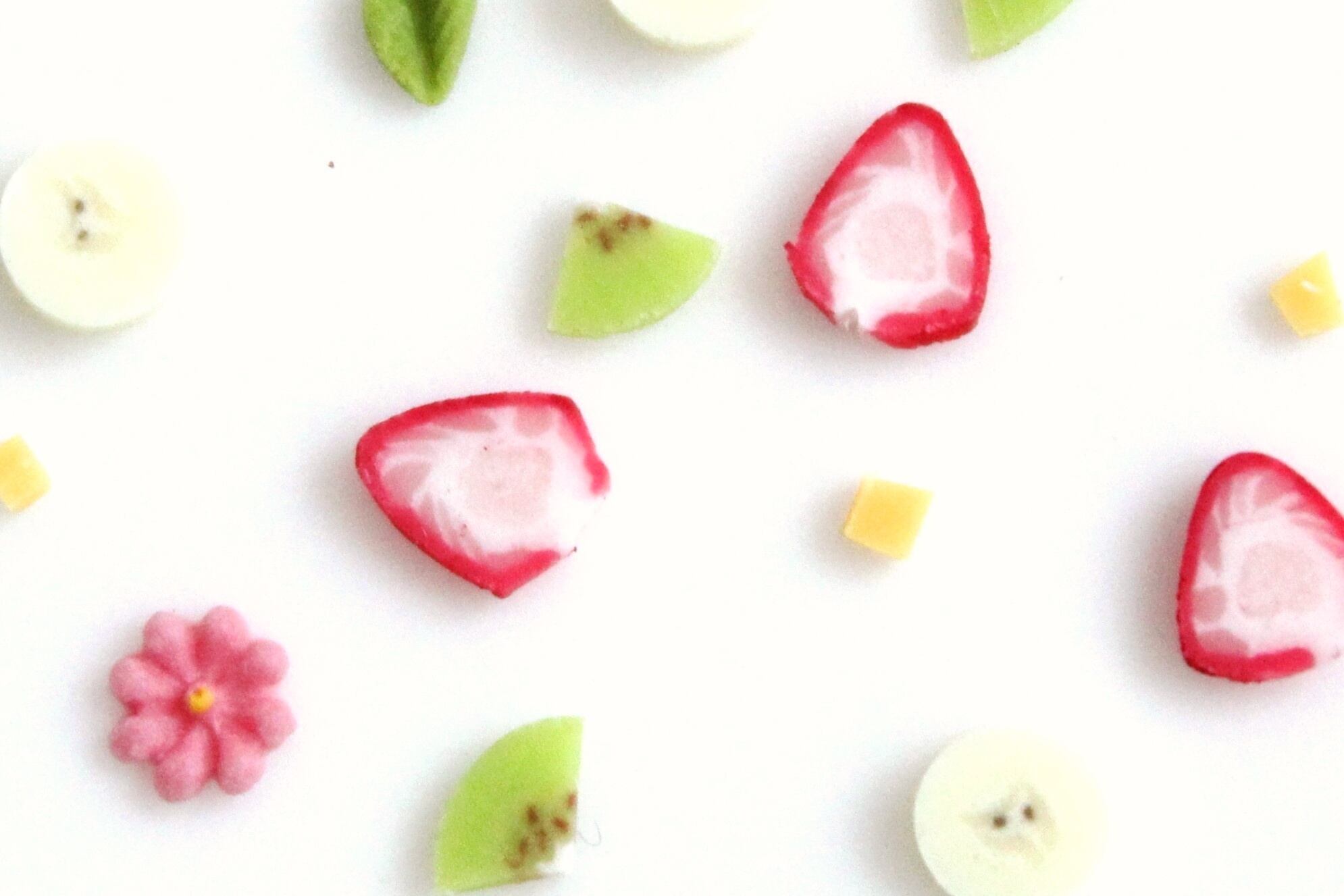 数ミリほどのフルーツを近くで見ると、細部へのこだわりを感じていただけると思います。