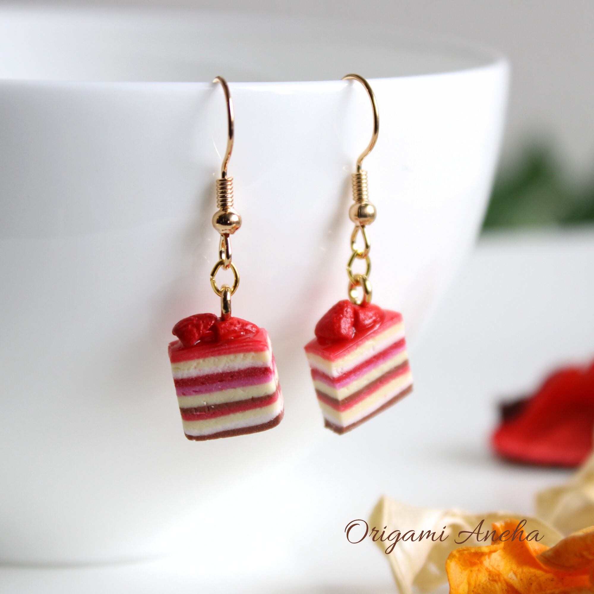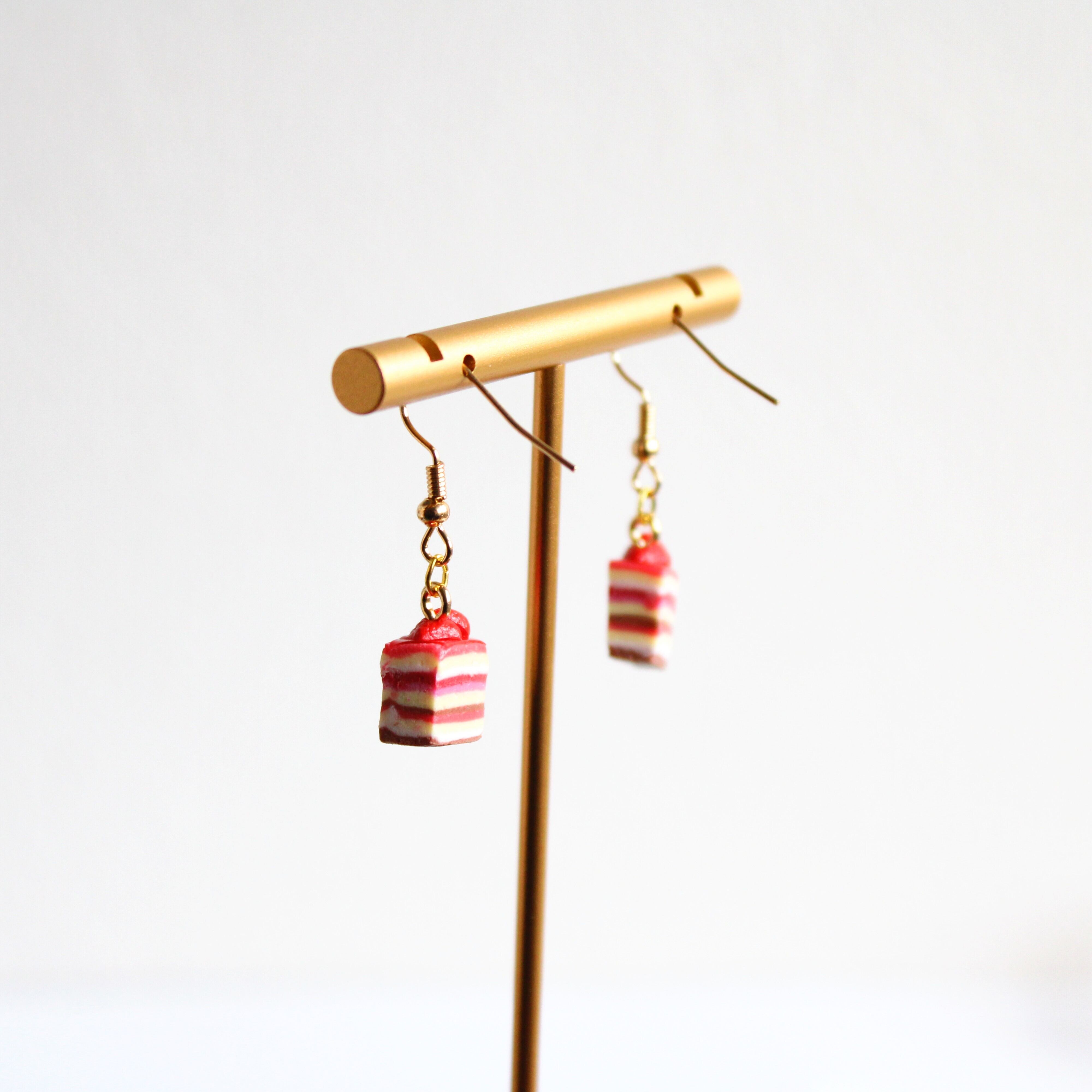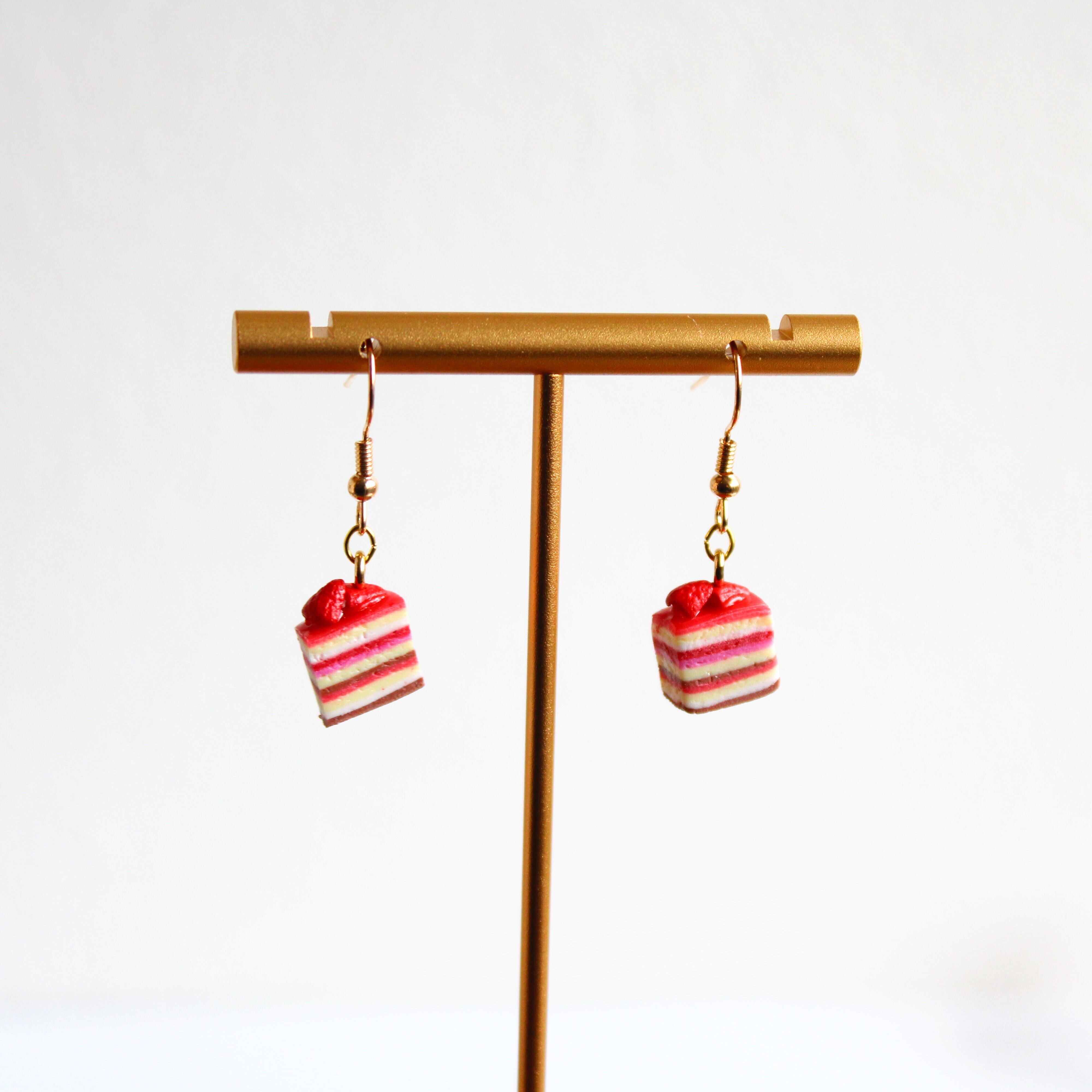 11層の苺ケーキピアス – 目を引く可愛さと甘さを詰め込んだアクセサリー (ピアス / イヤリング/チャーム/ストラップ/キーホルダー) ミニチュア スイーツ フェイクフード ハンドメイド作品