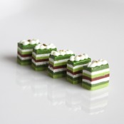 ・抹茶のオペラケーキは美しい層になるよう色づくりや層の幅、サイズ感など試行錯誤を重ね丁寧に仕上げました