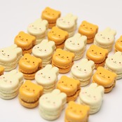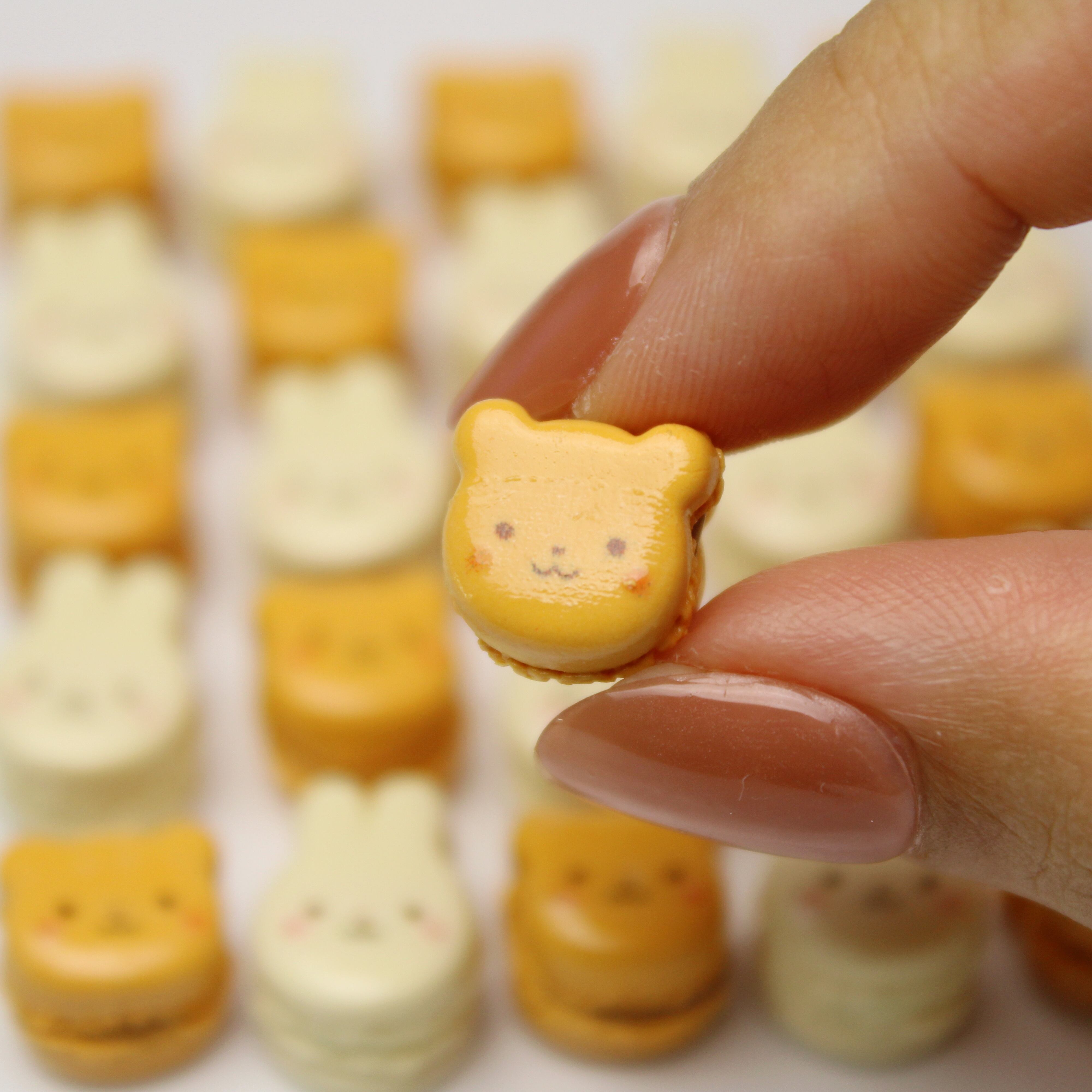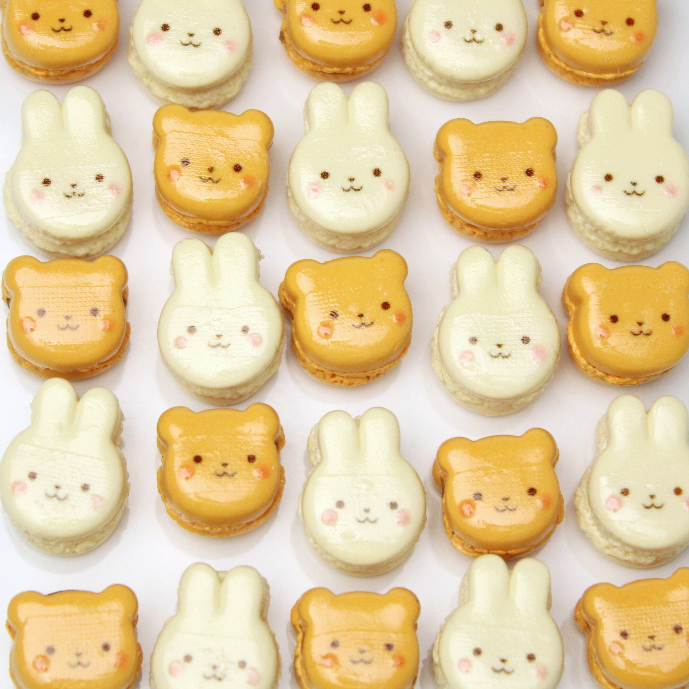 甘くてほろ苦いミルクキャラメルクリームを挟んだような、優しい色合いのくま型マカロンです。