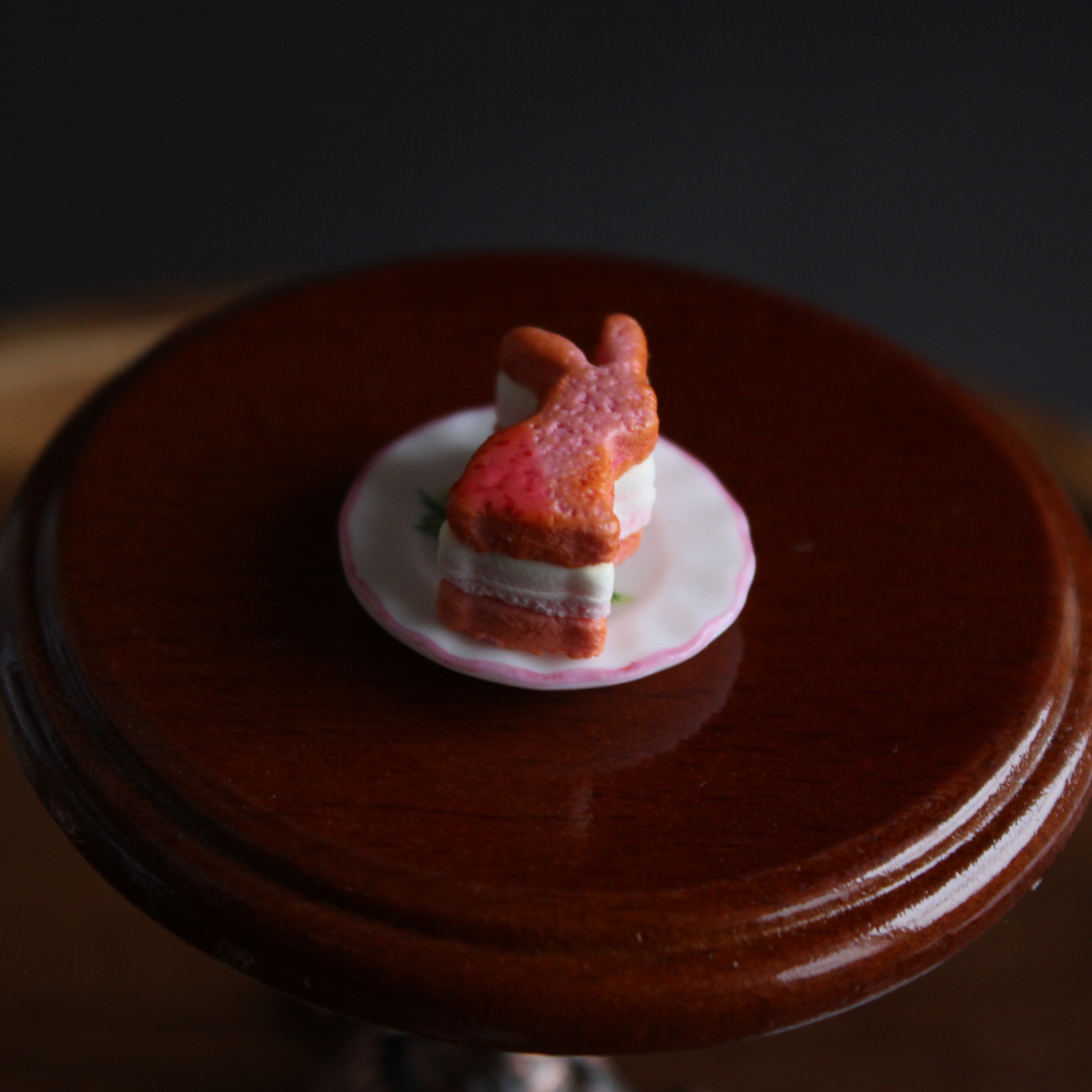この苺バターサンドは樹脂粘土や絵の具などを使用し、ミニチュアの小さなサイズで細部までこだわり仕上げました